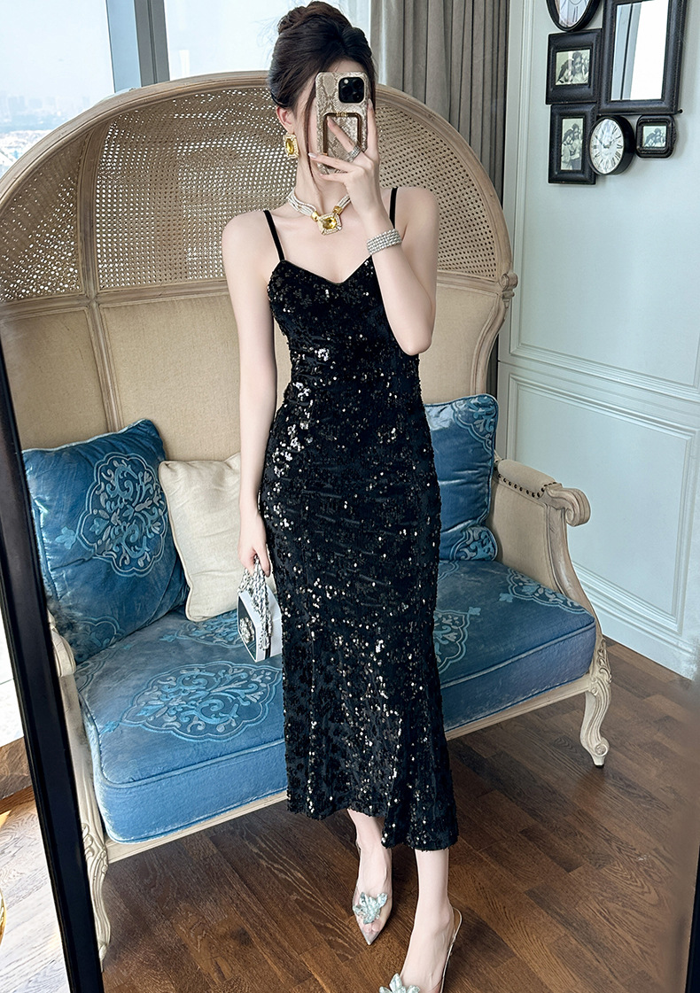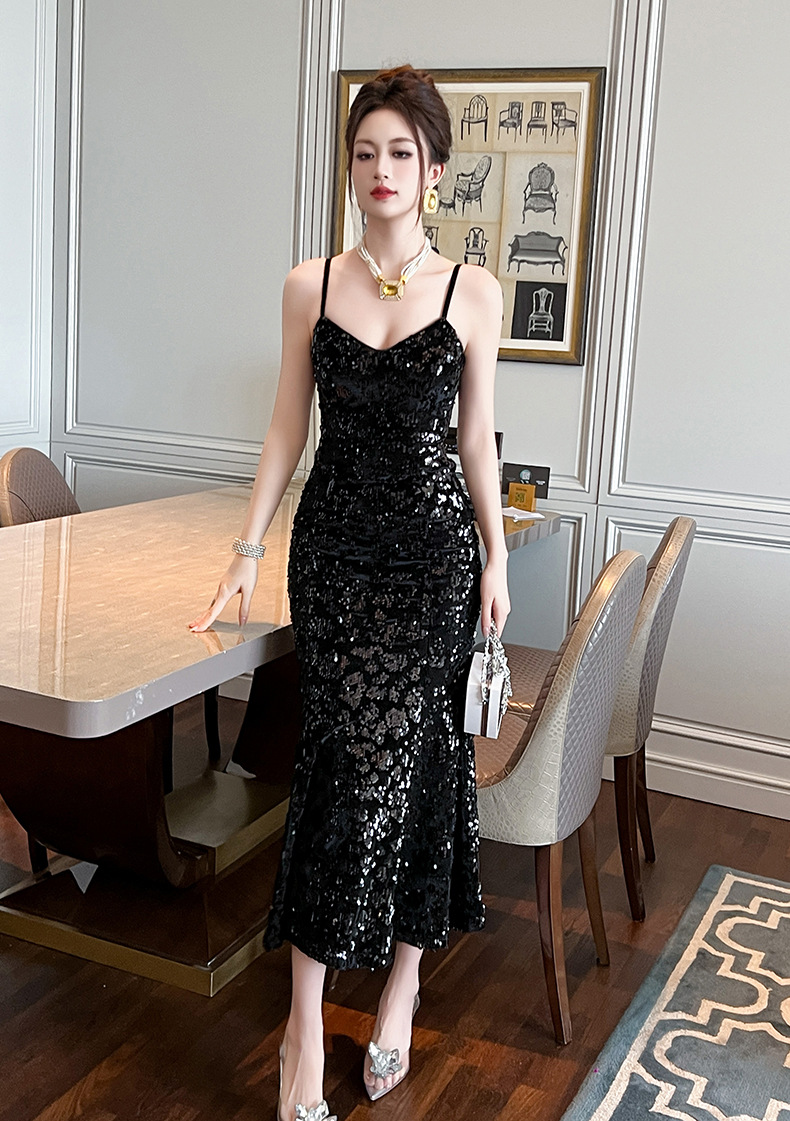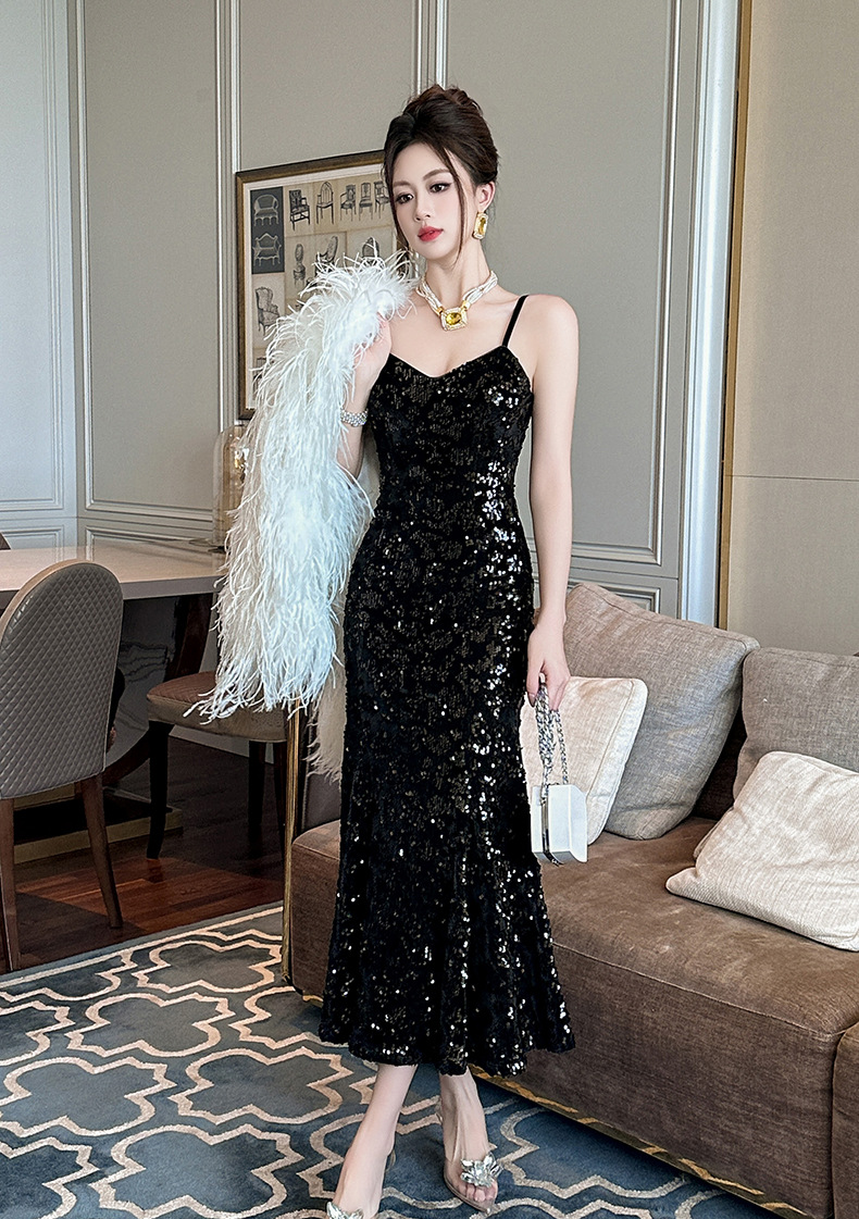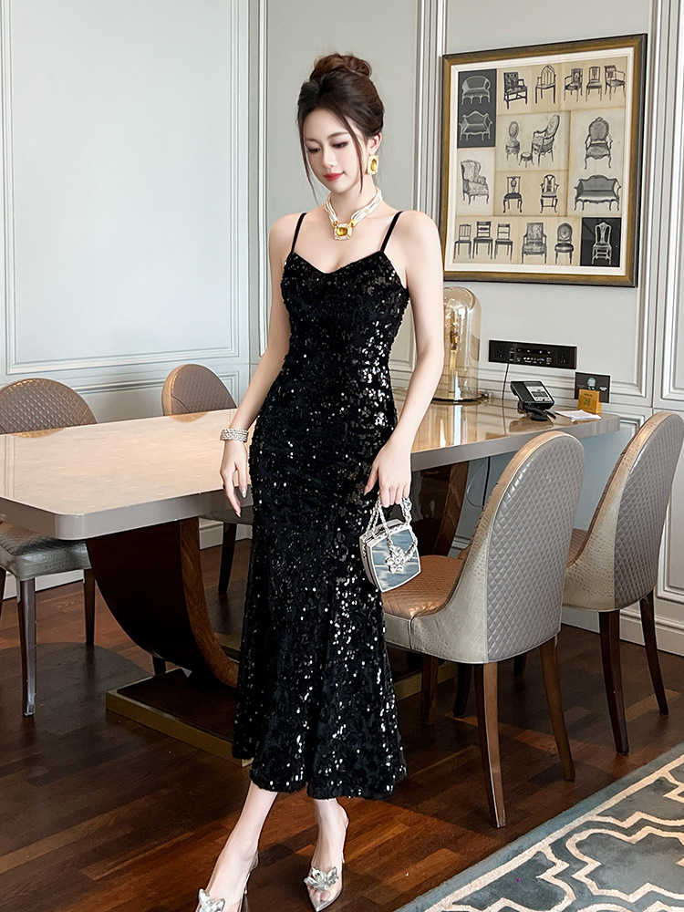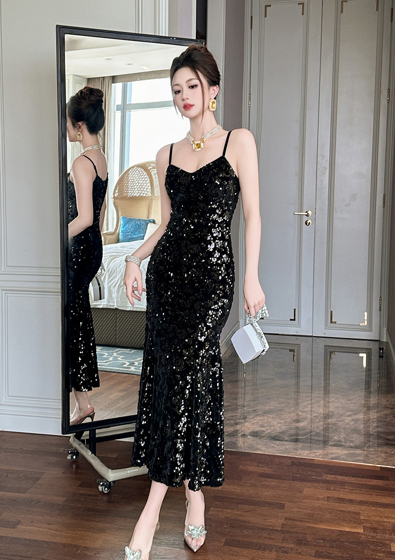 Chiếc váy dài dáng đuôi cá cho nàng thêm phần duyên dáng. Thiết kế hai dây mảnh m kết hợp phần v được khoét nhẹ tôn lên vẻ gợi cảm dịu dàng. Điểm nhấn là những chi tiết ánh kim lấp lánh tinh tế phủ khắp thân váy, tạo hiệu ứng bắt sáng tuyệt đẹp. Chất vải mềm mại, ôn nhẹ cơ thể, phù hợp cho những buổi tiệc tối hay sự kiện. Dễ dàng phối cùng giày cao gót và một chiếc túi nhỏ để hoàn thiện set đồ. | Tên sản phẩm: Áo Hai Dây Nữ Kiểu Đuôi Cá Hai Dây Hở Vai Hàng Mùa Xuân Thu Đông - Thời Trang Nữ | Mã sản phẩm: B3049 - Giá: 1.440.000đ | Mã nhà sản xuất: CHDG-G04Hình ảnh sản phẩm