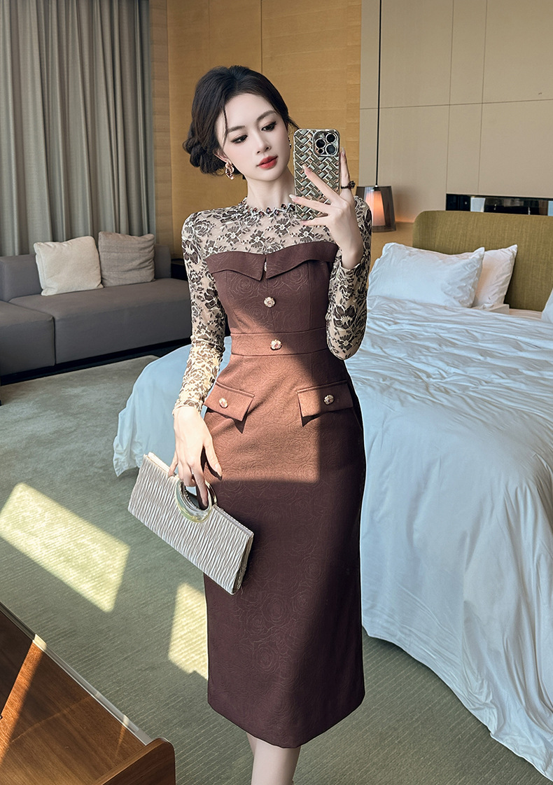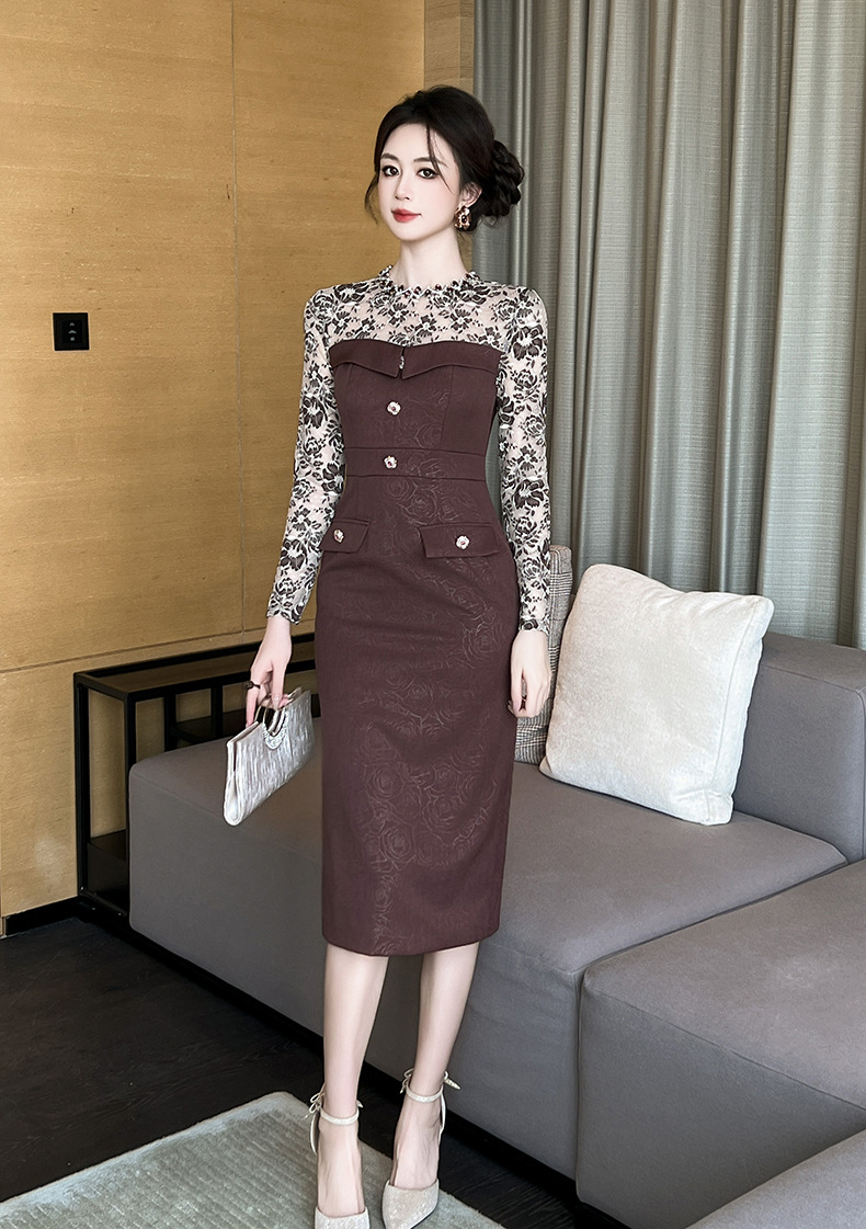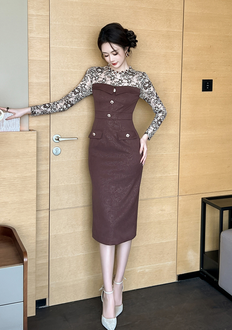 Chiếc váy dành cho mùa thu đông này có thiết kế dài tay và ôm sát qua gối, tôn dáng một cách nhẹ nhàng. Chất liệu kết hợp ren tinh tế tạo điểm nhấn duyên dáng. Kiểu dáng phù hợp cho những dịp đi làm hoặc gặp mặt thân mật. Mặc cùng giày cao gót hoặc boots để hoàn thiện bộ trang phục. Sản phẩm giúp bạn trông thanh lịch và tự tin hơn trong ngày. | Tên sản phẩm: Váy Đầm Liền Thân Nữ Chất Liệu Ren Dài Quá Gối Hàng Mùa Xuân Thu Đông - Thời Trang Nữ | Mã sản phẩm: B3065 - Giá: 1.440.000đ | Mã nhà sản xuất: CHDG-G04Hình ảnh sản phẩm