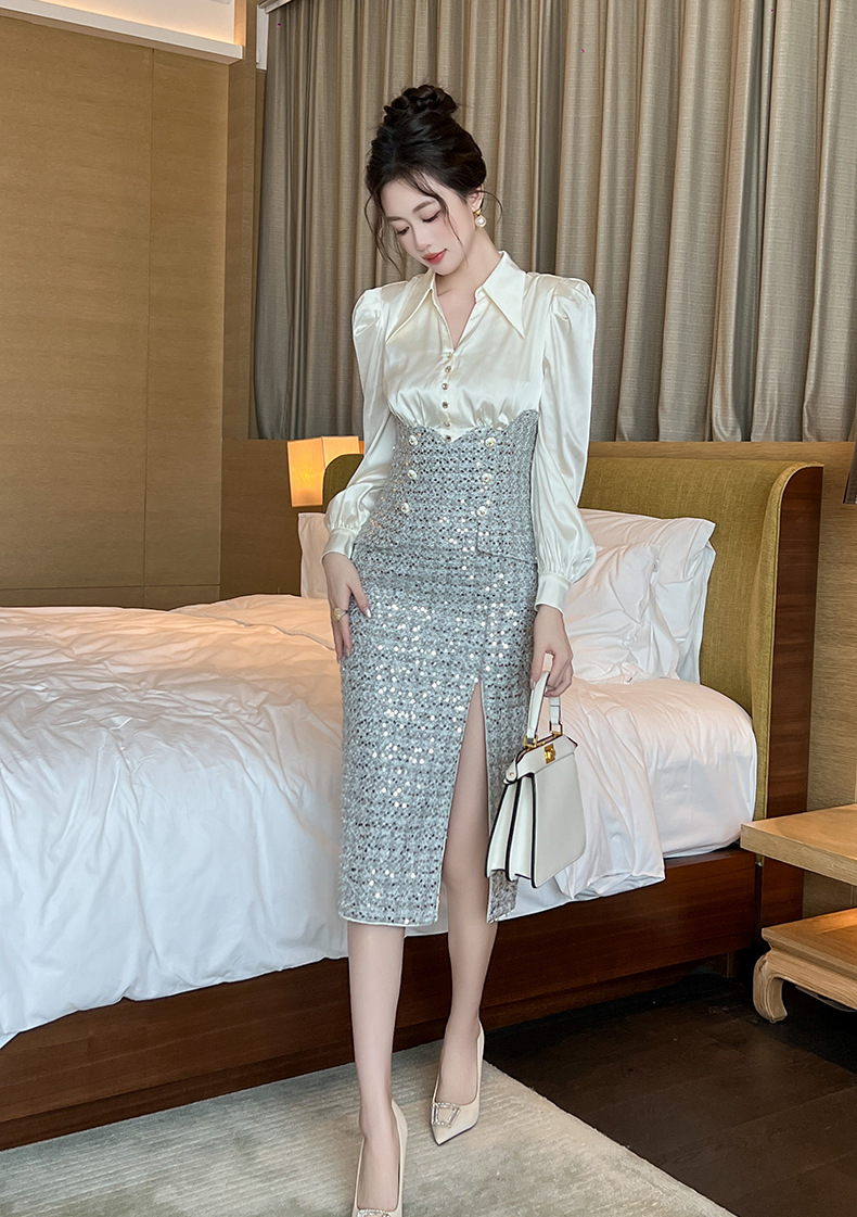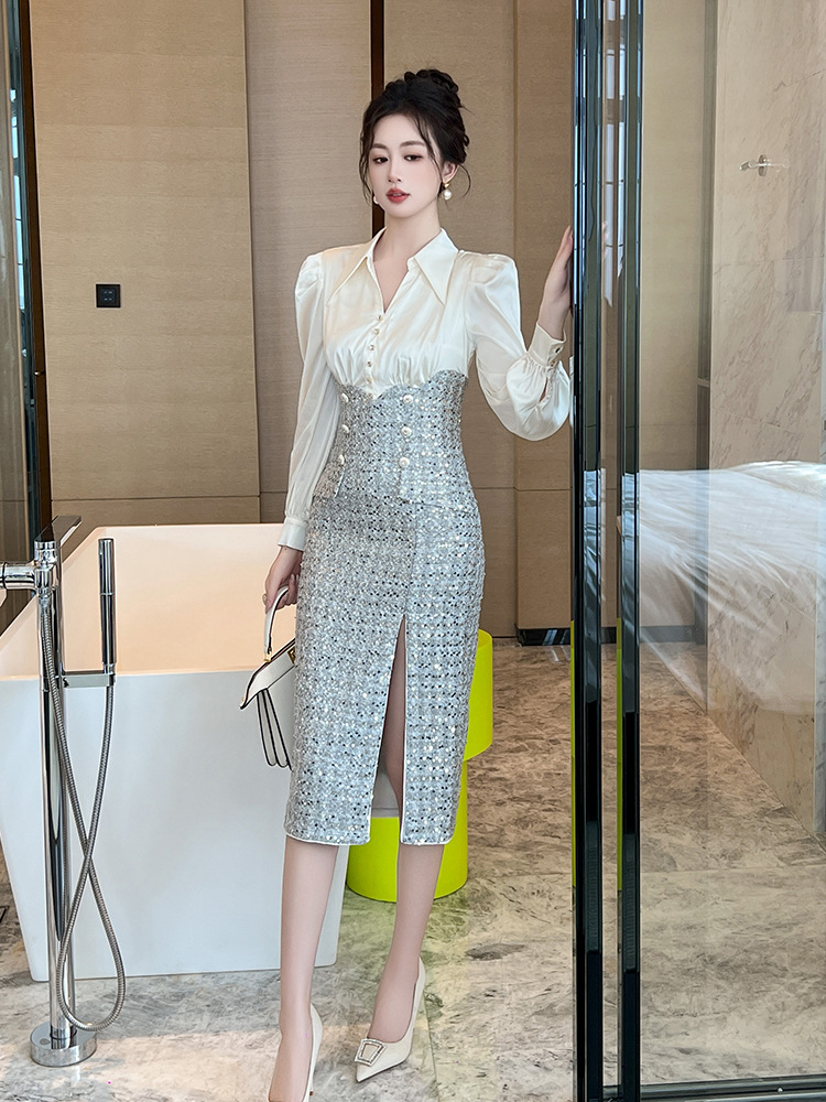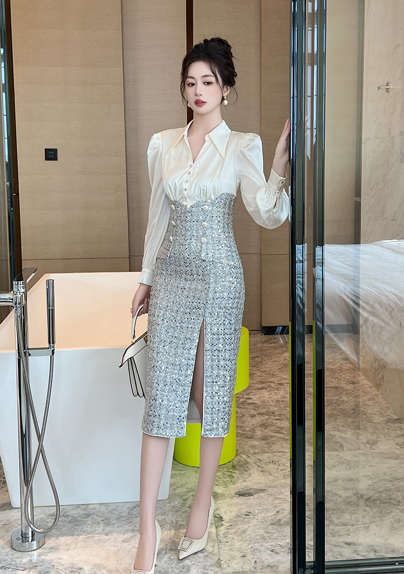 Giới thiệu mẫu váy liền thân mới nhất cho mùa thu đông 2024, mang phong cách thanh lịch và tinh tế. Váy được thiết kế với phần áo sơ mi phối kết hợp cùng chất liệu len nhung mềm mại, tạo cảm giác thoải mái khi mặc. Điểm nhấn đặc biệt là các chi tiết sequin lấp lánh, làm tôn lên vẻ nữ tính và cuốn hút. Với kiểu dáng ôm sát, sản phẩm giúp tôn vinh những đường cong quyến rũ của cơ thể. Dễ dàng phối cùng giày cao gót hoặc boots cho phong cách hoàn hảo trong những buổi tiệc hay dạo phố. Hãy thử ngay để trải nghiệm sự thoải mái và thời trang! | Tên sản phẩm: Áo Sơ Mi Nữ Hàng Mùa Xuân Thu Đông - Thời Trang Nữ | Mã sản phẩm: B3073 - Giá: 1.520.000đ | Mã nhà sản xuất: CHDG-G04Hình ảnh sản phẩm