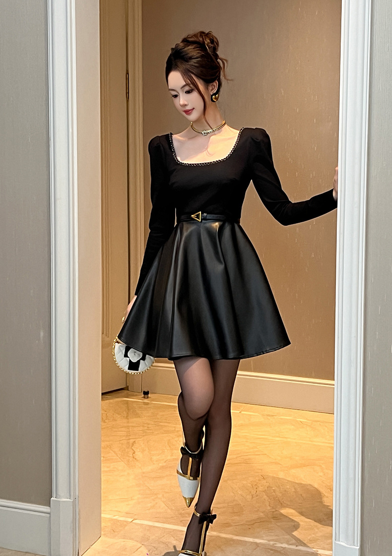 Chiếc đầm dành cho những ngày thu đông, được kết hợp từ chất liệu da tổng hợp mềm mại và vải dệt kim. Thiết kế có phần cổ vuông thanh lịch, eo được bo nhẹ tôn dáng và phần chân váy xòe nhẹ nhàng. Sản phẩm phù hợp để mặc trong các buổi gặp mặt hoặc sự kiện nhẹ nhàng. Có thể kết hợp cùng giày cao gót và một chiếc túa nhỏ để hoàn thiện vẻ ngoại hình. | Tên sản phẩm: Váy Đầm Liền Thân Nữ Hàng Mùa Xuân Thu Đông - Thời Trang Nữ | Mã sản phẩm: B3102 - Giá: 1.380.000đ | Mã nhà sản xuất: CHDG-G04Hình ảnh sản phẩm