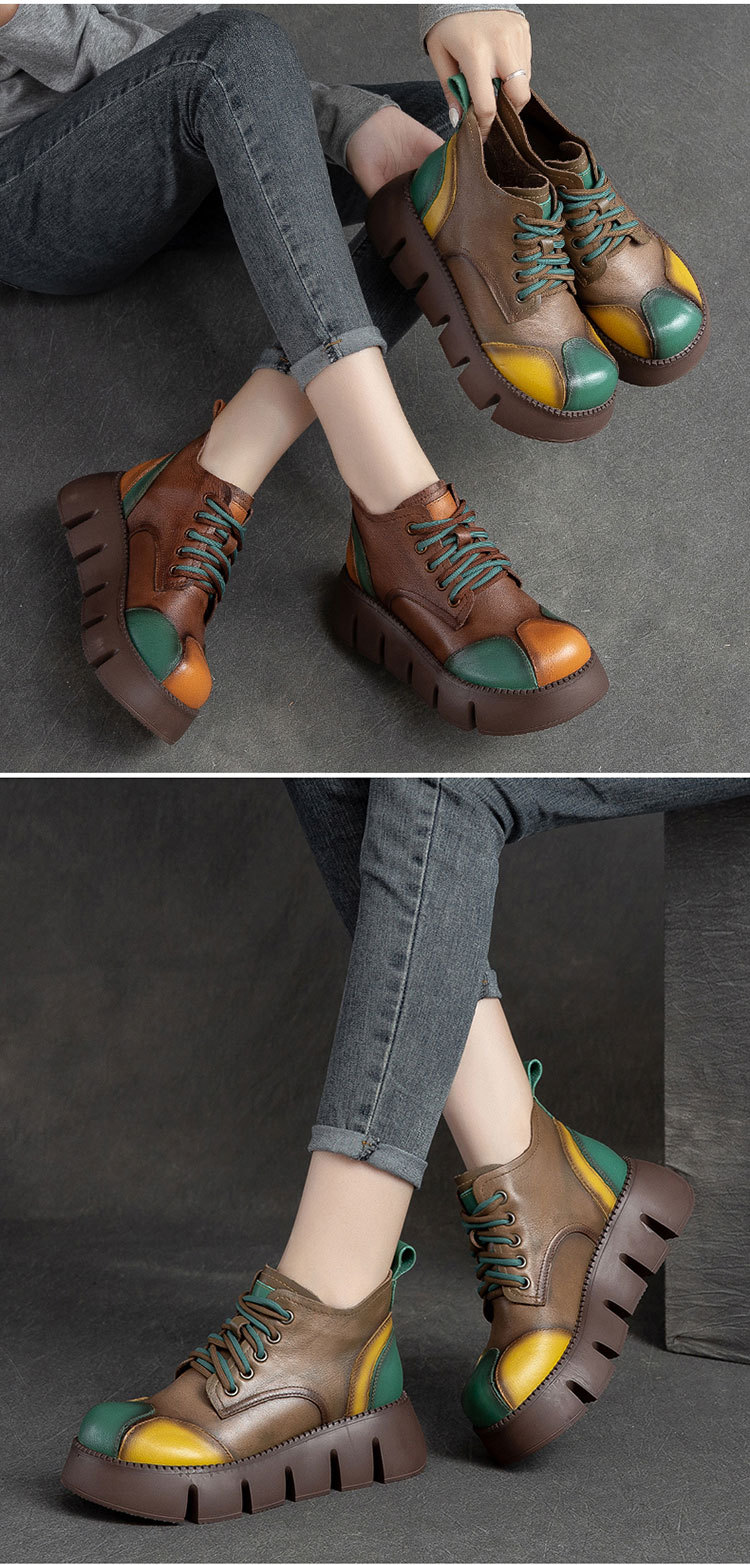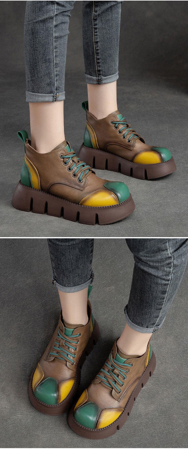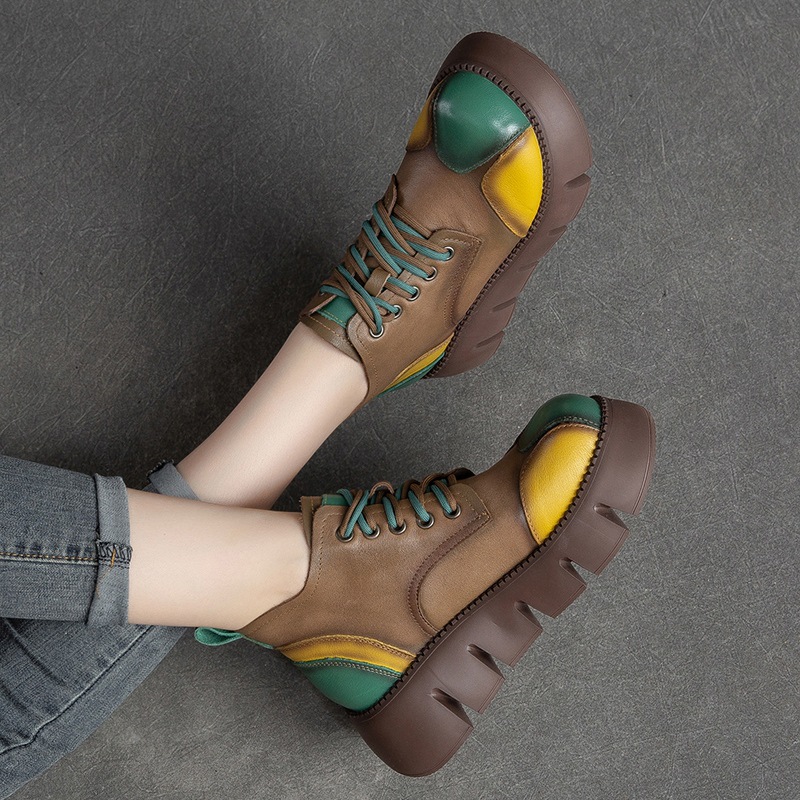 Giày bốt nữ thiết kế phong cách hoài cổ với phần đế hầm dày dặn. Sản phẩm được làm từ chất da bò mềm mại tự nhiên, tạo cảm giác thoải mái khi mang. Điểm nhấn là sự phối màu độc đáo và hiệu ứng màu được lau chà tinh tế, mang đến vẻ đẹp cá tính. Kiểu dáng dễ dàng phối hợp với nhiều trang phục khác nhau như quần jeans hay váy, thích hợp cho tiết trời mùa thu. Bạn có thể sử dụng hàng ngày để đi làm, đi chơi hay dự các cuộc gặp mặt. | Tên sản phẩm: Giày Boot Cổ Thấp Nữ Chất Liệu Da Bò Hàng Mùa Xuân Thu Đông Phục Cổ Cổ Điển - Giày Dép Nữ | Mã sản phẩm: B3112 - Giá: 2.290.000đ | Mã nhà sản xuất: SHNTEZ-G05Hình ảnh sản phẩm