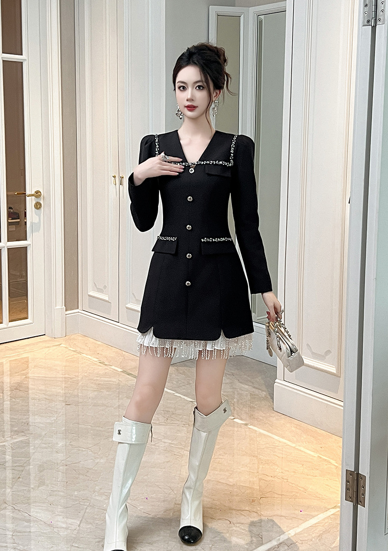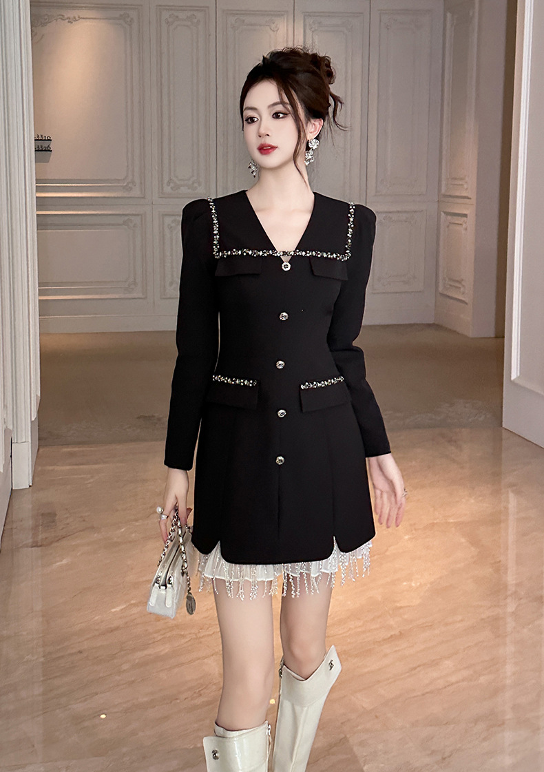 Chiếc đầm dành cho nữ này có thiết kế cổ vuông thanh lịch, điểm nhấn là những chi tiết đá lấp lánh tinh tế xung quanh. Form đầm ôm dáng giúp tôn lên những đường nét cơ thể. Phần viền của đầm được cách điệu với những sợi tua rua duyên dáng, tạo nên sự chuyển động nhẹ nhàng. Sản phẩm phù hợp để mặc trong nhiều dịp khác nhau. Có thể giặt bằng tay và phơi ở nơi thoáng mát để giữ dáng đầm bền đẹp. | Tên sản phẩm: Váy Đầm Liền Thân Nữ Dáng Ôm Hàng Mùa Xuân Thu Đông - Thời Trang Nữ | Mã sản phẩm: B3120 - Giá: 1.810.000đ | Mã nhà sản xuất: CHDG-G05Hình ảnh sản phẩm