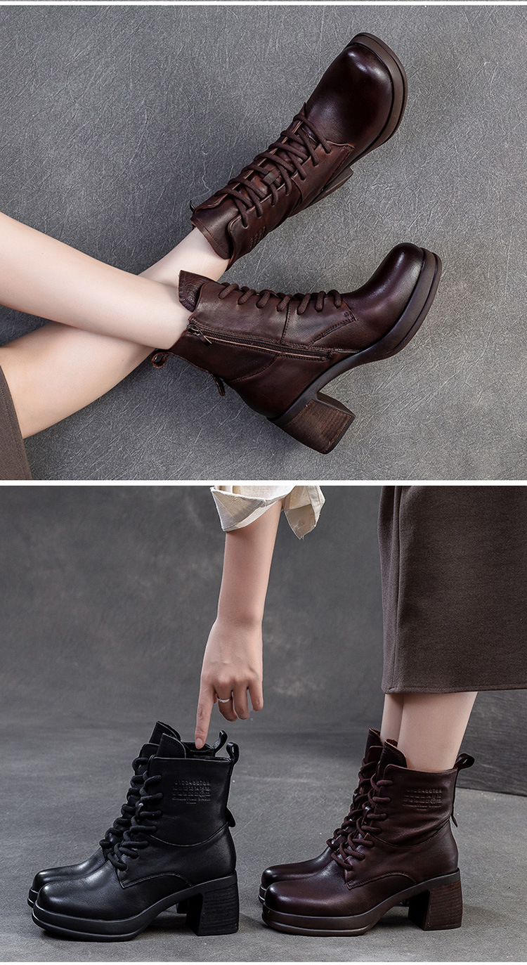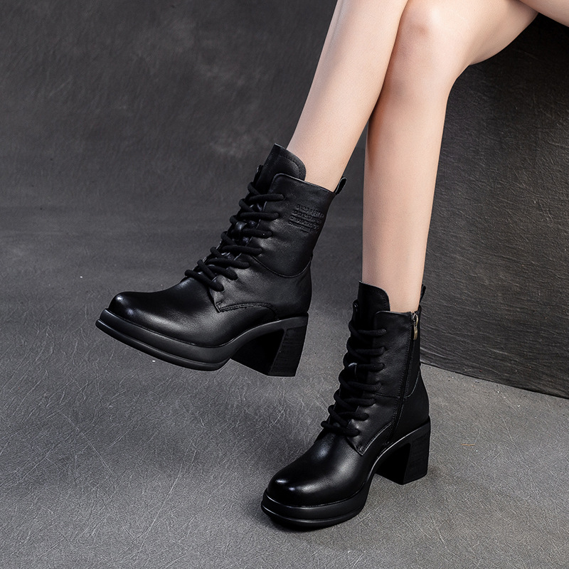 Đôi bốt cổ trung này có kiểu dáng cổ điển, mang phong cách mạnh mẽ nhưng vẫn rất nữ tính. Phần gót được thiết kế vừa phải giúp tôn dáng mà vẫn đảm bảo sự thoải mái khi di chuyển. Bề mặt da có hiệu ứng màu loang độc đáo, tạo điểm nhấn ấn tượng. Sản phẩm dễ dàng phối hợp với nhiều trang phục như quần jeans, váy hay quần tây. Bạn có thể sử dụng chúng để tạo điểm nhấn cho các buổi gặp mặt thường ngày. | Tên sản phẩm: Giày Cao Gót Nữ Hàng Mùa Xuân Thu Đông Phục Cổ Cổ Điển - Giày Dép Nữ | Mã sản phẩm: B3125 - Giá: 2.660.000đ | Mã nhà sản xuất: SHNTEZ-G06Hình ảnh sản phẩm
