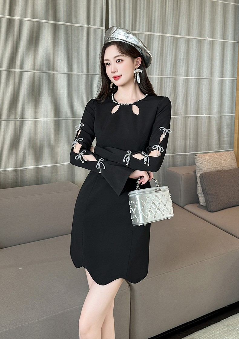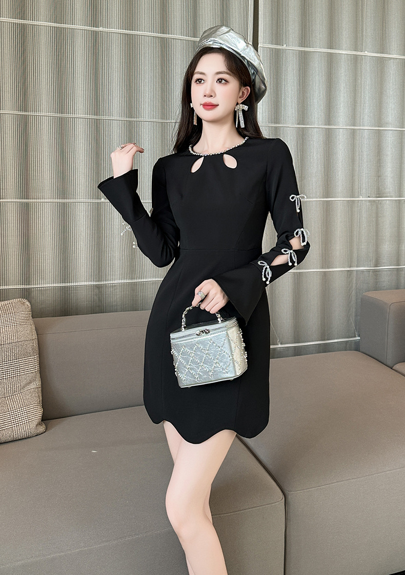Đầm ngắn tay dài kiểu dáng chữ A, có màu đen dễ mặc. Sản phẩm năm 2024 này được chú trọng đường may tinh tế, kết hợp nhiều chi tiết hạt lấp lánh cẩn thận tạo điểm nhấn. Thiết kế ôm vừa phải ở eo rồi xòe nhẹ ở phần váy, mang đến vẻ ngoại hình thanh lịch. Có thể mặc đi làm, dự tiệc hoặc các dịp gặp mặt. Phù hợp với nhiều hoàn cảnh sử dụng khác nhau. | Tên sản phẩm: Váy Đầm Liền Thân Nữ - Thời Trang Nữ | Mã sản phẩm: B3148 - Giá: 1.390.000đ | Mã nhà sản xuất: CHDG-G04Hình ảnh sản phẩm