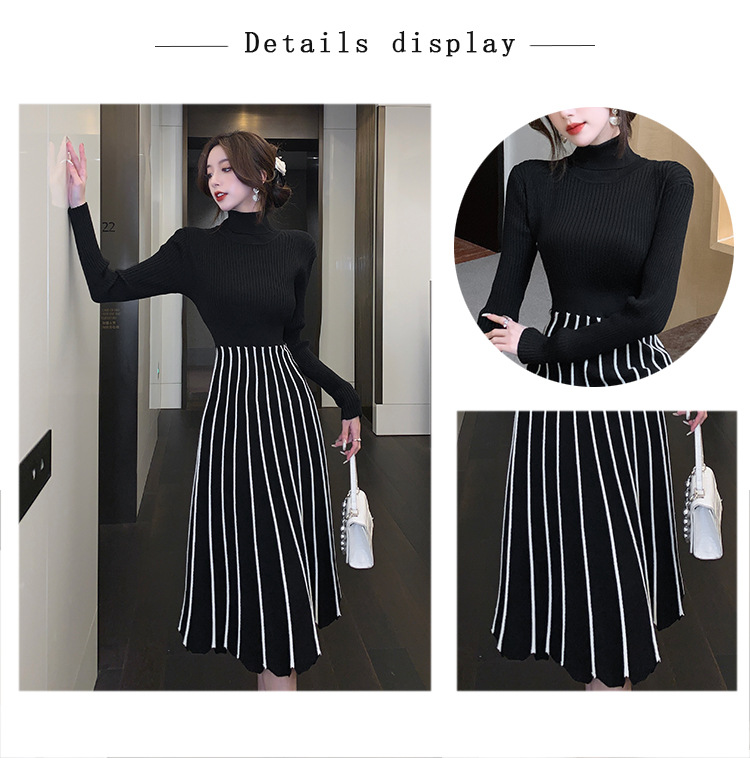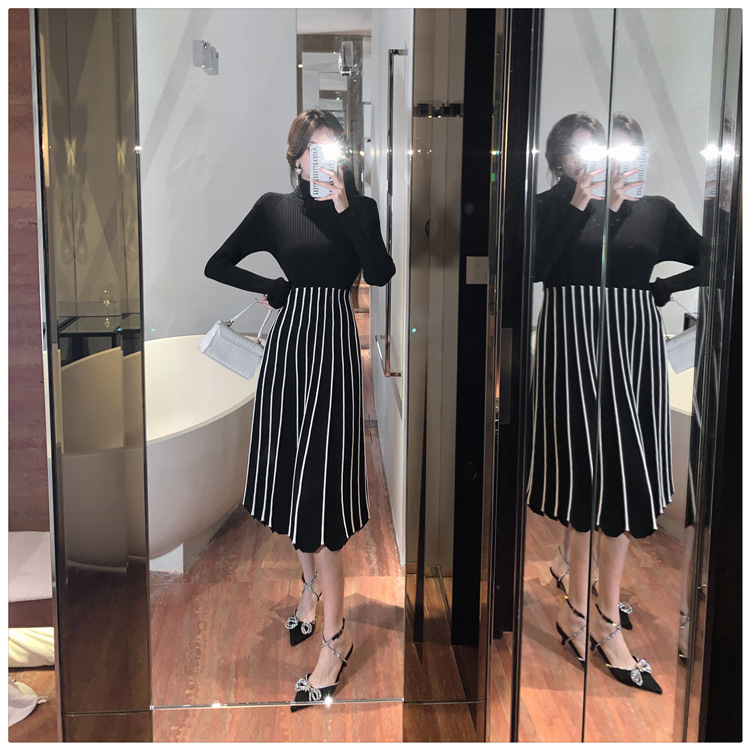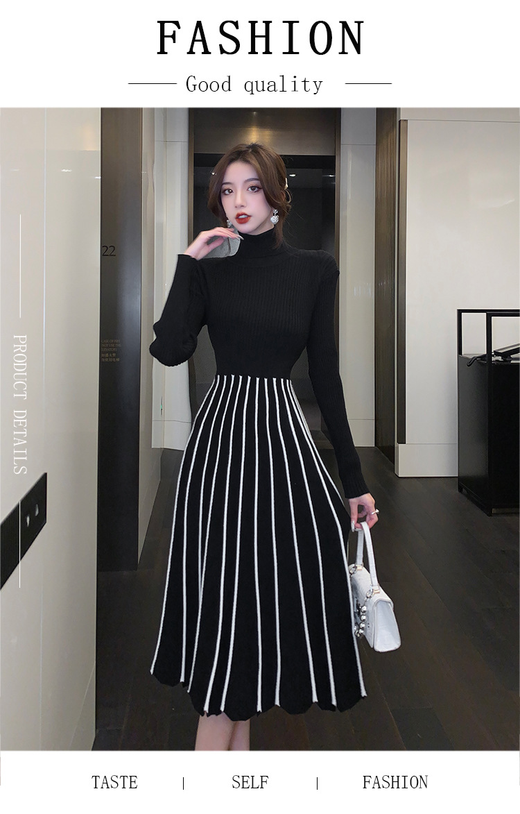 Chiếc đầm len dệt kim dành cho mùa thu đông, có phần cổ cao kết hợp họa tiết sọc tinh tế. Kiểu dáng dài qua gối giúp tôn dáng một cách nhẹ nhàng. Thiết kế này dễ dàng phối cùng áo khoác ngoài để giữ ấm tốt hơn. Bạn có thể mặc trực tiếp hoặc kết hợp với quần legging, phù hợp cho nhiều dịp đi làm, gặp gỡ hay dạo phố. | Tên sản phẩm: Áo Len Nữ Áo Len Dài Quá Gối Hàng Mùa Xuân Thu Đông - Thời Trang Nữ | Mã sản phẩm: B3166 - Giá: 900.000đ | Mã nhà sản xuất: ZHOUT-G03Hình ảnh sản phẩm