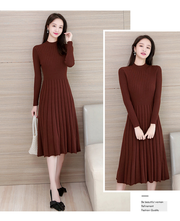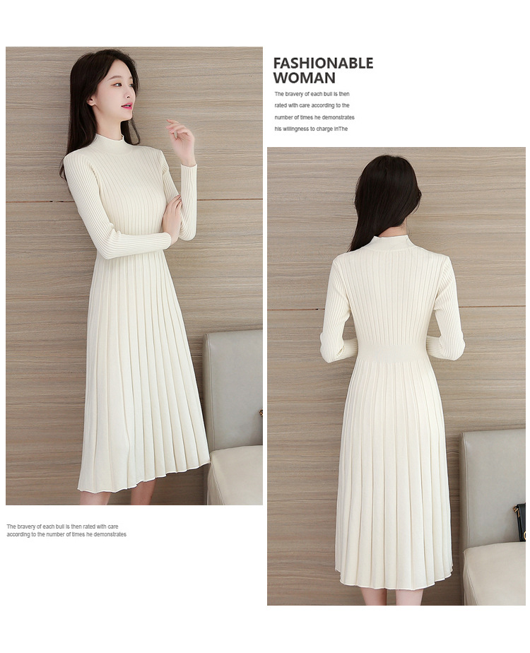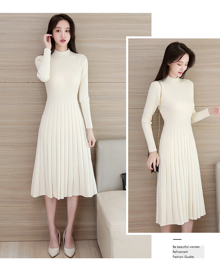Chiếc đầm dệt kim này có phần cổ cao vừa phải, mang phong cách thanh lịch nhẹ nhàng. Chất vải dệt co giãn nhẹ tạo cảm giác dễ chịu khi mặc. Thiết kế ôm nhẹ phần eo, xòe nhẹ từ hông xuống dáng xếp lớp dài qua gối. Có thể dùng làm đầm mặc một mình hoặc kết hợp cùng áo khoác ngoài. Phù hợp cho những ngày thu đông, dễ dàng phối cùng giày boots và túi xách. | Tên sản phẩm: Áo Len Nữ Áo Len Dài Quá Gối Hàng Mùa Xuân Thu Đông - Thời Trang Nữ | Mã sản phẩm: B3198 - Giá: 750.000đ | Mã nhà sản xuất: ZHOUT-G02Hình ảnh sản phẩm