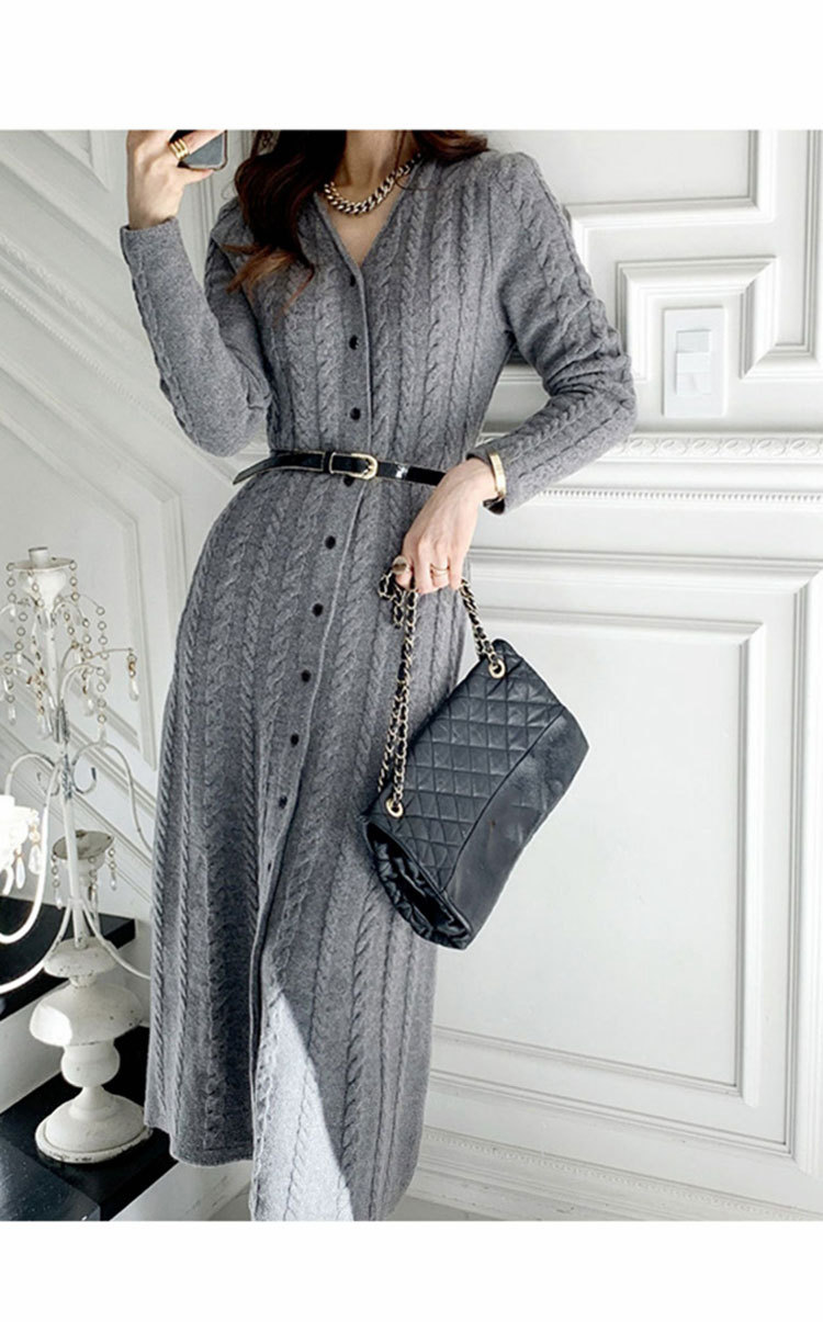 Chiếc đầm dệt kim này mang phong cách cổ điển lấy cảm hứng từ thời trang châu Âu xưa. Kiểu dáng ôm nhẹ cơ thể, kết hợp cùng phần cổ khoét sâu tạo nên vẻ thanh lịch. Chất liệu dệt kim mềm mại giữ ấm tốt, phù hợp mặc trong tiết trời thu đông. Bạn có thể dùng làm đầm mặc một mình, hoặc kết hợp cùng áo khoác và phụ kiện. Thiết kế dáng suông dài cùng đường cắt giản đơn giúp dễ dàng phối đồ cho nhiều dịp khác nhau. | Tên sản phẩm: Áo Len Nữ Áo Len Dáng Ôm Hàng Mùa Xuân Thu Đông Phục Cổ Cổ Điển - Thời Trang Nữ | Mã sản phẩm: B3215 - Giá: 1.090.000đ | Mã nhà sản xuất: ZHOUT-G03Hình ảnh sản phẩm