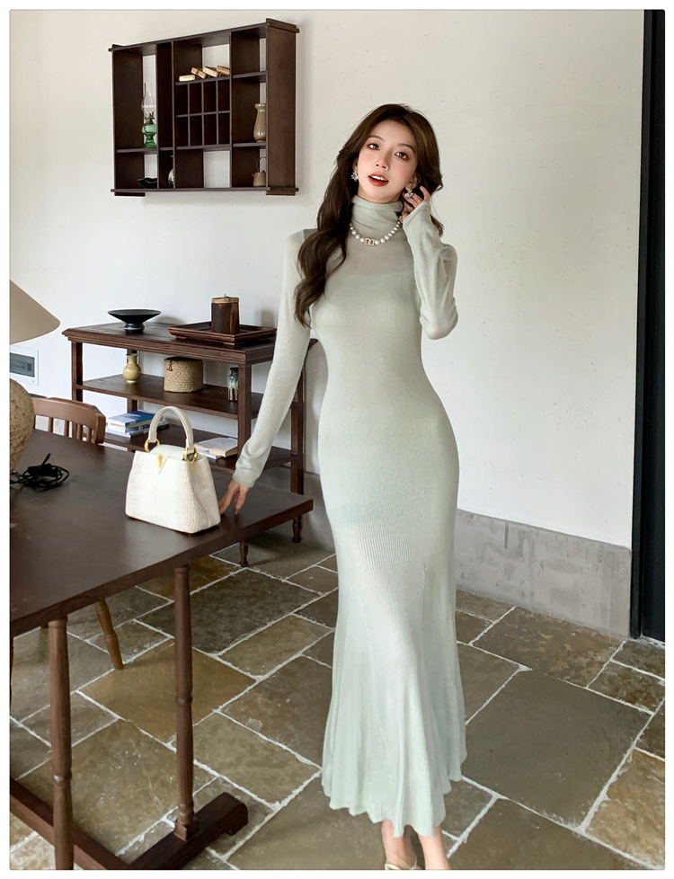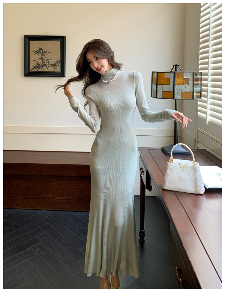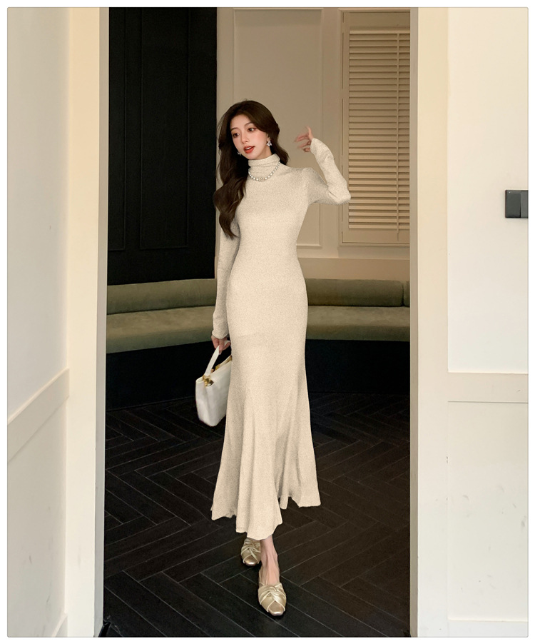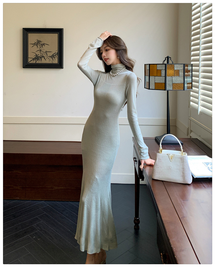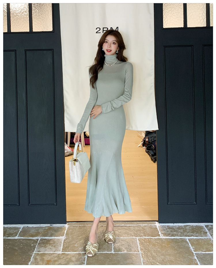 Chiếc đầm dệt kim này mang nét đẹp thanh lịch, phù hợp cho những ngày thu đông. Cổ cao và thiết kế ôm vừa vặn tôn lên đường nét cơ thể. Điểm nhấn là phần viền xòe mềm mại ở tà áo, tạo nên sự uyển chuyển khi di chuyển. Chất liệu dệt kim co giãn nhẹ mang lại cảm giác thoải mái. Có thể mặc làm đầm bên ngoài hoặc kết hợp cùng áo khoác tùy thích. | Tên sản phẩm: Váy Đầm Liền Thân Nữ Áo Len Dáng Ôm Hàng Mùa Xuân Thu Đông - Thời Trang Nữ | Mã sản phẩm: B3227 - Giá: 790.000đ | Mã nhà sản xuất: ZHOUT-G02Hình ảnh sản phẩm