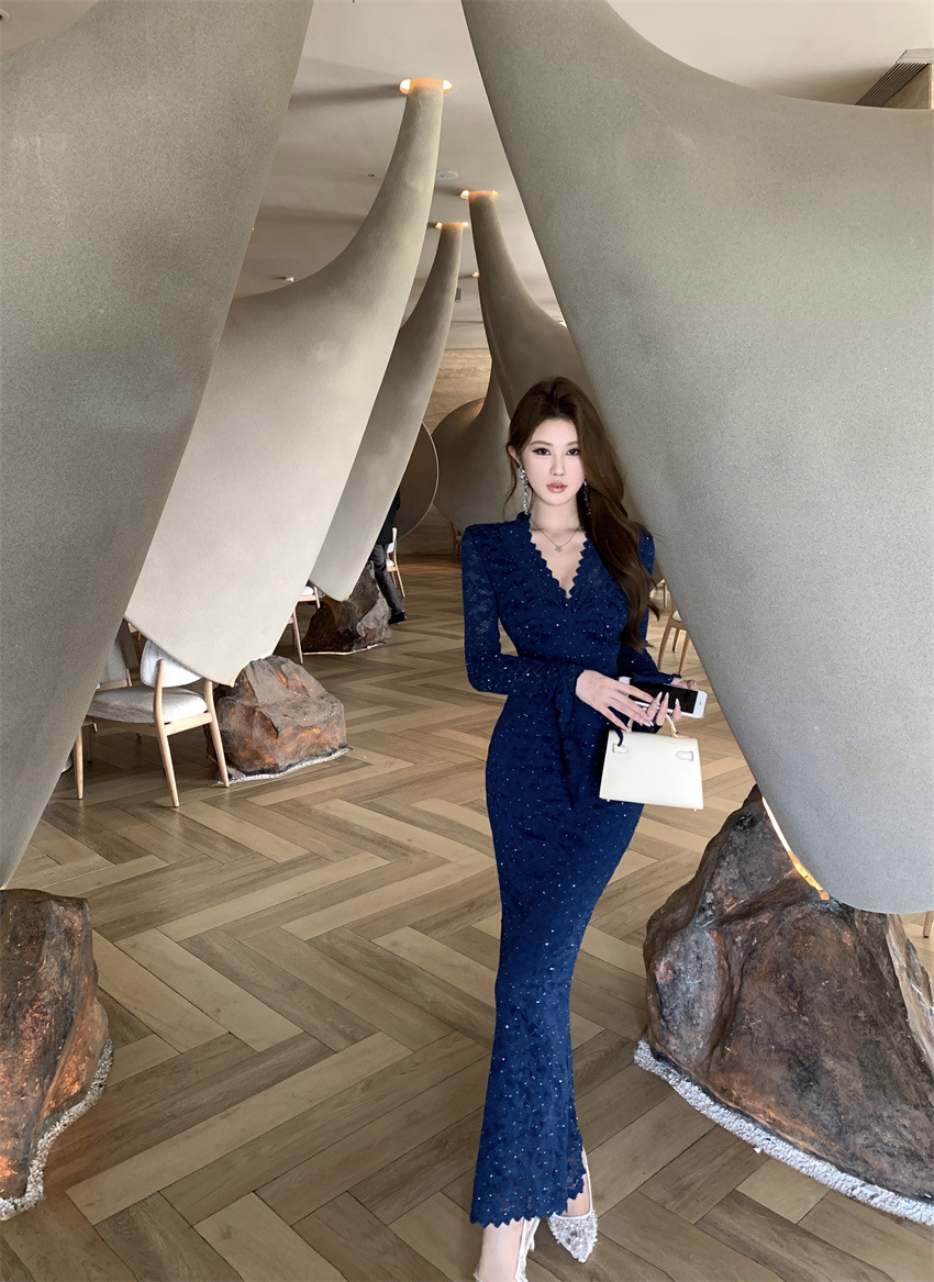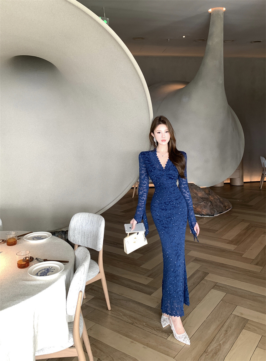 Chiếc đầm ôm sát dáng dài, điểm nhấn là đường ren tinh xảo và những viên đá lấp lánh được ghép tỉ mỉ. Thiết kế kết hợp tà lá mềm mại ở gấu áo, tôn lên đường nét cơ thể một cách thanh lịch. Chất vải co giãn nhẹ mang lại sự thoải mái khi mặc. Sản phẩm phù hợp cho những buổi gặp mặt, dạo phố hoặc sự kiện vào mùa thu đông. Có thể giặt bằng tay và phơi trong bóng râm để giữ form vải và độ bền đẹp. | Tên sản phẩm: Váy Đầm Liền Thân Nữ Chất Liệu Ren Dáng Ôm Hàng Mùa Xuân Thu Đông - Thời Trang Nữ | Mã sản phẩm: B3236 - Giá: 890.000đ | Mã nhà sản xuất: ZHOUT-G03Hình ảnh sản phẩm