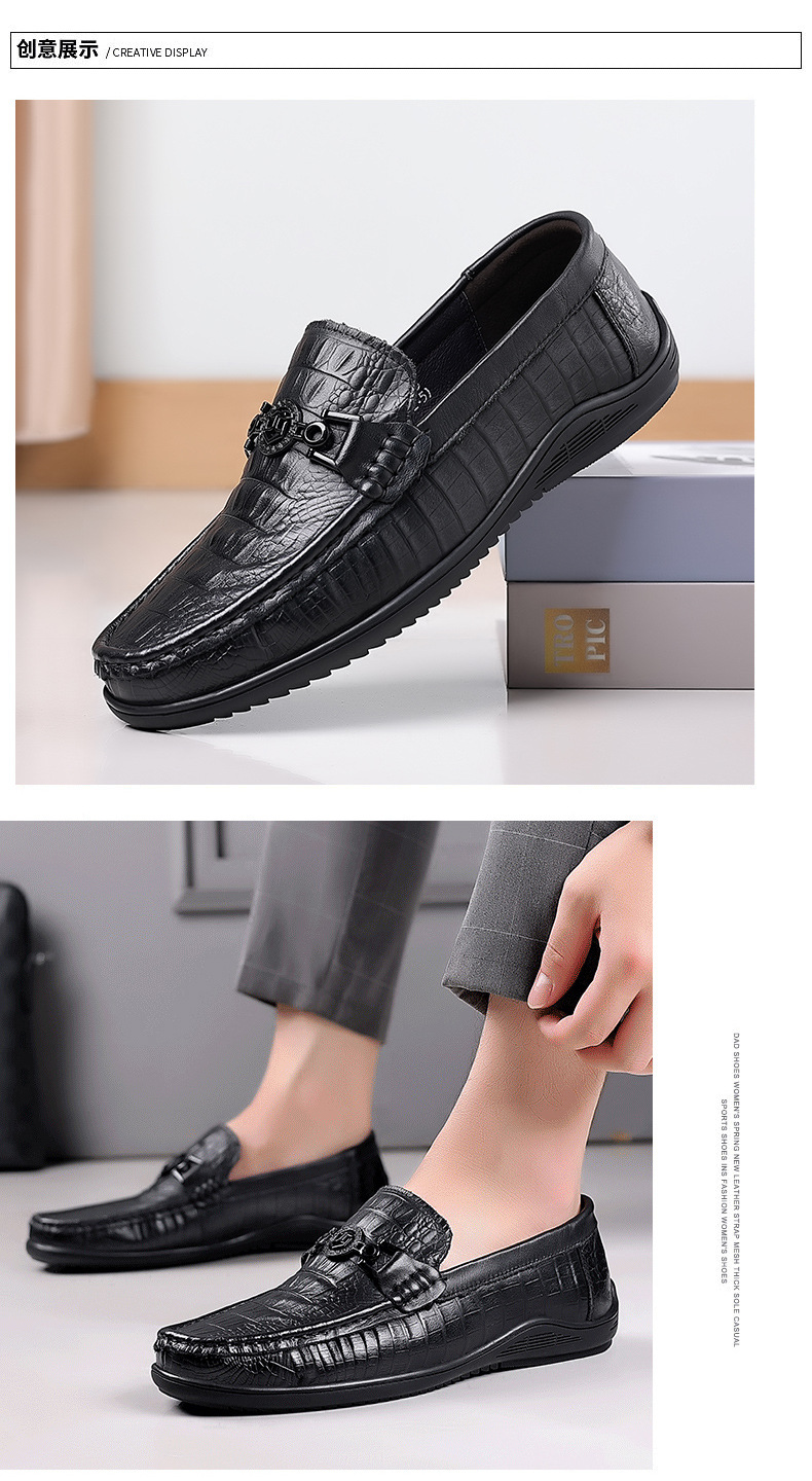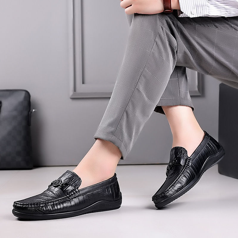 Giày nam thiết kế dáng ôm chân vừa vặn, dễ dàng mang vào nhờ kiểu xỏ ngón. Sản phẩm được làm từ chất liệu da bò mềm mại, bề mặt có họa tiết vân cá sấu tinh tế. Đế giày bằng cao su dẻo d, giúp bước đi thoải mái và êm ái cả ngày dài. Đây là mẫu giày phù hợp cho các dịp đi chơi, giao lưu bạn bè hay dạo phố. Có đủ size lớn cho nam giới. | Tên sản phẩm: Giày Da Nam Chất Liệu Da Bò Big Size Ngoại Cỡ Vân Da Cá Sấu Hàng Mùa Xuân Thu Đông - Giày Dép Nam | Mã sản phẩm: B3244 - Giá: 940.000đ | Mã nhà sản xuất: WEDS-G03Hình ảnh sản phẩm