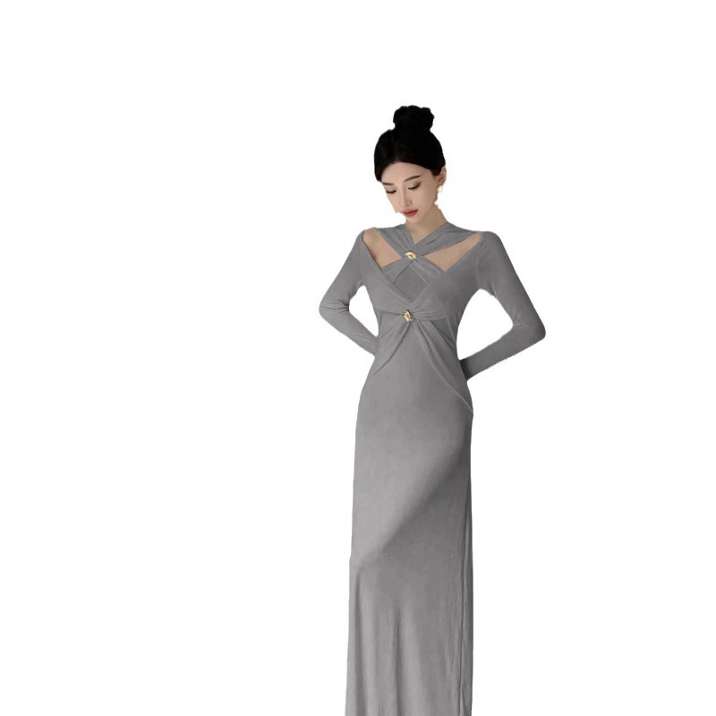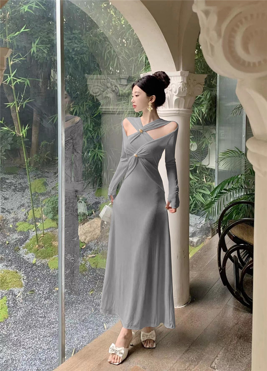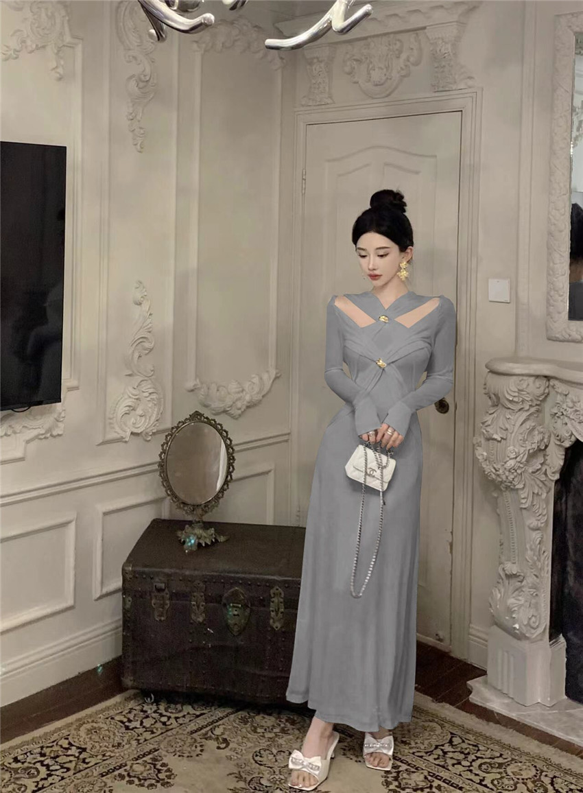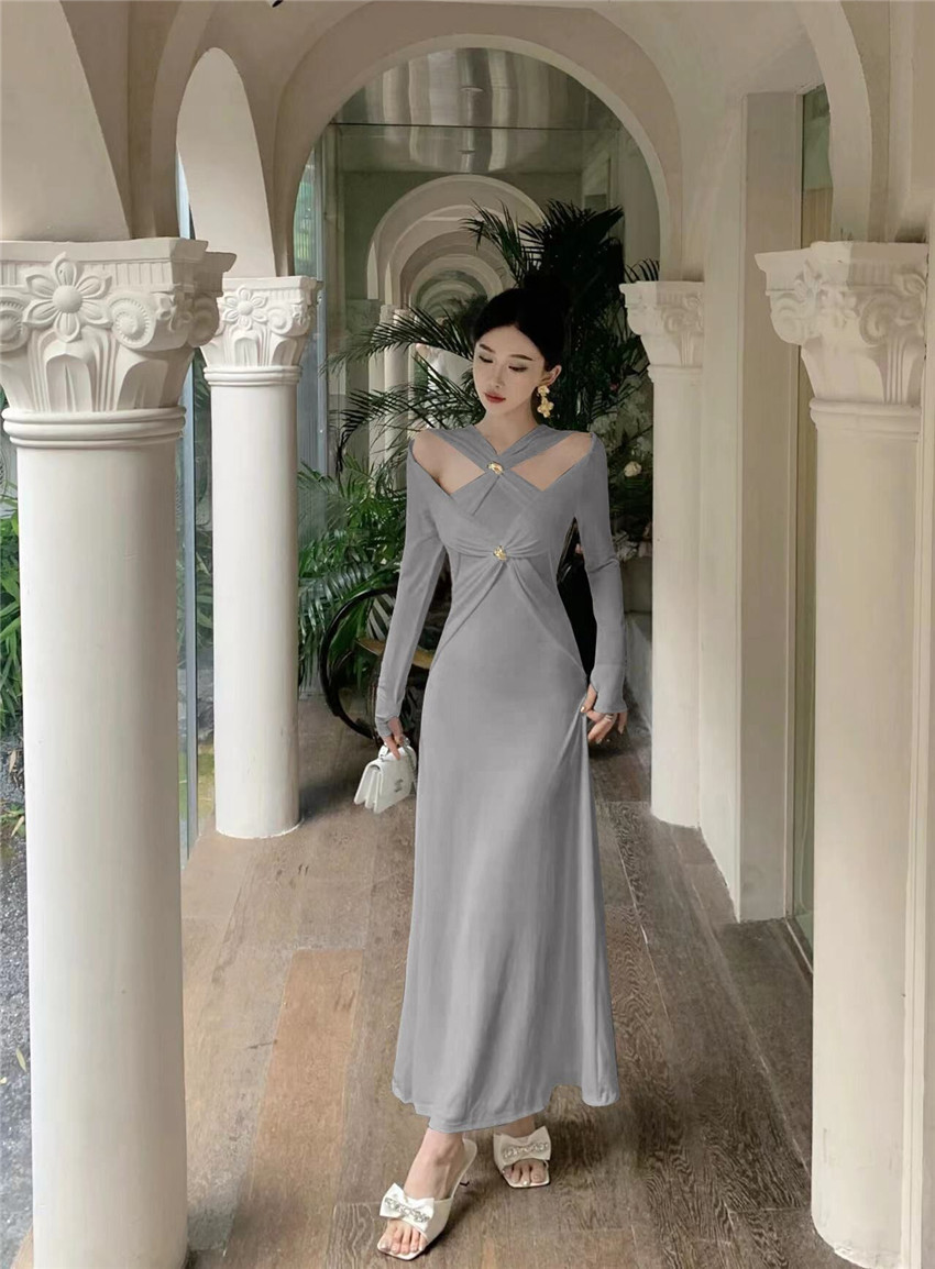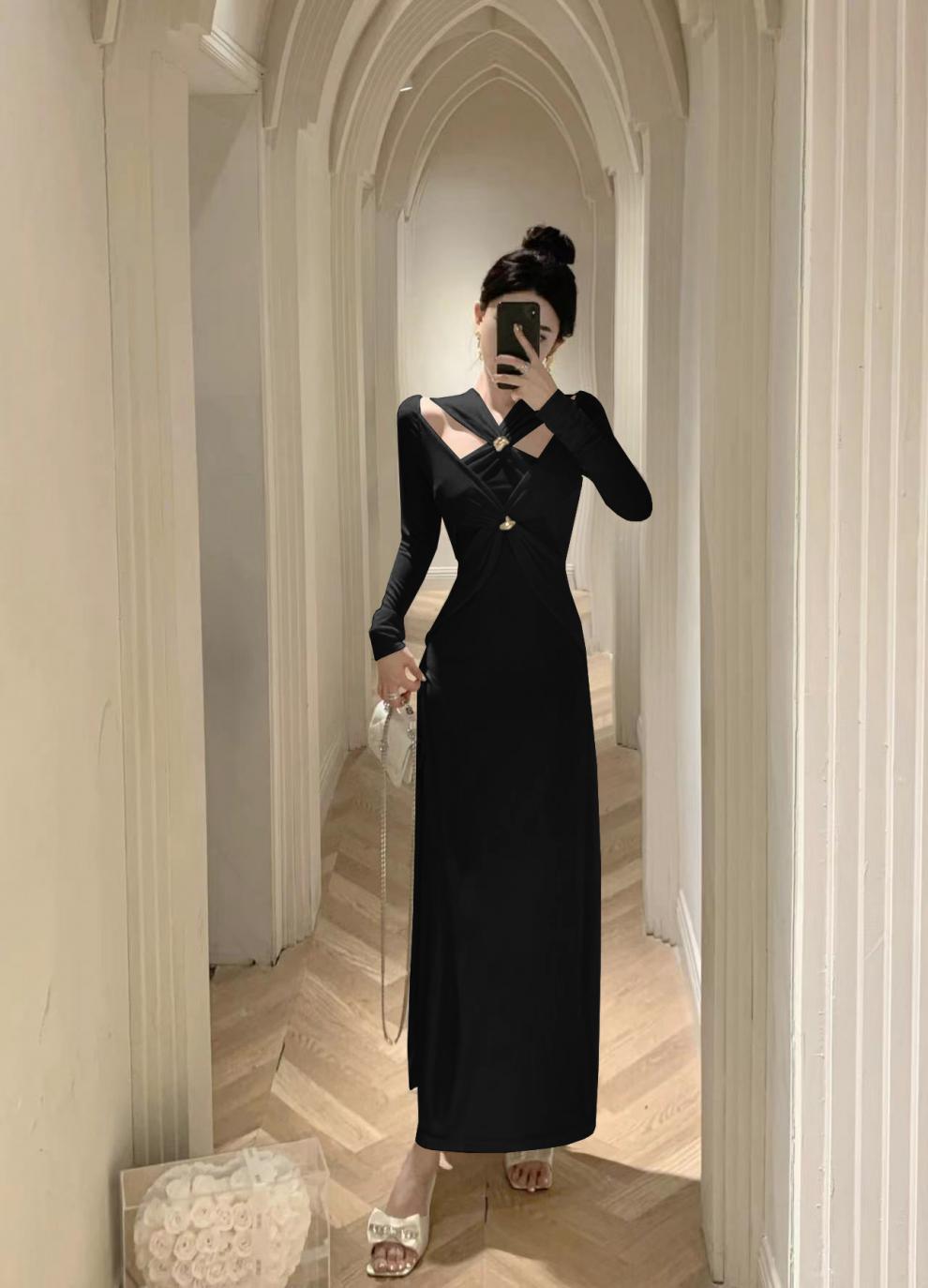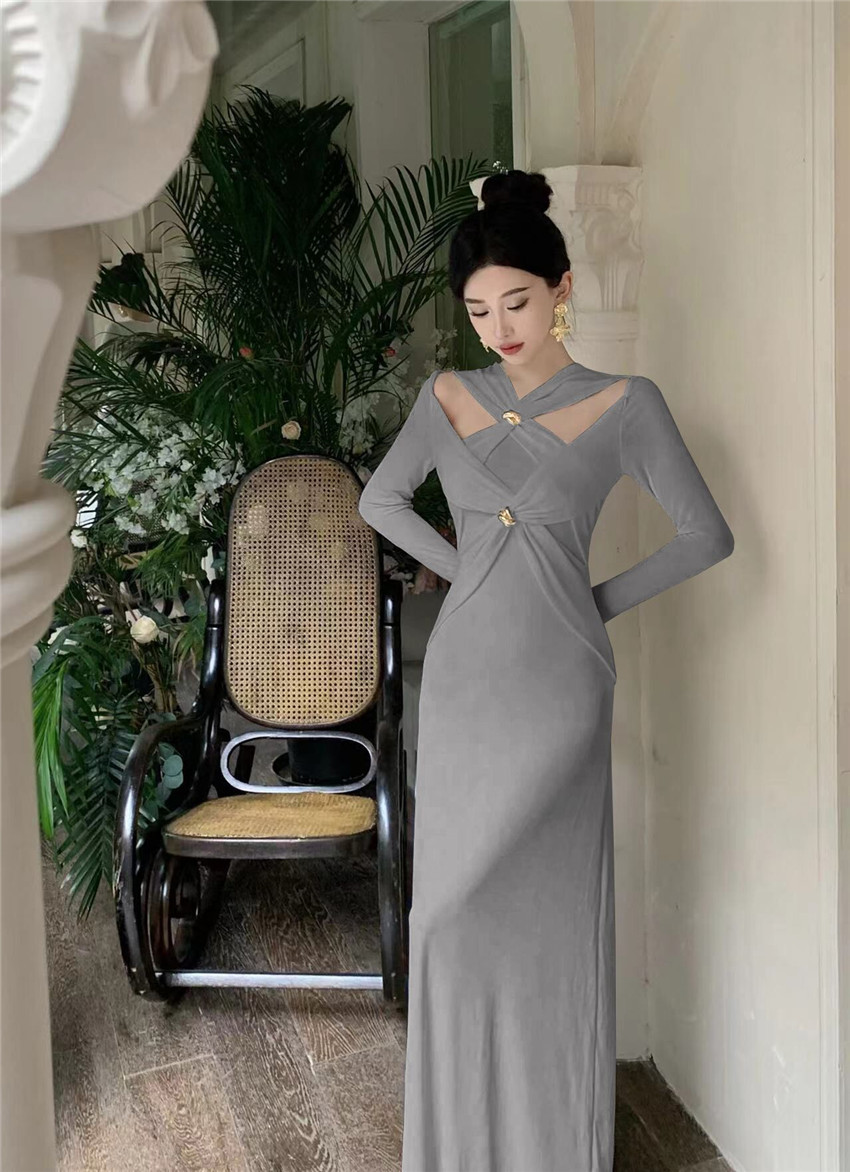 Chiếc đầm này có điểm nhấn đặc biệt ở phần cổ áo khoét sâu, hai dải vải bắt chéo tạo nên phong cách gợi cảm và khéo léo. Tay áo được thiết kế rộng rãi, phần thân ôm dáng giúp tôn lên đường nét cơ thể. Vạt đầm xòe rộng tạo cảm giác nhẹ nhàng, uyển chuyển khi di chuyển. Sản phẩm phù hợp cho những buổi gặp mặt, dạo phố. Mặc cùng giày cao gót và phụ kiện tinh tế để hoàn thiện phong cách. | Tên sản phẩm: Váy Đầm Xòe Liền Thân Nữ Dáng Ôm Hàng Mùa Xuân Thu Đông - Thời Trang Nữ | Mã sản phẩm: B3266 - Giá: 940.000đ | Mã nhà sản xuất: ZHOUT-G03Hình ảnh sản phẩm