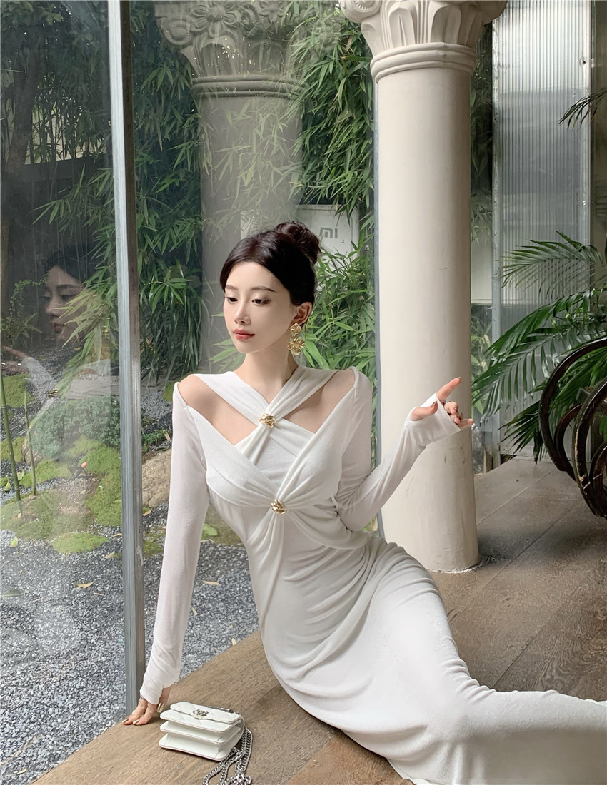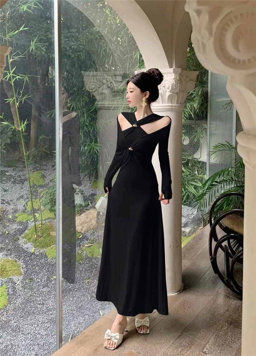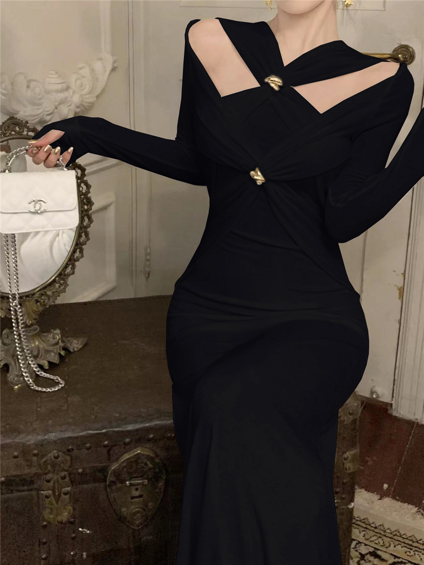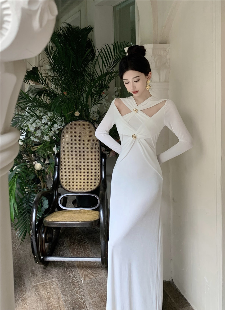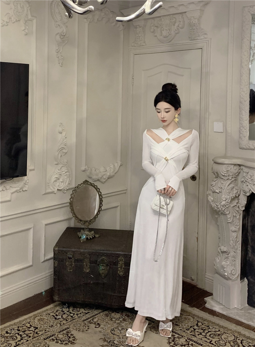 Chiếc đầm này có điểm nhấn đặc biệt ở phần cổ áo khoét sâu, hai dải vải bắt chéo tạo nên phong cách gợi cảm và khéo léo. Tay áo được thiết kế rộng rãi, phần thân ôm dáng giúp tôn lên đường nét cơ thể. Vạt đầm xòe rộng tạo cảm giác nhẹ nhàng, uyển chuyển khi di chuyển. Sản phẩm phù hợp cho những buổi gặp mặt, dạo phố. Mặc cùng giày cao gót và phụ kiện tinh tế để hoàn thiện phong cách. | Tên sản phẩm: Váy Đầm Xòe Liền Thân Nữ Dáng Ôm Hàng Mùa Xuân Thu Đông - Thời Trang Nữ | Mã sản phẩm: B3266 - Giá: 940.000đ | Mã nhà sản xuất: ZHOUT-G03Hình ảnh sản phẩm