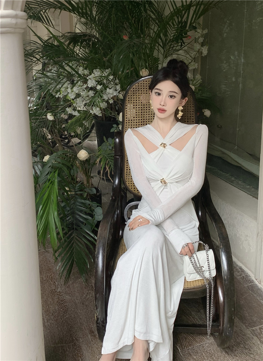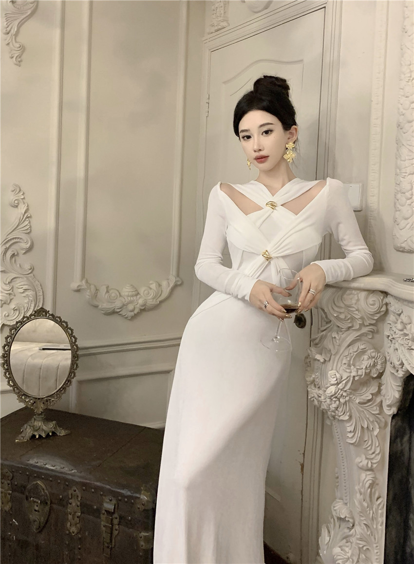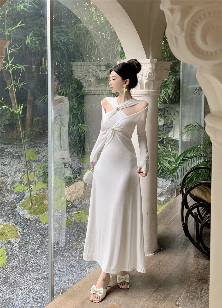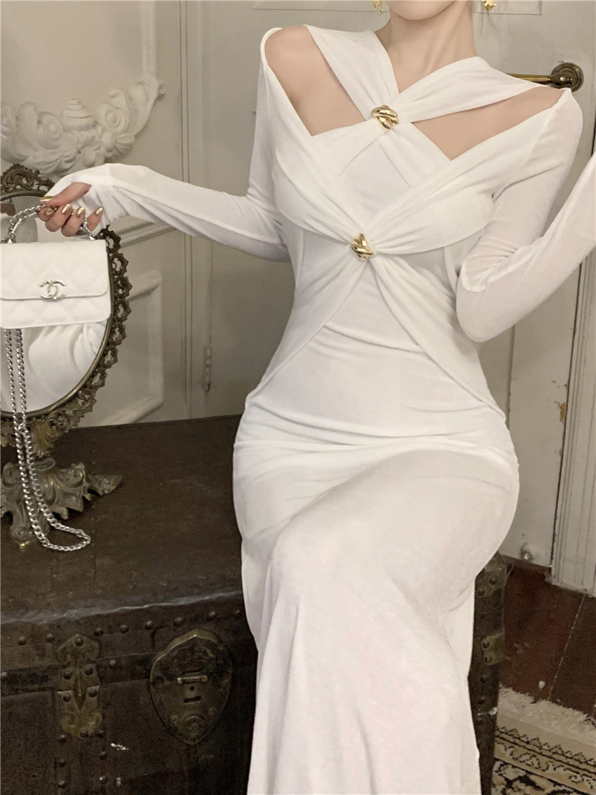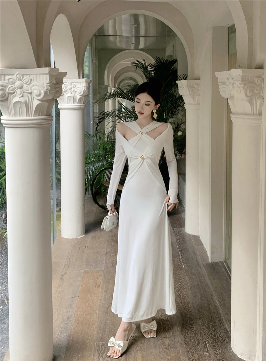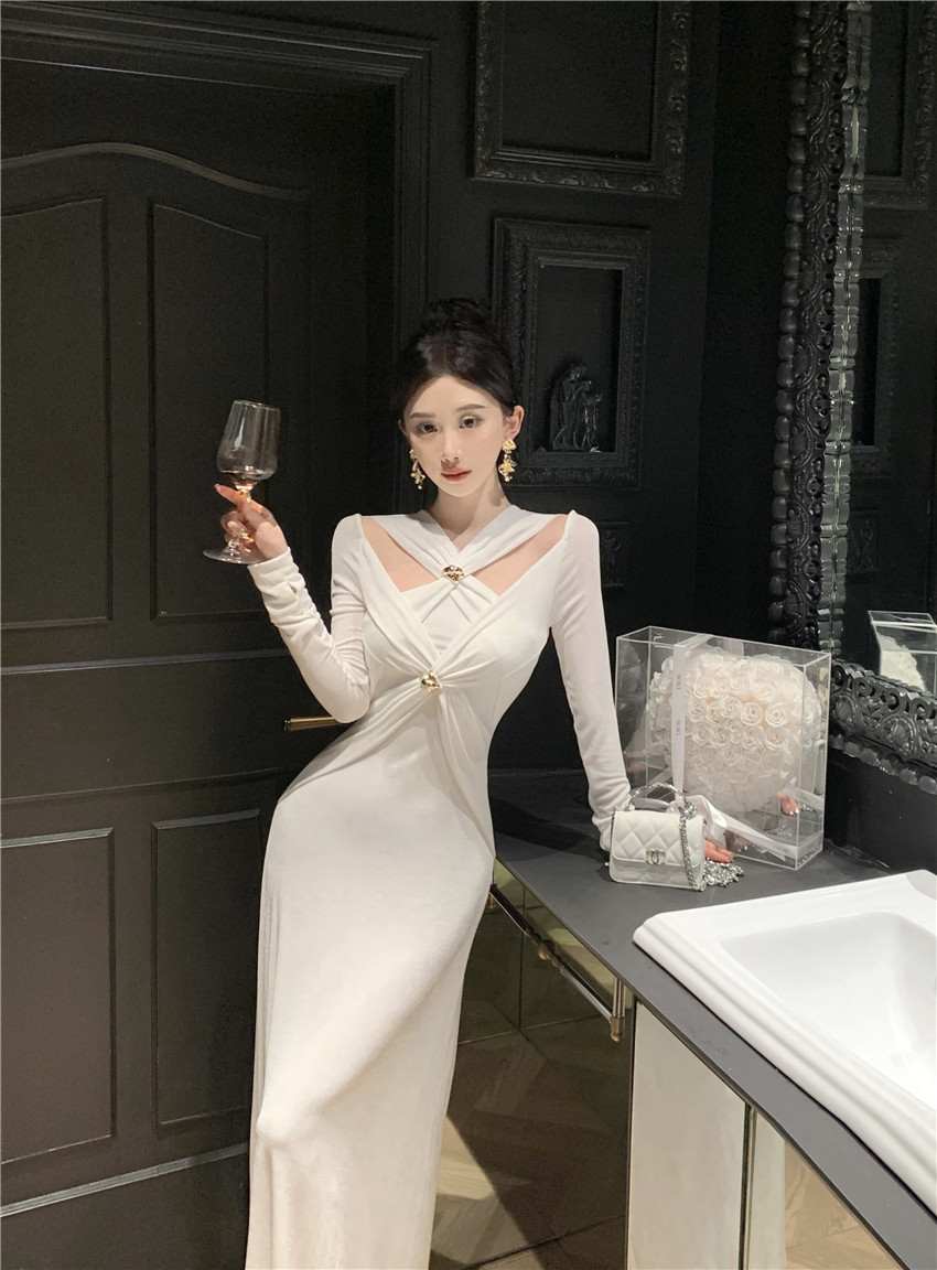 Chiếc đầm này có điểm nhấn đặc biệt ở phần cổ áo khoét sâu, hai dải vải bắt chéo tạo nên phong cách gợi cảm và khéo léo. Tay áo được thiết kế rộng rãi, phần thân ôm dáng giúp tôn lên đường nét cơ thể. Vạt đầm xòe rộng tạo cảm giác nhẹ nhàng, uyển chuyển khi di chuyển. Sản phẩm phù hợp cho những buổi gặp mặt, dạo phố. Mặc cùng giày cao gót và phụ kiện tinh tế để hoàn thiện phong cách. | Tên sản phẩm: Váy Đầm Xòe Liền Thân Nữ Dáng Ôm Hàng Mùa Xuân Thu Đông - Thời Trang Nữ | Mã sản phẩm: B3266 - Giá: 940.000đ | Mã nhà sản xuất: ZHOUT-G03Hình ảnh sản phẩm