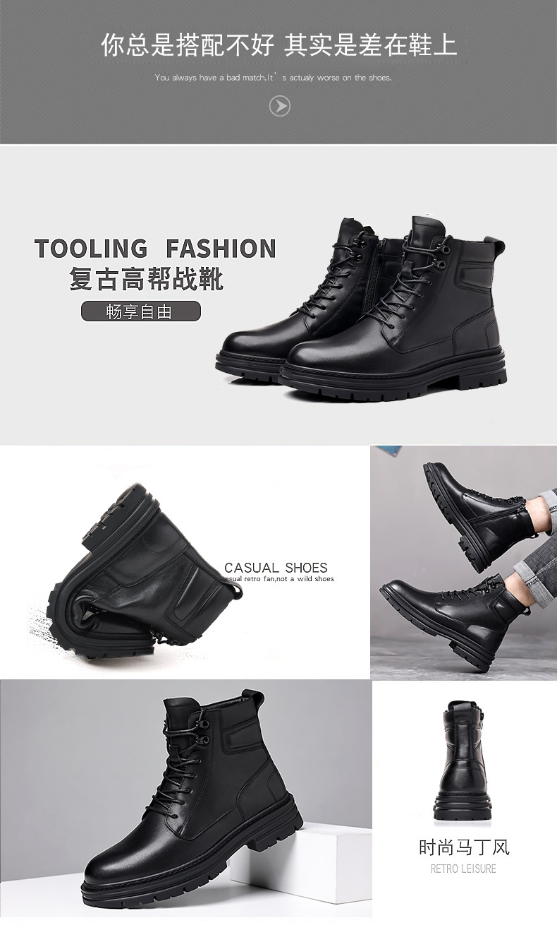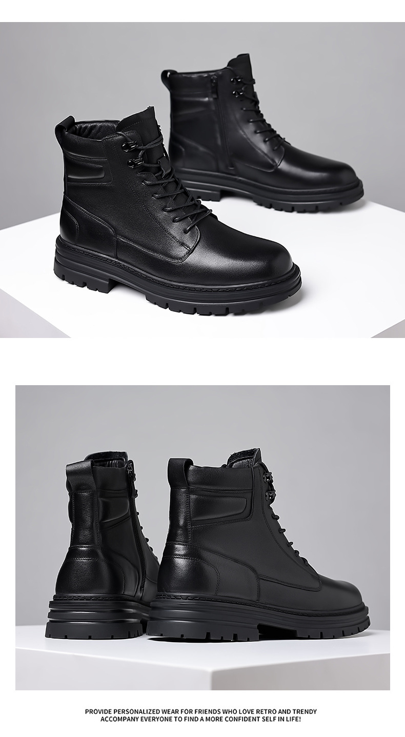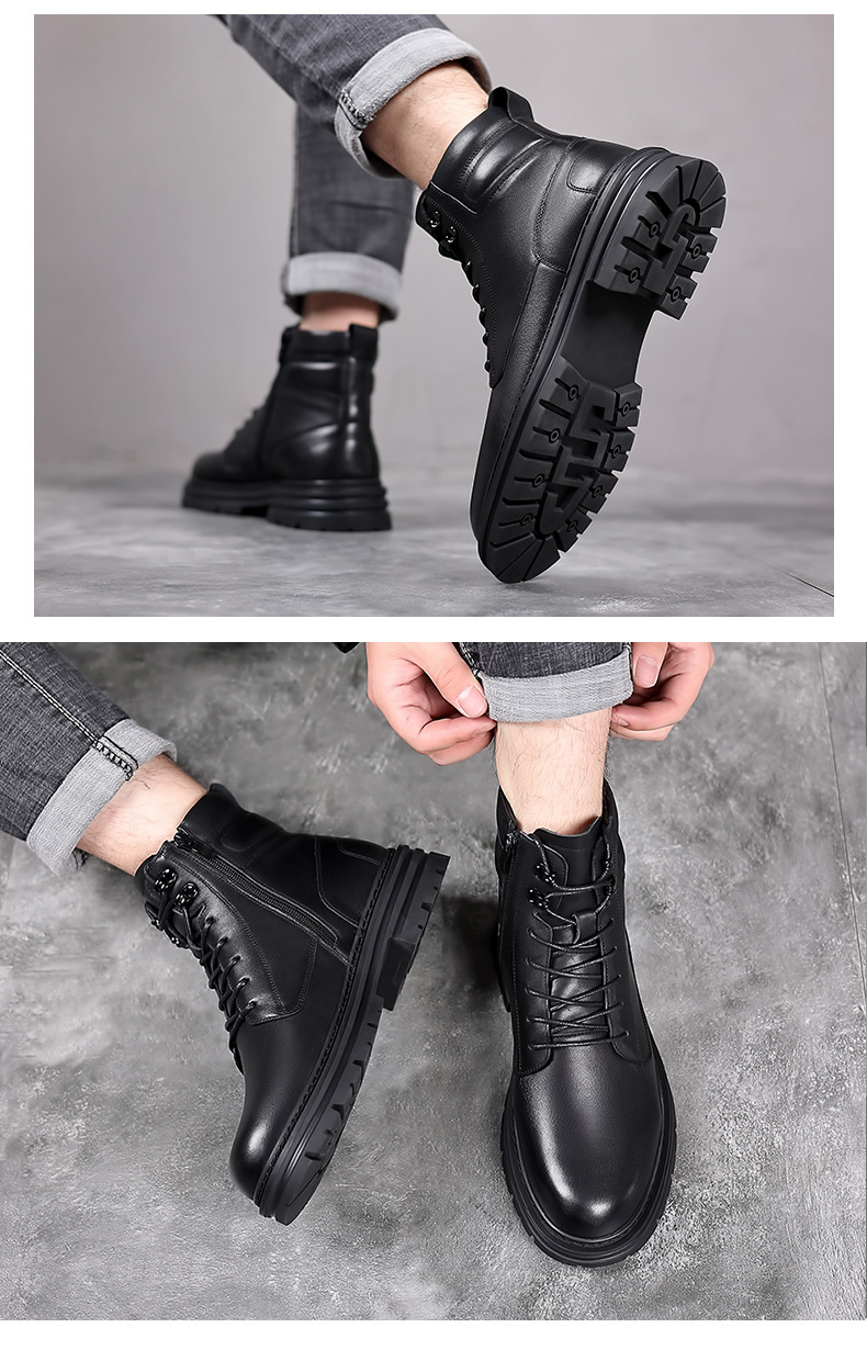 Đôi bốt này mang phong cách Anh cổ điển, dáng cổ cao. Sản phẩm được làm từ chất liệu da thật tự nhiên, bền đẹp theo thời gian. Đế giày được thiết kế dày dặn, tăng thêm chiều cao và giúp bước đi vững chãi. Phần cổ giày có lớp lót mềm mại, giữ ấm tốt cho đôi chân. Bạn có thể dễ dàng mang vào hoặc tháo ra nhờ khóa kéo bên hông. Kiểu dáng lịch sự, phù hợp để phối cùng nhiều loại trang phục khác nhau khi đi làm hoặc dạo phố. | Tên sản phẩm: Giày Boot Martin Nam Chất Liệu Da Bò Đế Cao - Giày Dép Nam | Mã sản phẩm: B3290 - Giá: 1.240.000đ | Mã nhà sản xuất: WEDS-G04Hình ảnh sản phẩm
