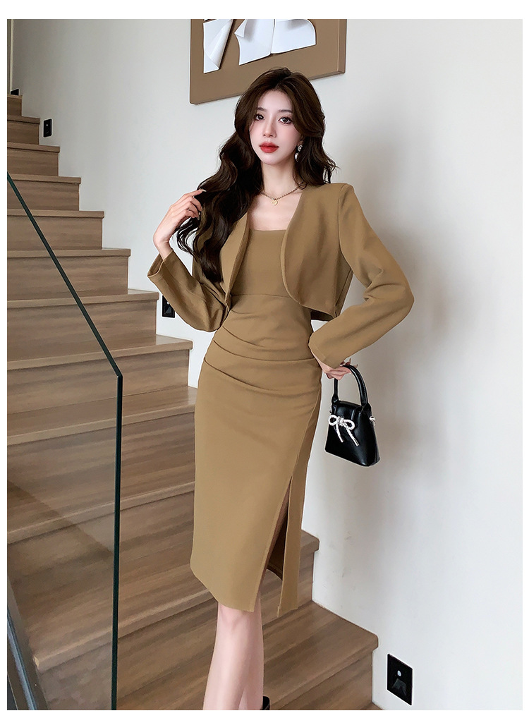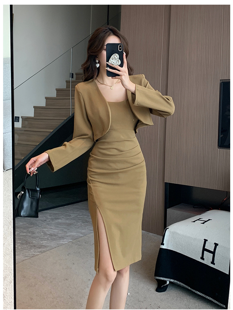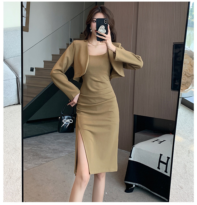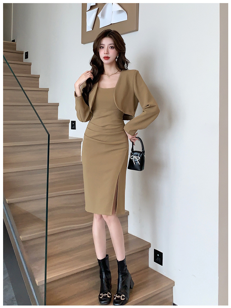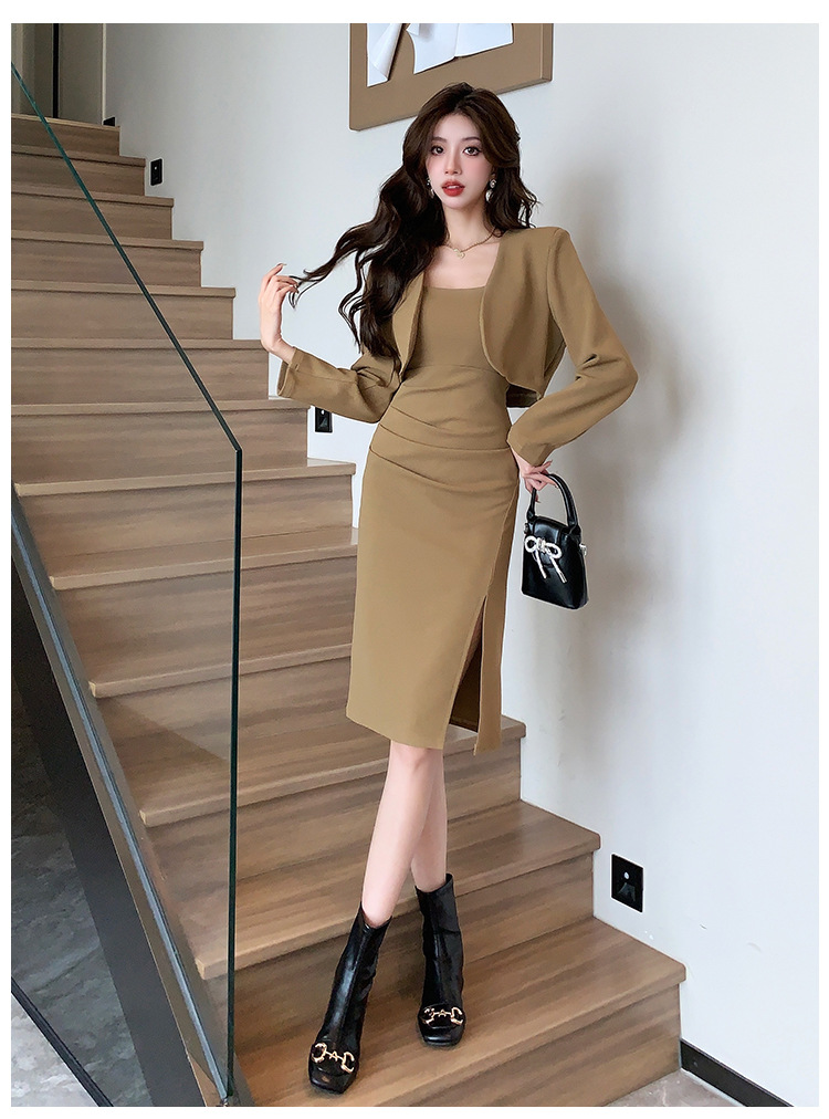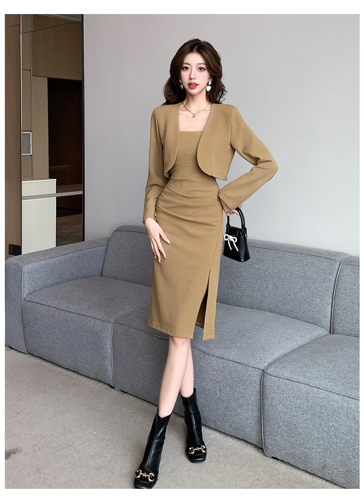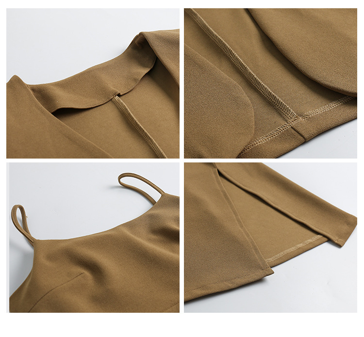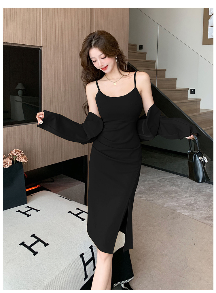 Bộ trang phục này gồm áo khoác dài tay mặc ngoài và đầm hai dây xẻ tà. Chất vải mềm mại, tạo cảm giác dễ chịu khi mặc. Áo khoác có thiết kế mở phía trước, dễ dàng phối cùng nhiều kiểu trang phục khác nhau. Đầm hai dây ôm nhẹ cơ thể, tà xẻ tinh tế giúp tôn dáng người mặc. Có thể sử dụng bộ đôi cùng lúc hoặc tách rời để phối đồ linh hoạt. Phù hợp cho nhiều dịp sinh hoạt hằng ngày. | Tên sản phẩm: Áo Hai Dây Nữ Dài Tay Cả Bộ 2 Món Hai Dây Hở Vai Hàng Mùa Xuân Thu Đông - Thời Trang Nữ | Mã sản phẩm: B3295 - Giá: 780.000đ | Mã nhà sản xuất: ZHOUT-G02Hình ảnh sản phẩm
