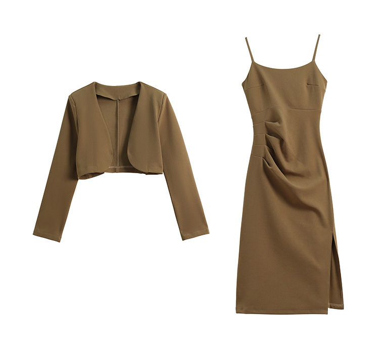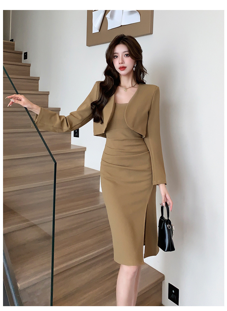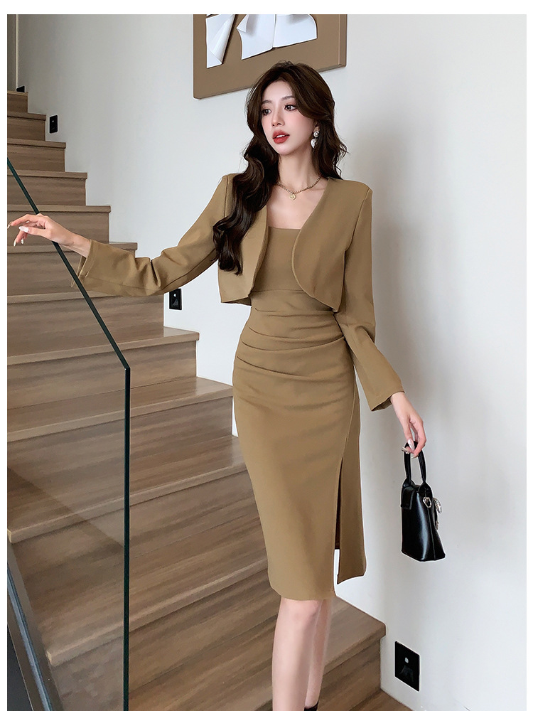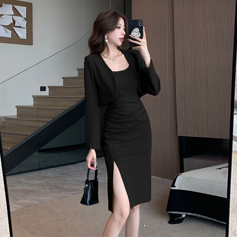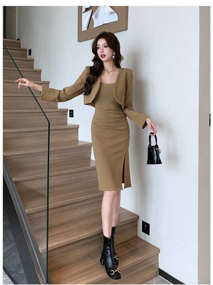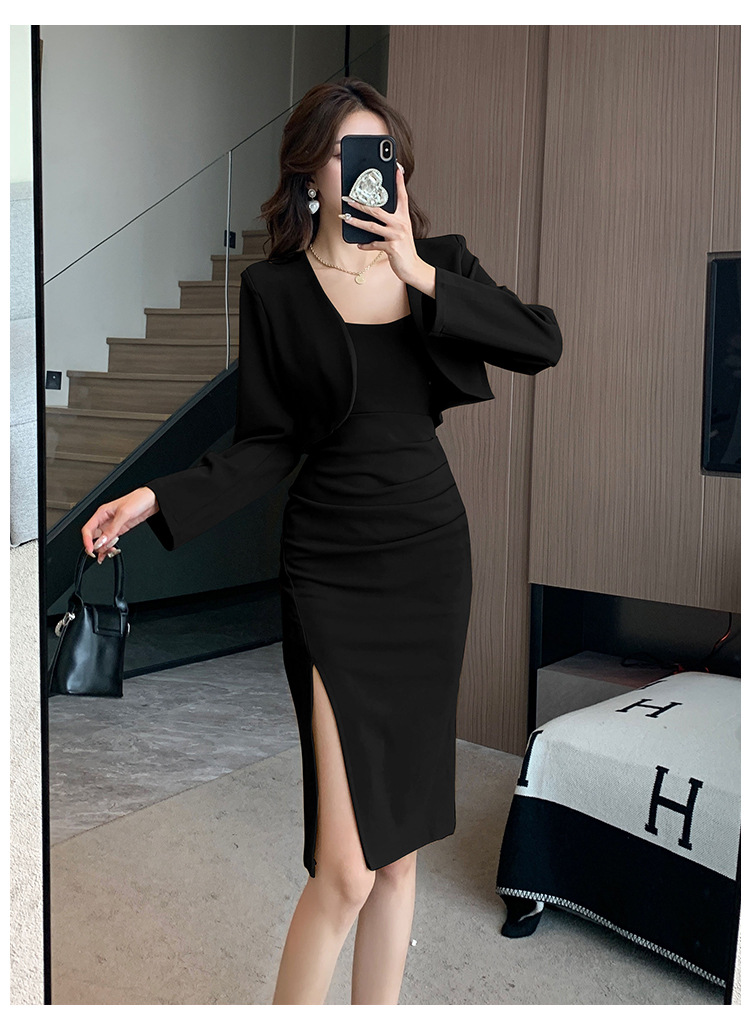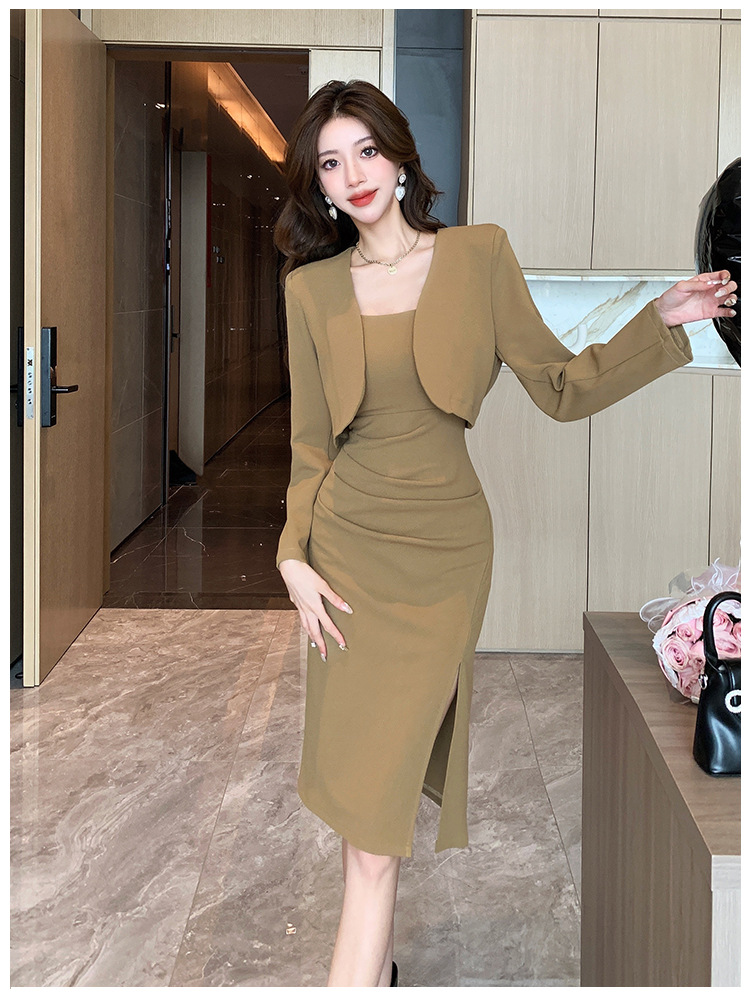 Bộ trang phục này gồm áo khoác dài tay mặc ngoài và đầm hai dây xẻ tà. Chất vải mềm mại, tạo cảm giác dễ chịu khi mặc. Áo khoác có thiết kế mở phía trước, dễ dàng phối cùng nhiều kiểu trang phục khác nhau. Đầm hai dây ôm nhẹ cơ thể, tà xẻ tinh tế giúp tôn dáng người mặc. Có thể sử dụng bộ đôi cùng lúc hoặc tách rời để phối đồ linh hoạt. Phù hợp cho nhiều dịp sinh hoạt hằng ngày. | Tên sản phẩm: Áo Hai Dây Nữ Dài Tay Cả Bộ 2 Món Hai Dây Hở Vai Hàng Mùa Xuân Thu Đông - Thời Trang Nữ | Mã sản phẩm: B3295 - Giá: 780.000đ | Mã nhà sản xuất: ZHOUT-G02Hình ảnh sản phẩm