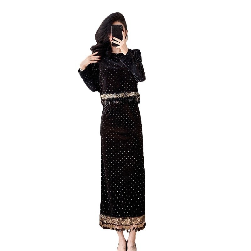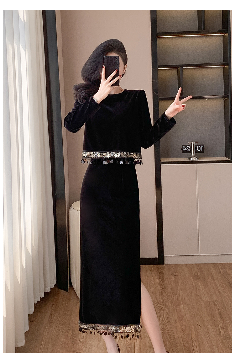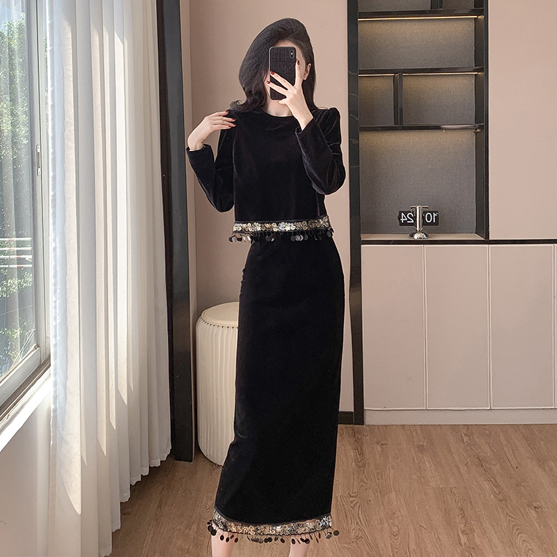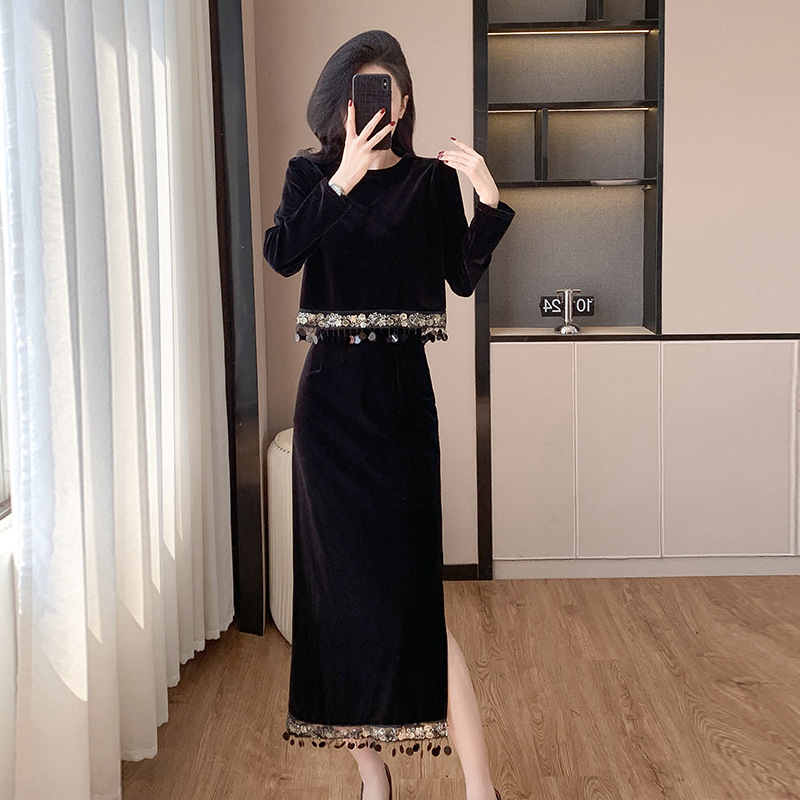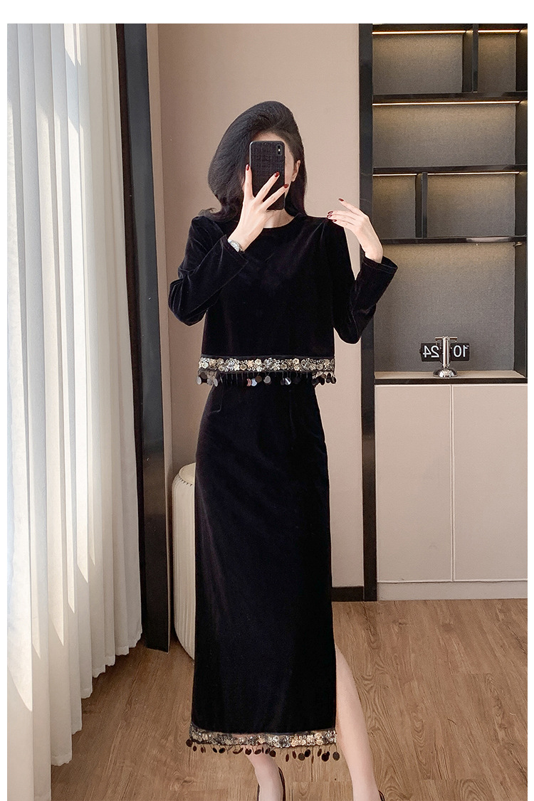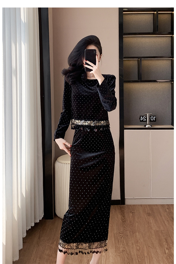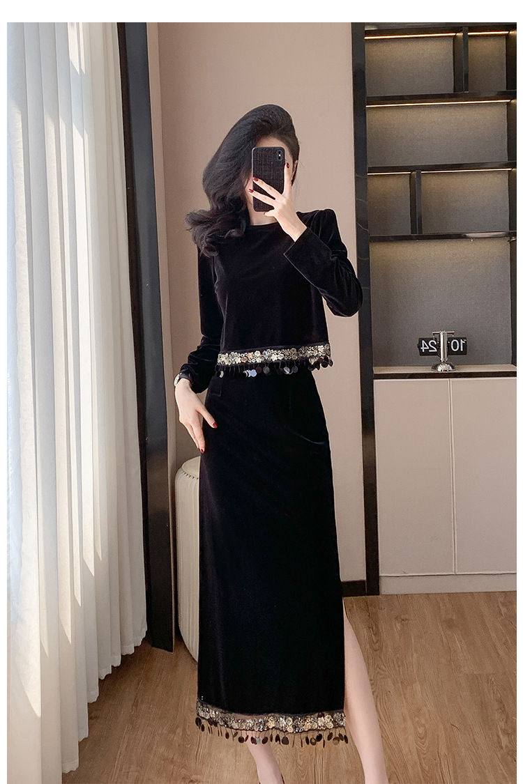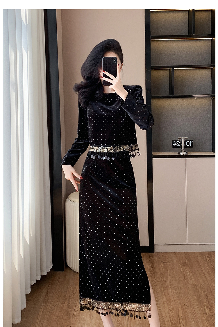 Bộ trang phục hai mảnh này gồm áo dài tay và chân váy, mang đến vẻ đẹp thanh lịch. Chất vải mềm mại, có ánh lụa nhẹ tạo cảm giác ấm áp, phù hợp cho tiết trời mát mẻ. Kiểu dáng ôn hòa, dễ dàng phối đồ. Bạn có thể mặc nguyên bộ để đi làm hoặc dạo phố, cũng có thể tách riêng từng món để kết hợp với các trang phục khác, rất thuận tiện và linh hoạt. | Tên sản phẩm: Đồ Bộ Nữ Dài Tay Cả Bộ 2 Món Hàng Mùa Xuân Thu Đông - Thời Trang Nữ | Mã sản phẩm: B3316 - Giá: 920.000đ | Mã nhà sản xuất: ZHOUT-G03Hình ảnh sản phẩm