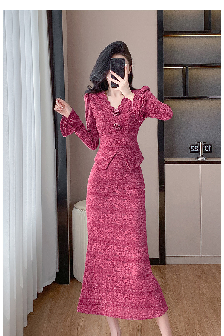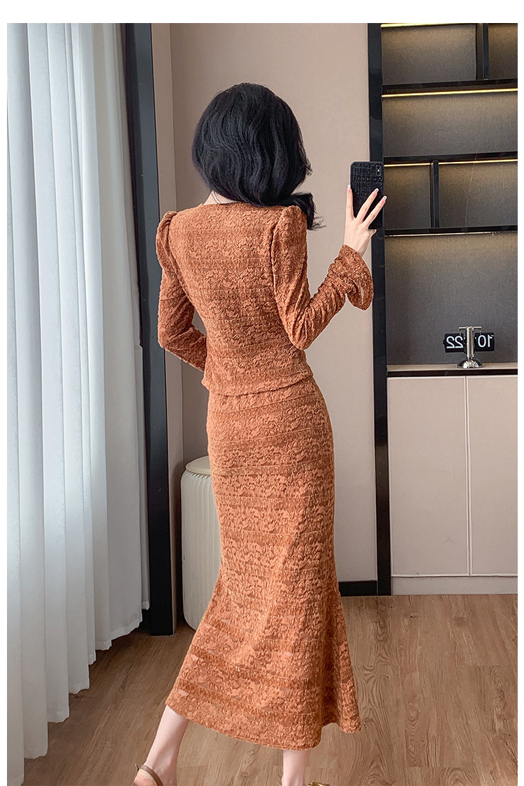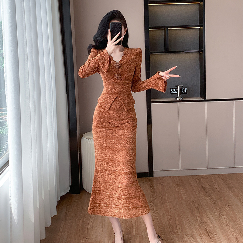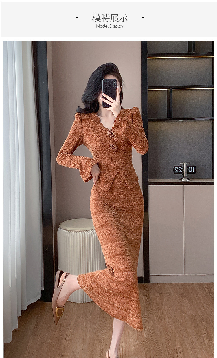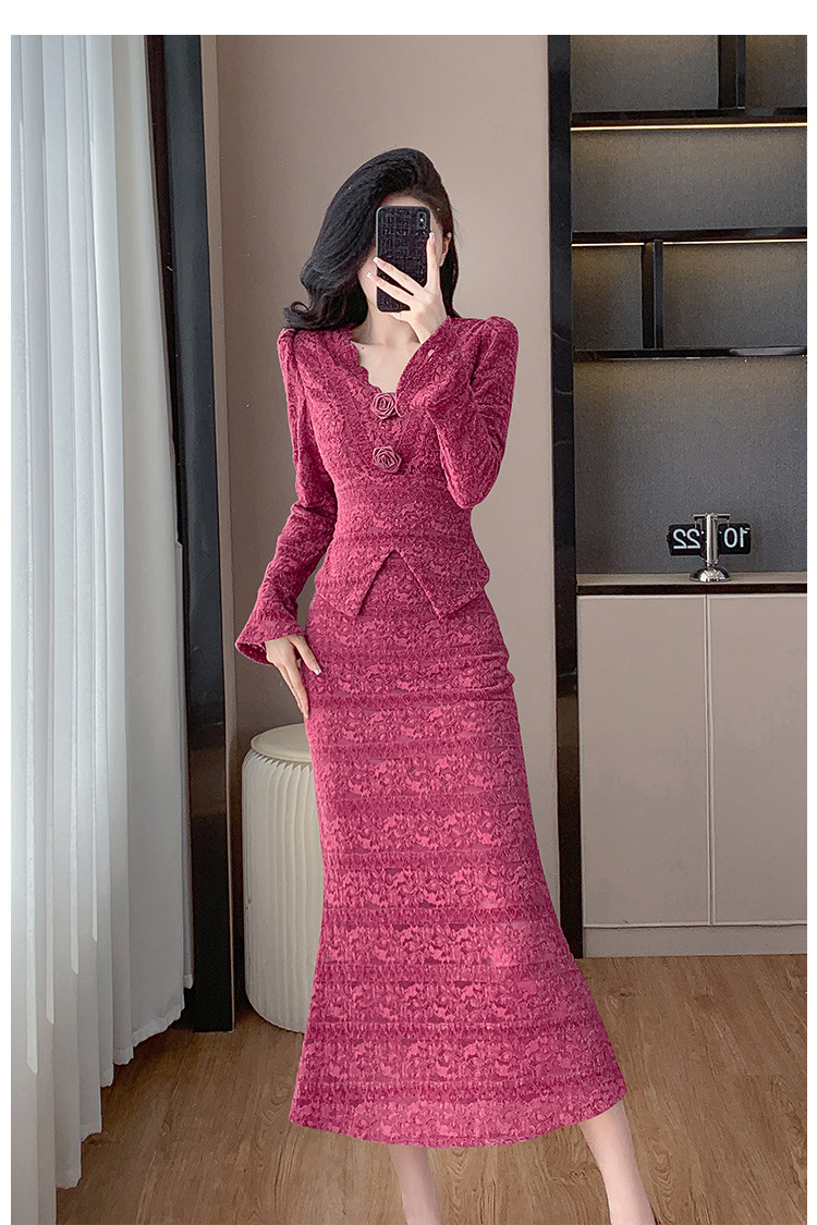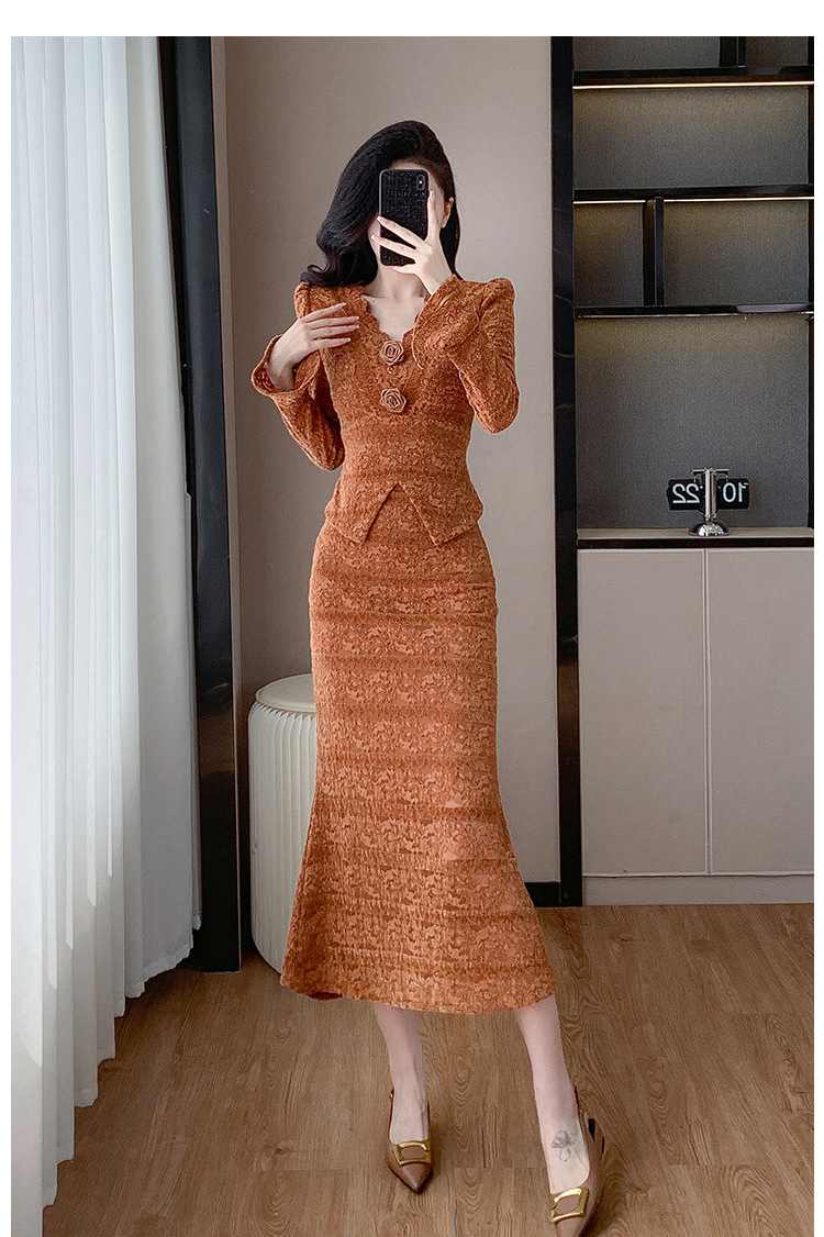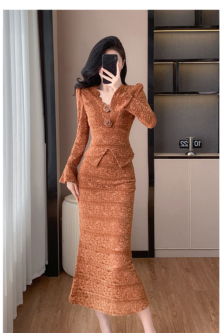 Bộ trang phục hai mảnh này gồm áo và chân váy, mang đến vẻ đẹp dịu dàng và nữ tính. Áo có phần cổ khoét sâu tạo điểm nhấn, kết hợp với tay áo được thiết kế xòe nhẹ như cánh sen, tạo cảm giác mềm mại và uyển chuyển. Chân váy ôn nhẹ giúp tôn lên dáng vẻ thanh thoát. Bộ trang phục rất dễ phối đồ và có thể mặc đi làm, đi chơi hoặc dự những buổi gặp mặt thân mật. | Tên sản phẩm: Áo Sơ Mi Nữ Cả Bộ 2 Món Cổ Chữ V Hàng Mùa Xuân Thu Đông - Thời Trang Nữ | Mã sản phẩm: B3317 - Giá: 1.050.000đ | Mã nhà sản xuất: ZHOUT-G03Hình ảnh sản phẩm