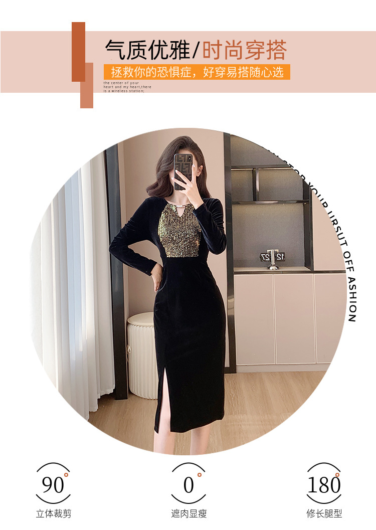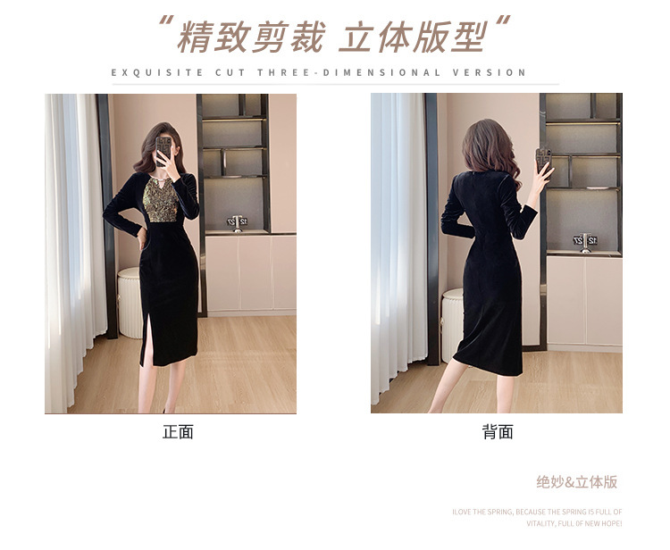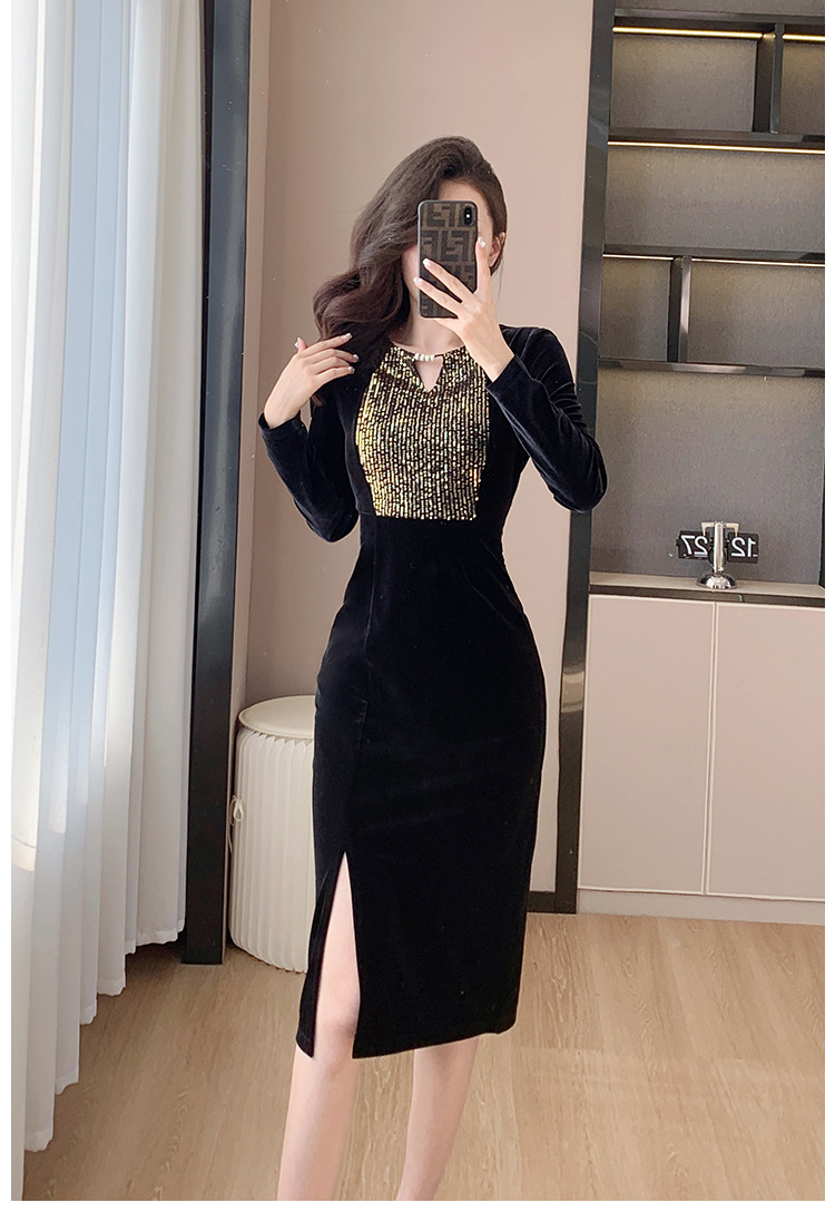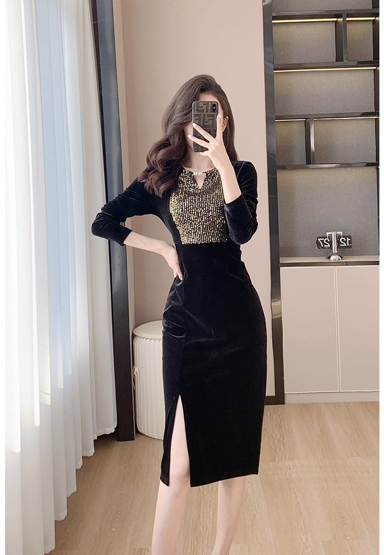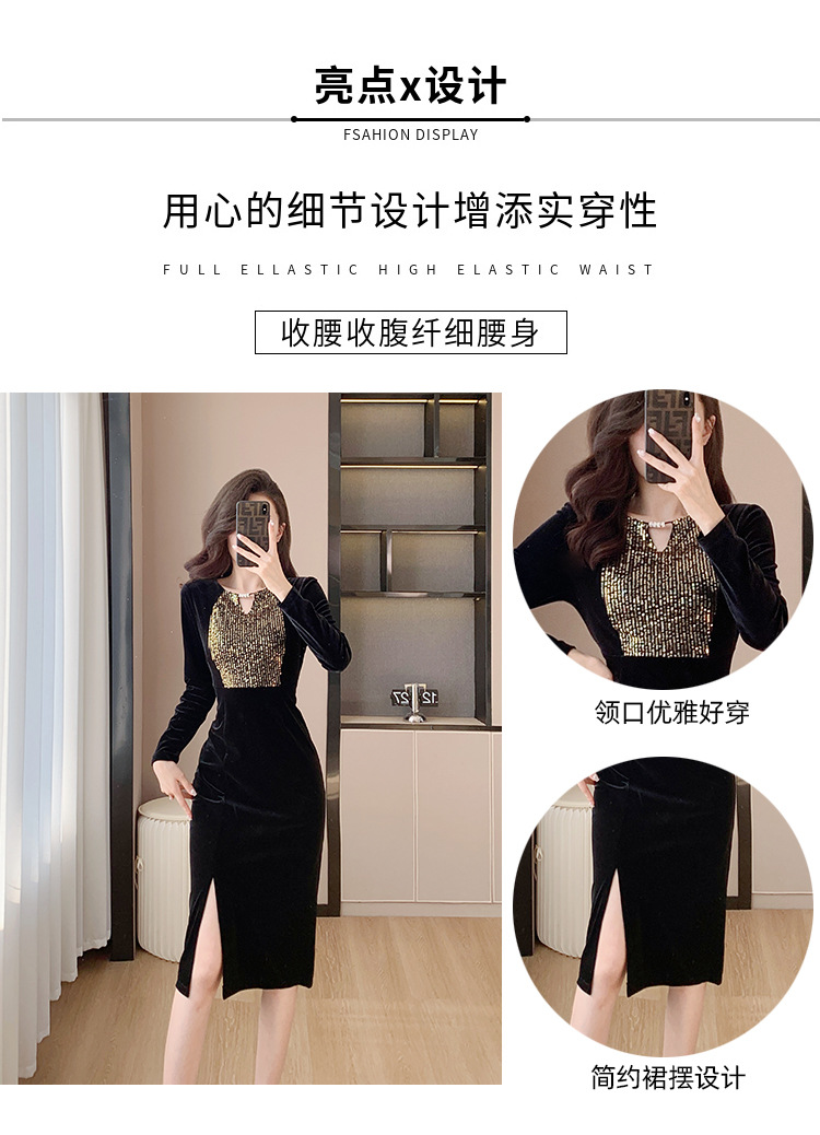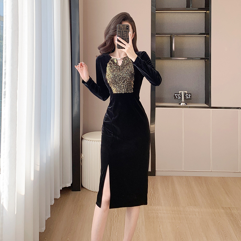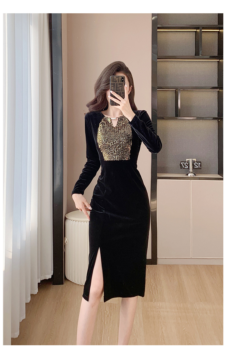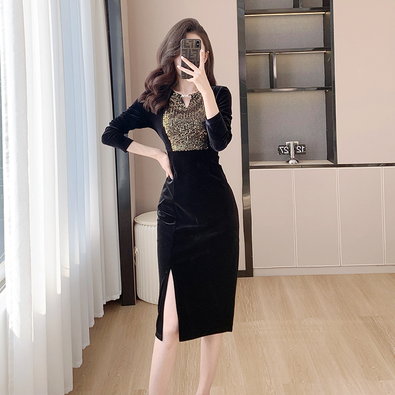 Đầm dáng suông ôm sát cơ thể, điểm nhấn là chất vải mềm mại lấp lánh ánh kim nhẹ. Thiết kế cổ điển với tay dài và phần thân trên ôm nhẹ nhàng, phù hợp cho các buổi họp mặt hoặc dạo phố vào mùa lạnh. Sản phẩm dễ dàng phối cùng giày cao gót hoặc boots. Mặc cùng áo khoác mỏng khi trời se lạnh để giữ ấm và tạo vẻ ngoài thanh lịch. | Tên sản phẩm: Váy Đầm Liền Thân Nữ Dáng Ôm Hàng Mùa Xuân Thu Đông - Thời Trang Nữ | Mã sản phẩm: B3326 - Giá: 780.000đ | Mã nhà sản xuất: ZHOUT-G02Hình ảnh sản phẩm