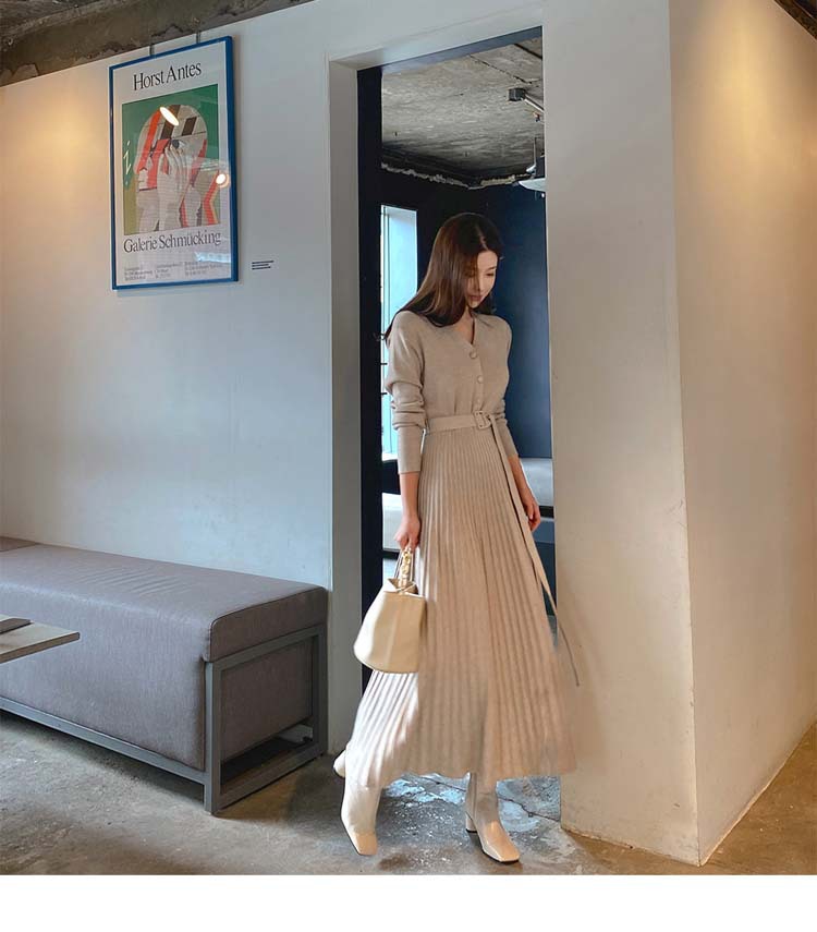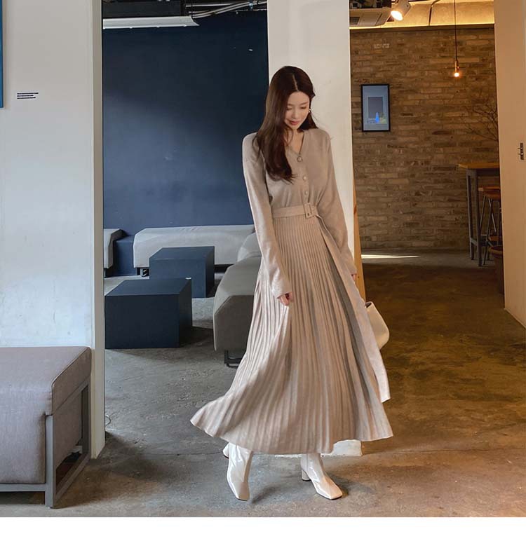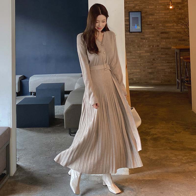 Chiếc đầm dáng dài mặc vào mùa thu, được dệt từ chất liệu mềm mại, ôm nhẹ nhàng cơ thể. Thiết kế có cổ chữ V tạo cảm giác thanh thoát, kèm theo một sợi dây thắt lưng để bạn có thể điều chỉnh vòng eo cho vừa vặn. Phần váy xòe nhẹ với những nếp gấp giúp tăng thêm nét duyên dáng khi di chuyển. Sản phẩm phù hợp để mặc đi làm hoặc dự những buổi gặp mặt thông thường. | Tên sản phẩm: Váy Đầm Liền Thân Nữ Áo Len Cổ Chữ V Hàng Mùa Xuân Thu Đông - Thời Trang Nữ | Mã sản phẩm: B3340 - Giá: 770.000đ | Mã nhà sản xuất: ZHOUT-G02Hình ảnh sản phẩm