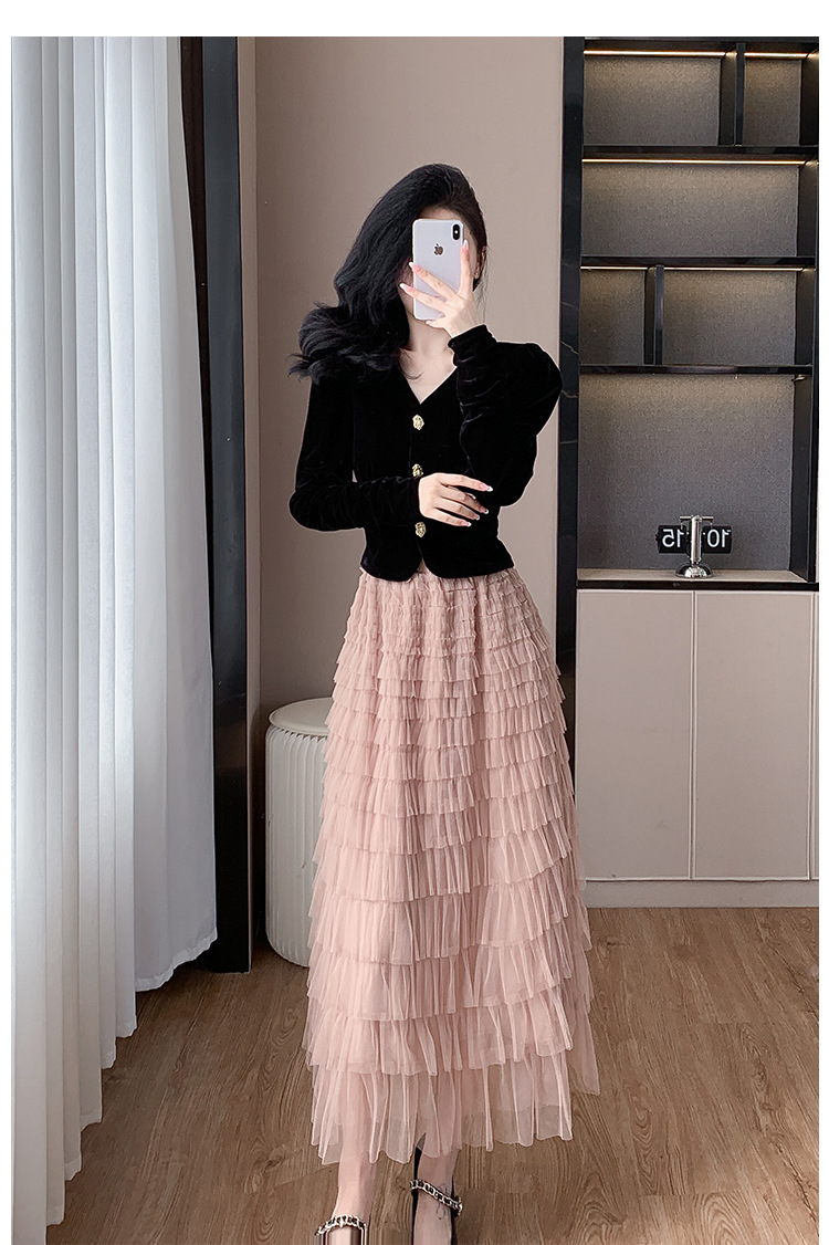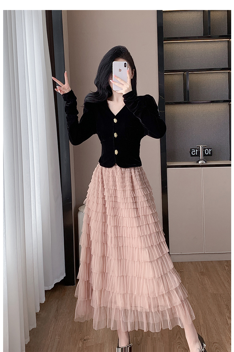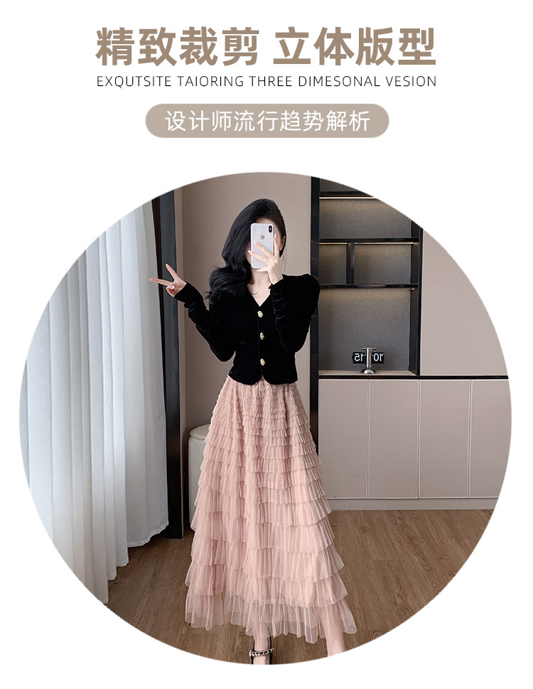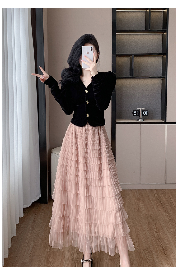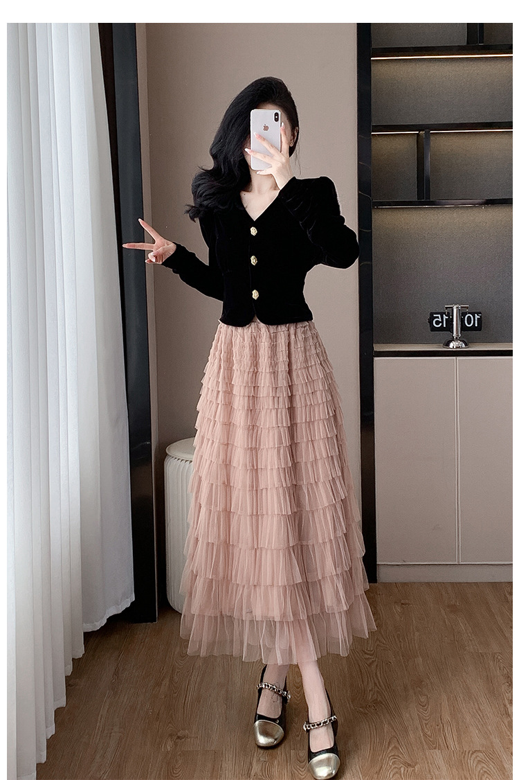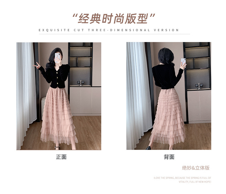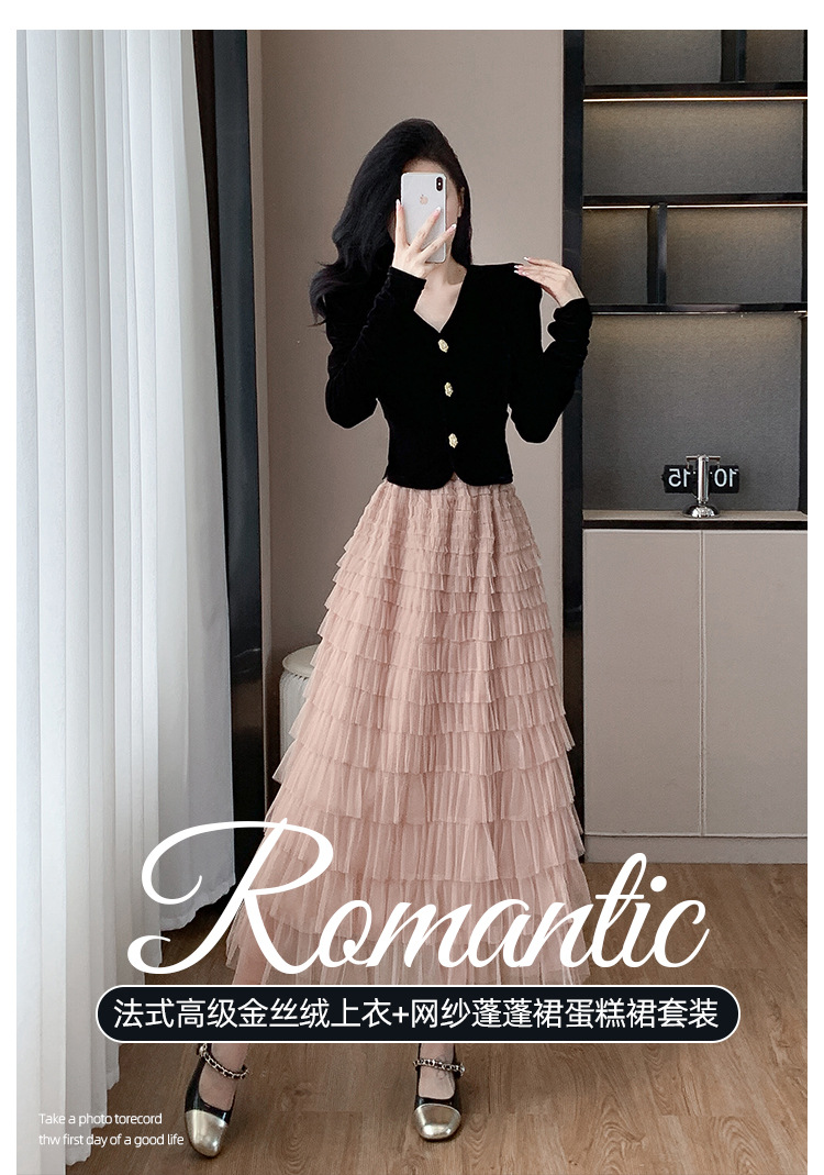 Bộ trang phục hai mảnh này mang nét đẹp cổ điển, lấy cảm hứng từ phong cách thời trang châu Âu xưa. Áo được may từ chất liệu nhung mềm mại, tạo cảm giác dễ chịu khi mặc. Đi kèm là chiếc váy dài qua gối có phần viền kết hợp lưới mỏng, tăng thêm vẻ nữ tính và duyên dáng. Bộ trang phục phù hợp để đi làm, dự tiệc nhẹ hoặc gặp mặt bạn bè. Có thể giặt tay nhẹ nhàng và phơi nơi thoáng mát để giữ form áo được bền đẹp. | Tên sản phẩm: Đồ Bộ Nữ Lưới Mỏng Cả Bộ 2 Món Hàng Mùa Xuân Thu Đông Phục Cổ Cổ Điển - Thời Trang Nữ | Mã sản phẩm: B3347 - Giá: 1.030.000đ | Mã nhà sản xuất: ZHOUT-G03Hình ảnh sản phẩm