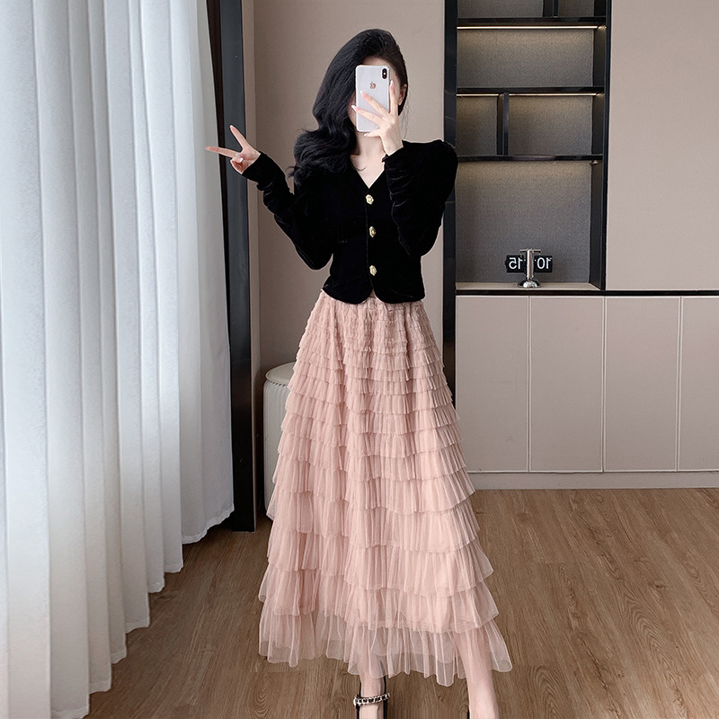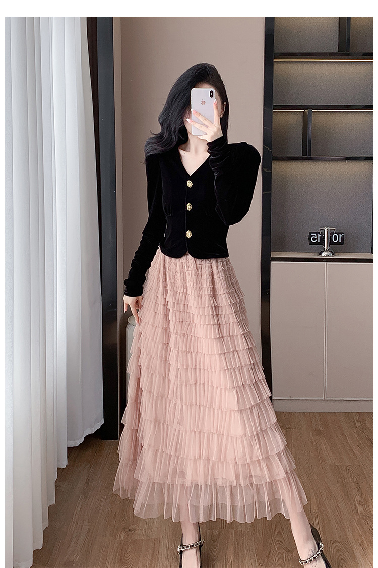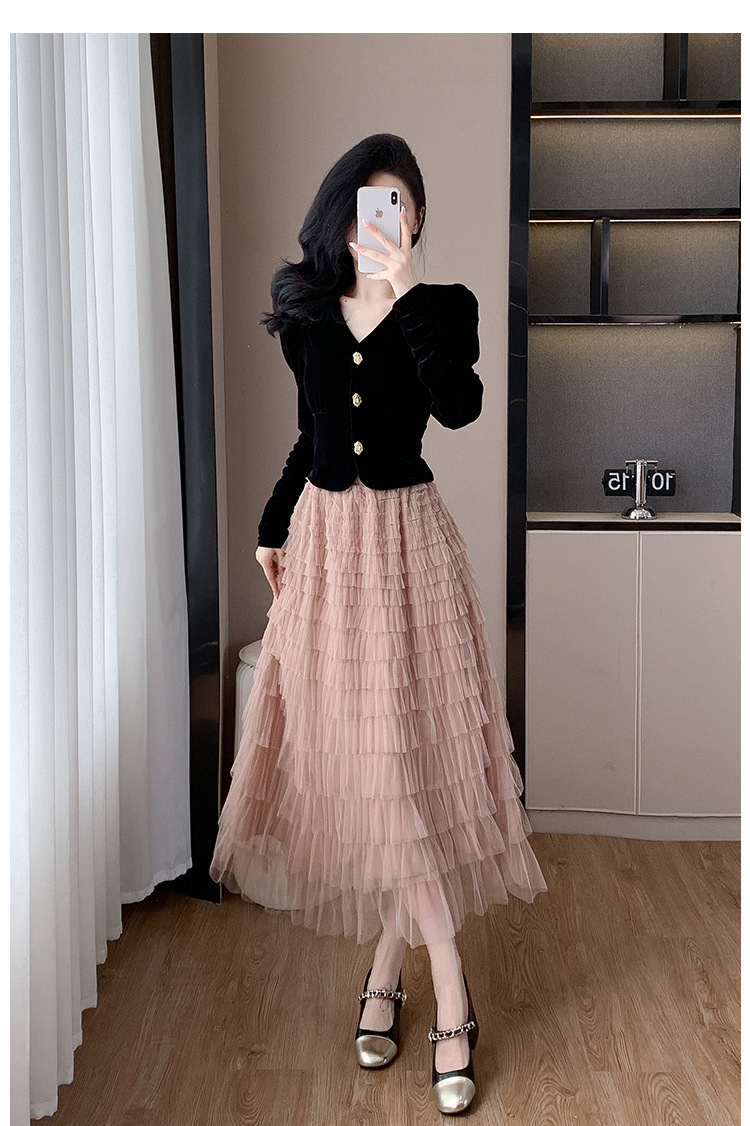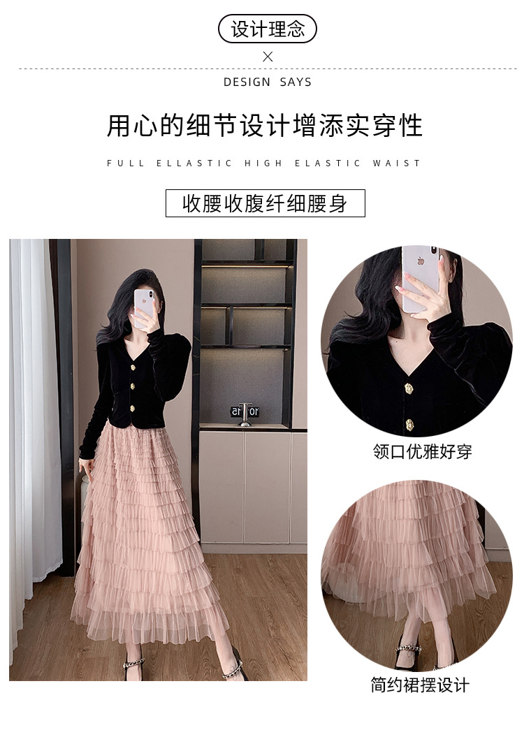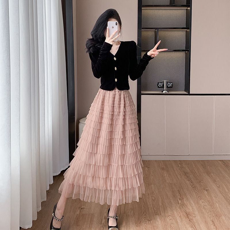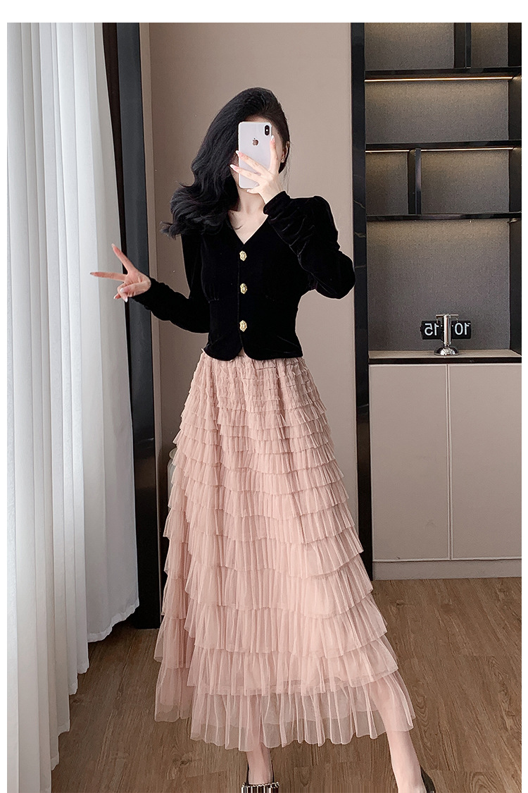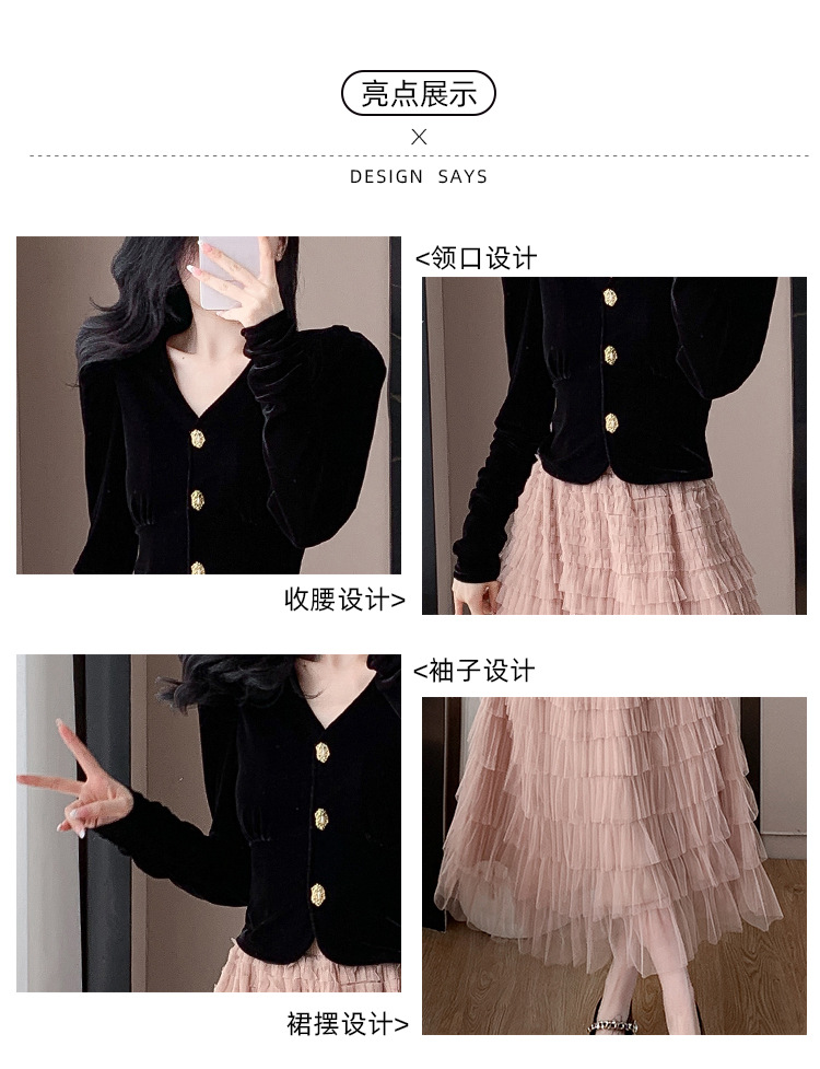 Bộ trang phục hai mảnh này mang nét đẹp cổ điển, lấy cảm hứng từ phong cách thời trang châu Âu xưa. Áo được may từ chất liệu nhung mềm mại, tạo cảm giác dễ chịu khi mặc. Đi kèm là chiếc váy dài qua gối có phần viền kết hợp lưới mỏng, tăng thêm vẻ nữ tính và duyên dáng. Bộ trang phục phù hợp để đi làm, dự tiệc nhẹ hoặc gặp mặt bạn bè. Có thể giặt tay nhẹ nhàng và phơi nơi thoáng mát để giữ form áo được bền đẹp. | Tên sản phẩm: Đồ Bộ Nữ Lưới Mỏng Cả Bộ 2 Món Hàng Mùa Xuân Thu Đông Phục Cổ Cổ Điển - Thời Trang Nữ | Mã sản phẩm: B3347 - Giá: 1.030.000đ | Mã nhà sản xuất: ZHOUT-G03Hình ảnh sản phẩm