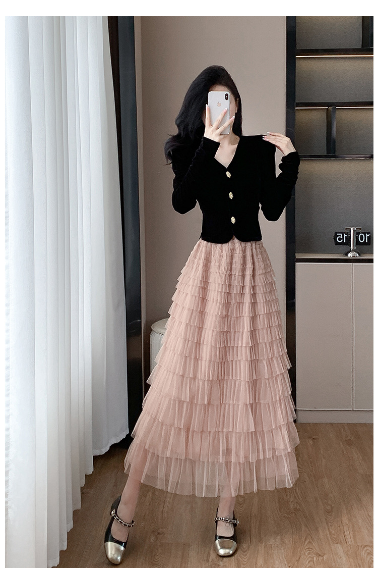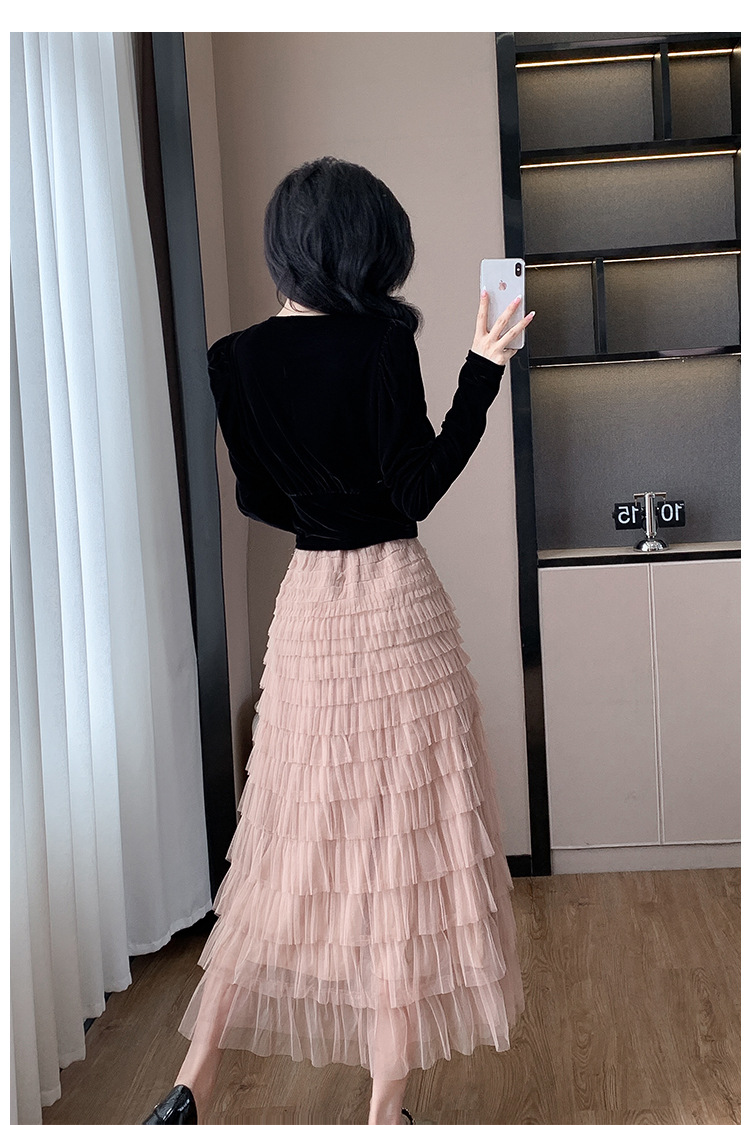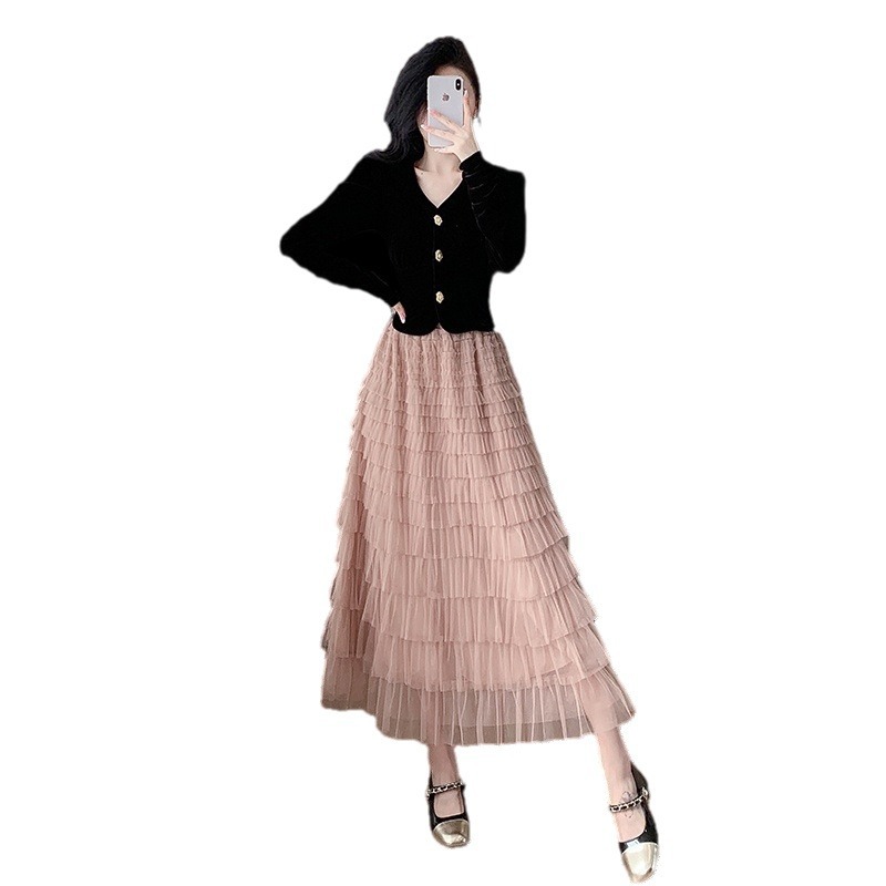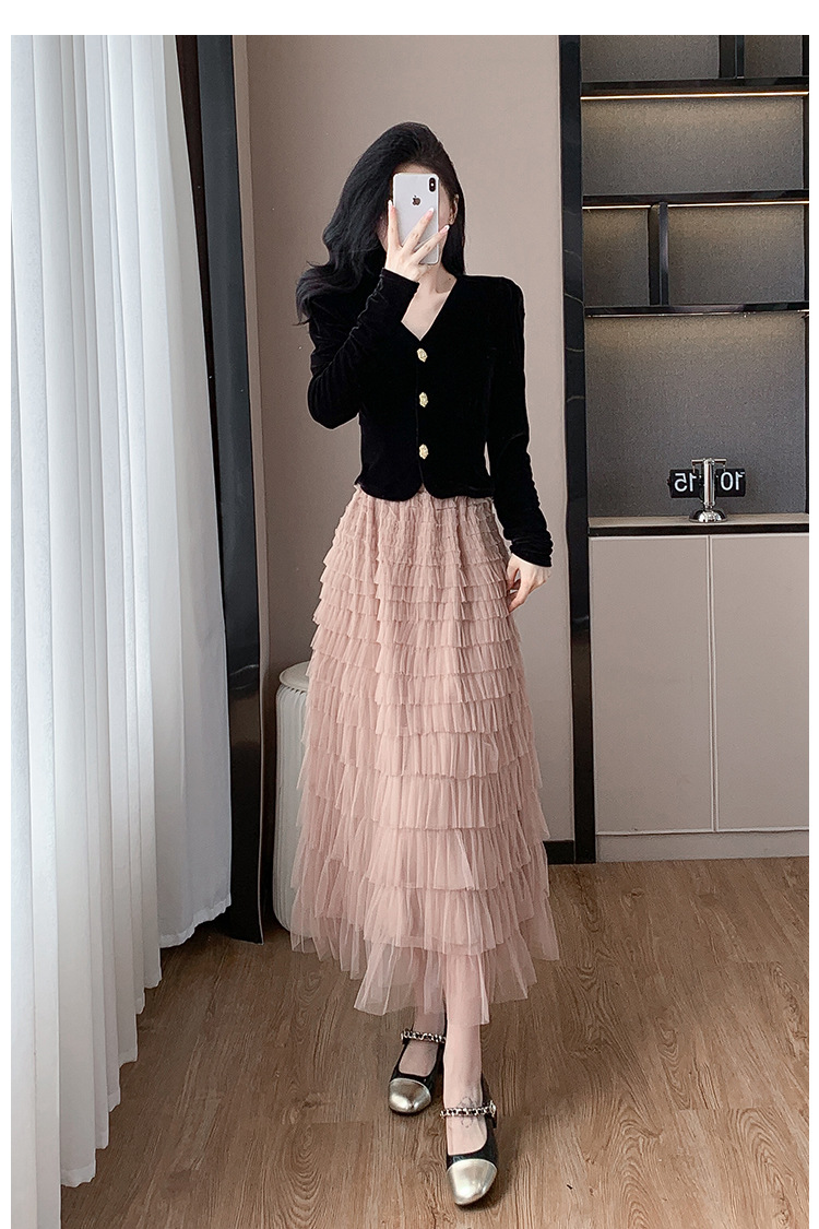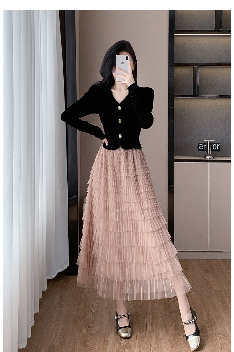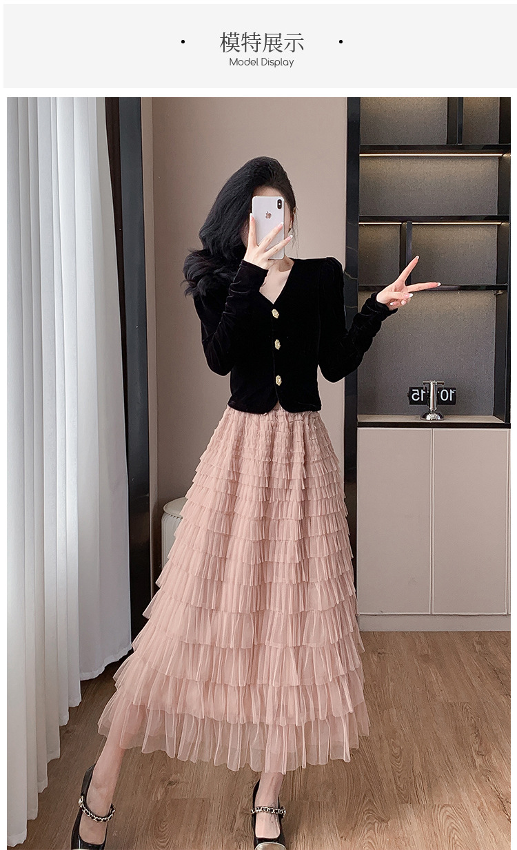 Bộ trang phục hai mảnh này mang nét đẹp cổ điển, lấy cảm hứng từ phong cách thời trang châu Âu xưa. Áo được may từ chất liệu nhung mềm mại, tạo cảm giác dễ chịu khi mặc. Đi kèm là chiếc váy dài qua gối có phần viền kết hợp lưới mỏng, tăng thêm vẻ nữ tính và duyên dáng. Bộ trang phục phù hợp để đi làm, dự tiệc nhẹ hoặc gặp mặt bạn bè. Có thể giặt tay nhẹ nhàng và phơi nơi thoáng mát để giữ form áo được bền đẹp. | Tên sản phẩm: Đồ Bộ Nữ Lưới Mỏng Cả Bộ 2 Món Hàng Mùa Xuân Thu Đông Phục Cổ Cổ Điển - Thời Trang Nữ | Mã sản phẩm: B3347 - Giá: 1.030.000đ | Mã nhà sản xuất: ZHOUT-G03Hình ảnh sản phẩm