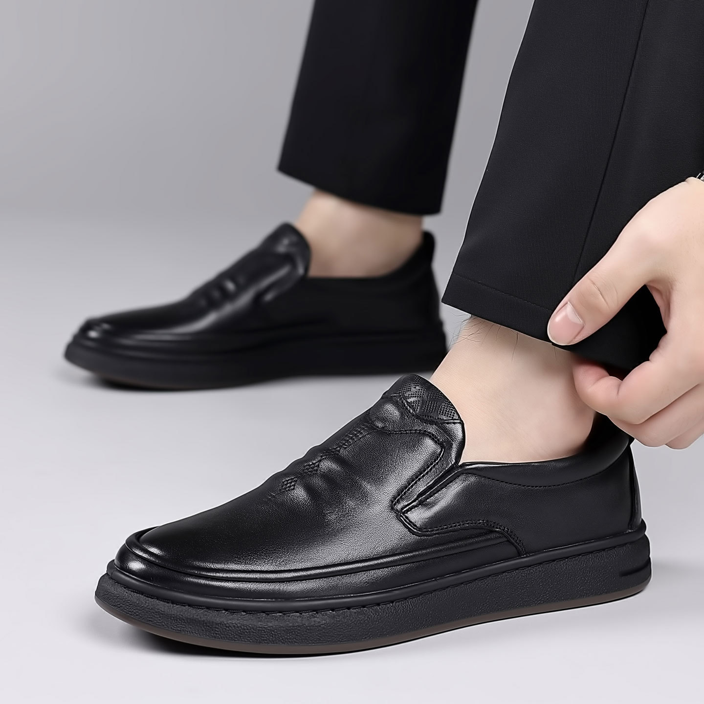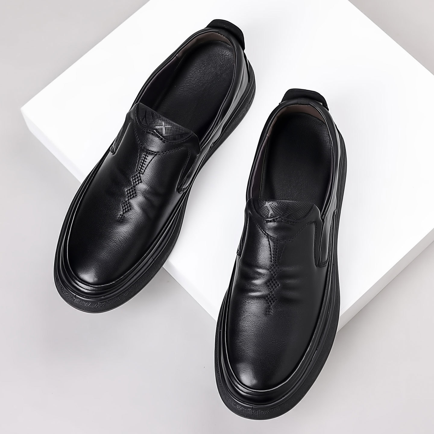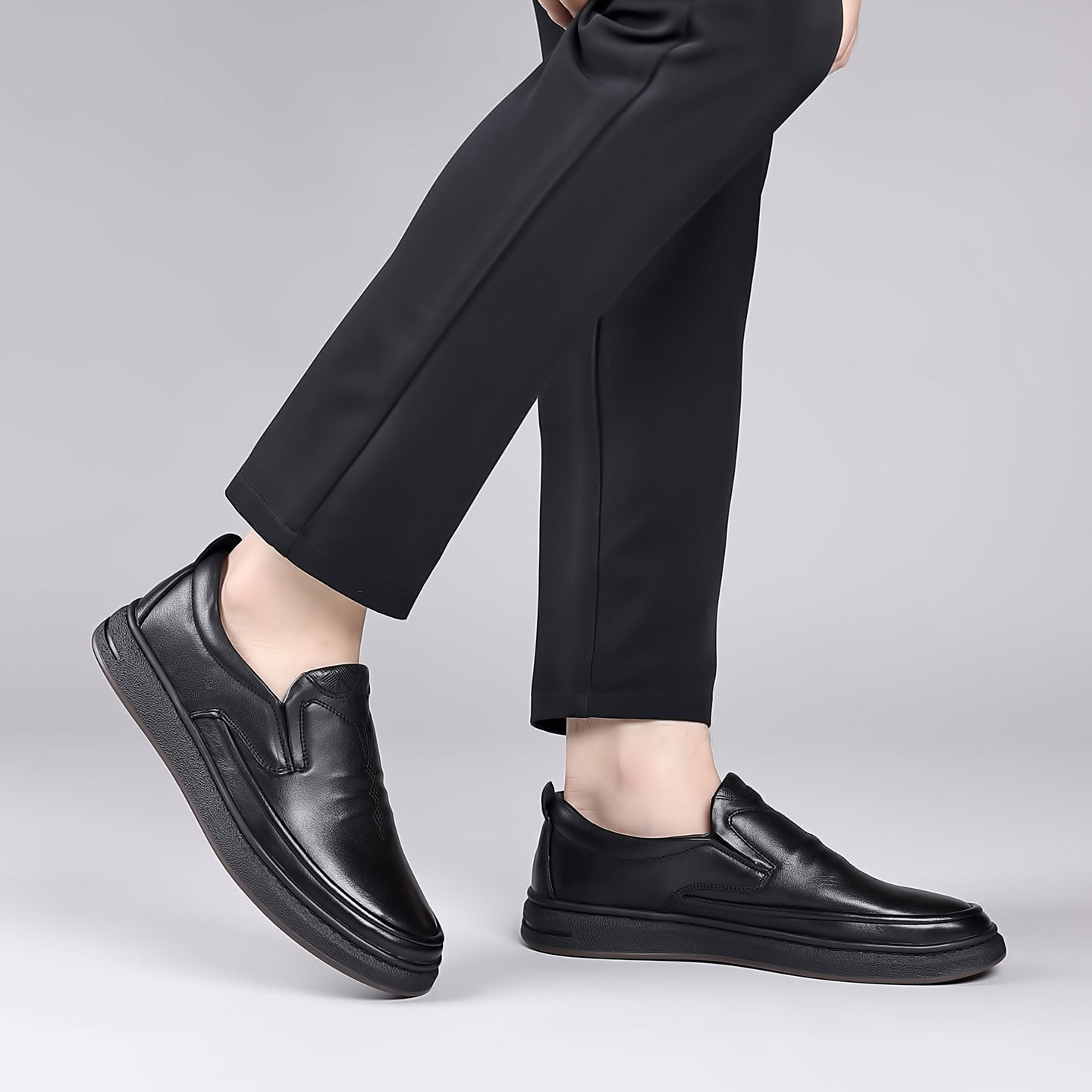 Giày tây dành cho nam, kiểu dáng thoải mái phù hợp đi làm hay dạo phố. Sản phẩm được làm từ chất liệu da thật bền đẹp, kiểu dáng cổ điển với đế dày vừa phải. Đặc biệt, giày thiết kế dạng không dây, chỉ cần xỏ chân vào là đi được ngay, rất tiện lợi và nhanh chóng. Phù hợp cho các quý ông trung niên ưa thích sự đơn giản và lịch lãm. | Tên sản phẩm: Giày Da Nam Chất Liệu Da Bò Đế Cao Hàng Mùa Xuân Thu Đông Trung Niên - Giày Dép Nam | Mã sản phẩm: B3355 - Giá: 1.000.000đ | Mã nhà sản xuất: WEDS-G03Hình ảnh sản phẩm
