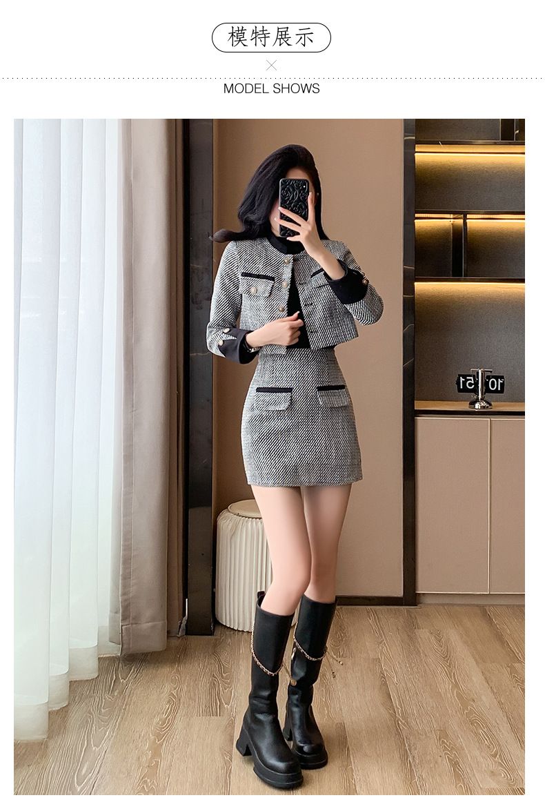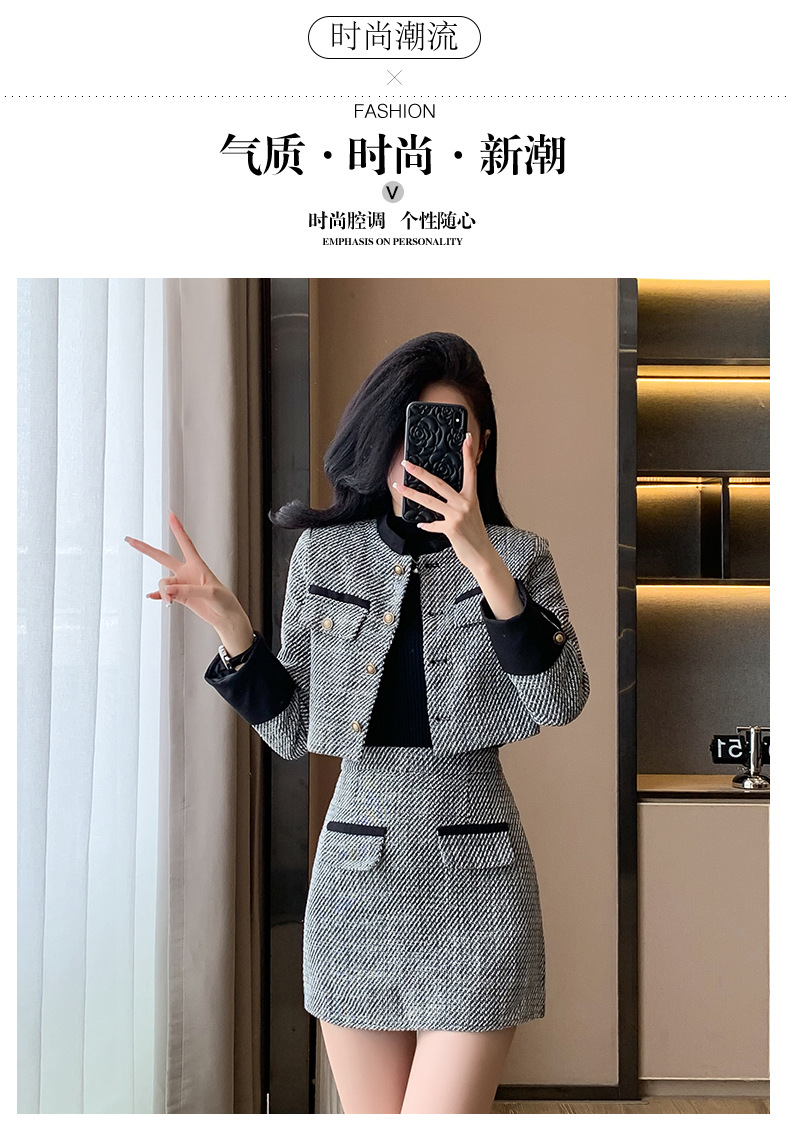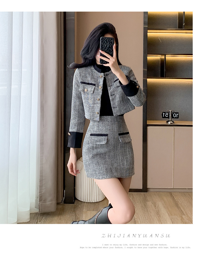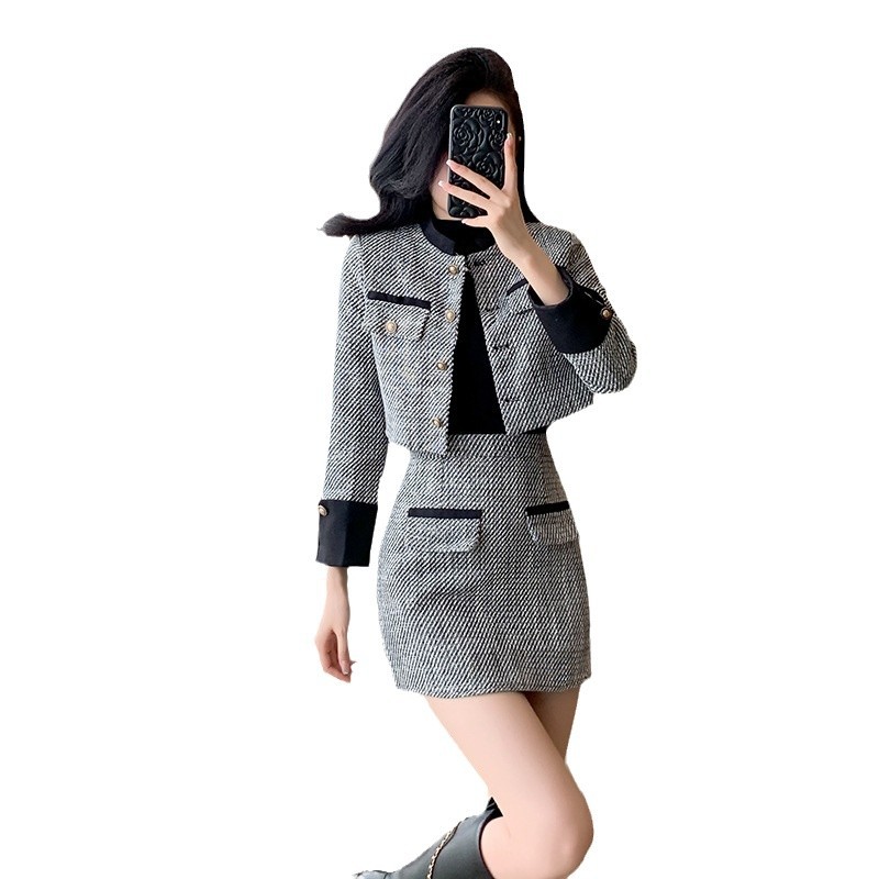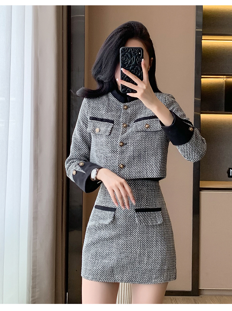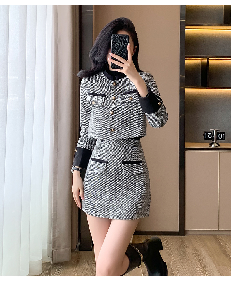 Bộ trang phục hai mảnh này gồm áo khoác kiểu ngắn và chân váy dáng dài, mang đến vẻ ngoại hình trẻ trung và hợp thời. Chất liệu vải mềm mại giúp giữ ấm tốt cho những ngày thu đông. Kiểu dáng dễ mặc, phù hợp cho nhiều dịp đi làm hay gặp gỡ bạn bè. Bạn có thể mặc nguyên bộ để đồng bộ hoặc phối cùng quần jeans, áo thun tùy thích. | Tên sản phẩm: Áo Khoác Nữ Cả Bộ 2 Món Trông Trẻ Hơn Tuổi Hàng Mùa Xuân Thu Đông - Thời Trang Nữ | Mã sản phẩm: B3392 - Giá: 1.190.000đ | Mã nhà sản xuất: ZHOUT-G04Hình ảnh sản phẩm
