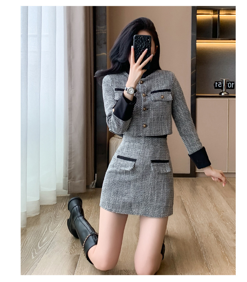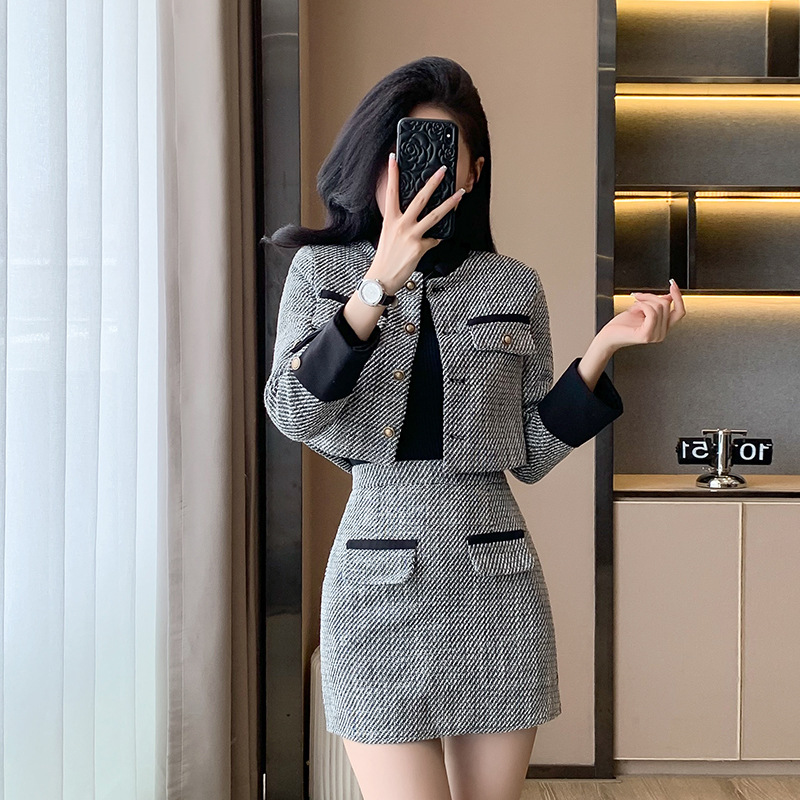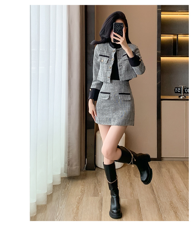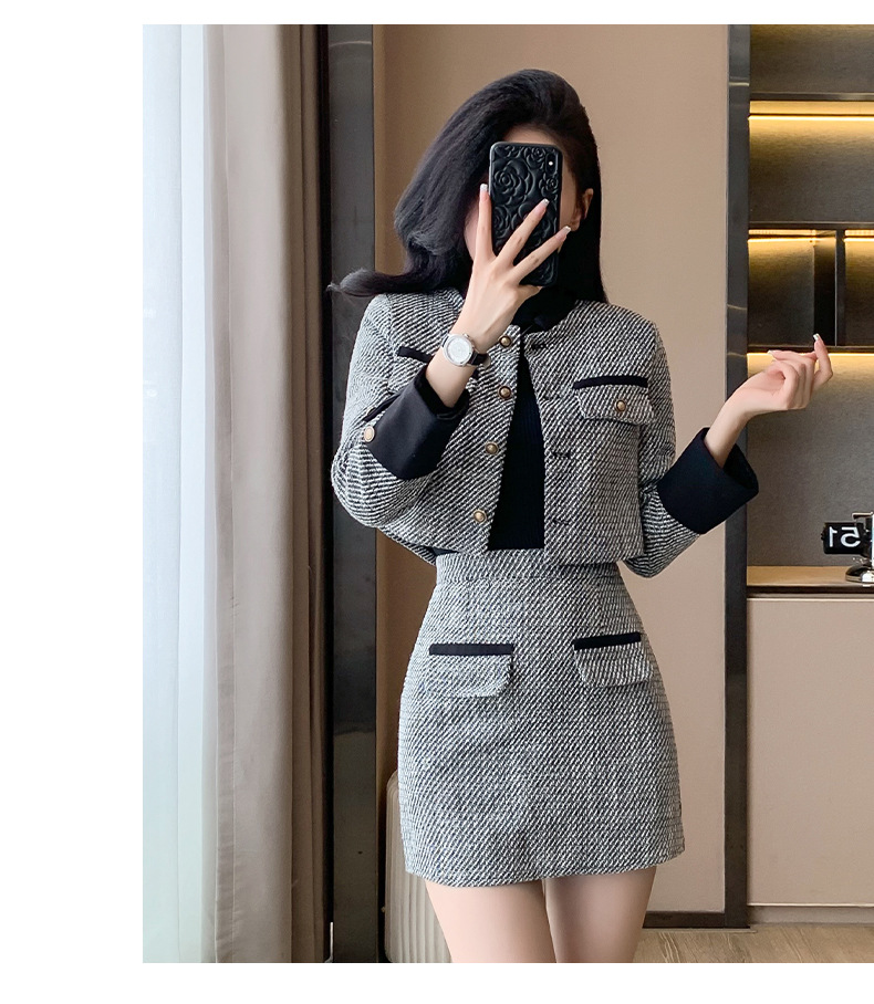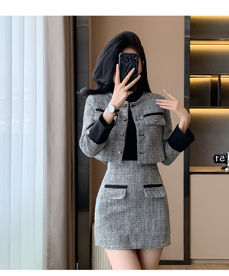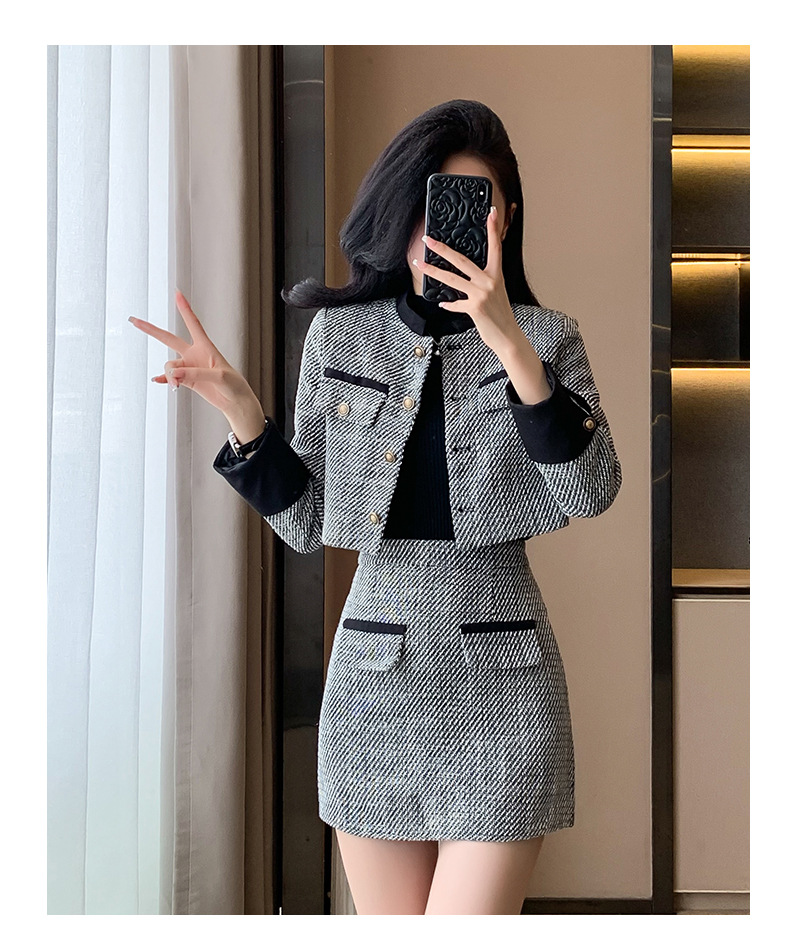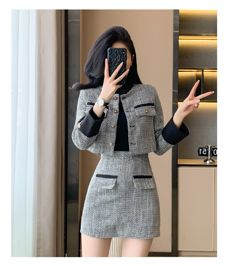 Bộ trang phục hai mảnh này gồm áo khoác kiểu ngắn và chân váy dáng dài, mang đến vẻ ngoại hình trẻ trung và hợp thời. Chất liệu vải mềm mại giúp giữ ấm tốt cho những ngày thu đông. Kiểu dáng dễ mặc, phù hợp cho nhiều dịp đi làm hay gặp gỡ bạn bè. Bạn có thể mặc nguyên bộ để đồng bộ hoặc phối cùng quần jeans, áo thun tùy thích. | Tên sản phẩm: Áo Khoác Nữ Cả Bộ 2 Món Trông Trẻ Hơn Tuổi Hàng Mùa Xuân Thu Đông - Thời Trang Nữ | Mã sản phẩm: B3392 - Giá: 1.190.000đ | Mã nhà sản xuất: ZHOUT-G04Hình ảnh sản phẩm