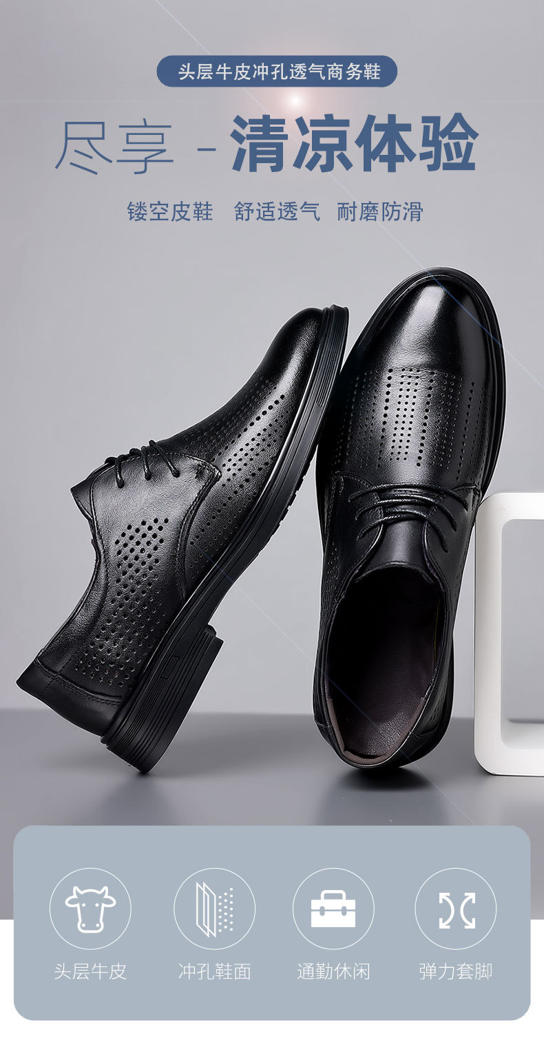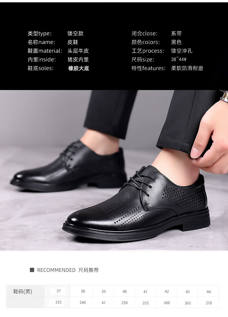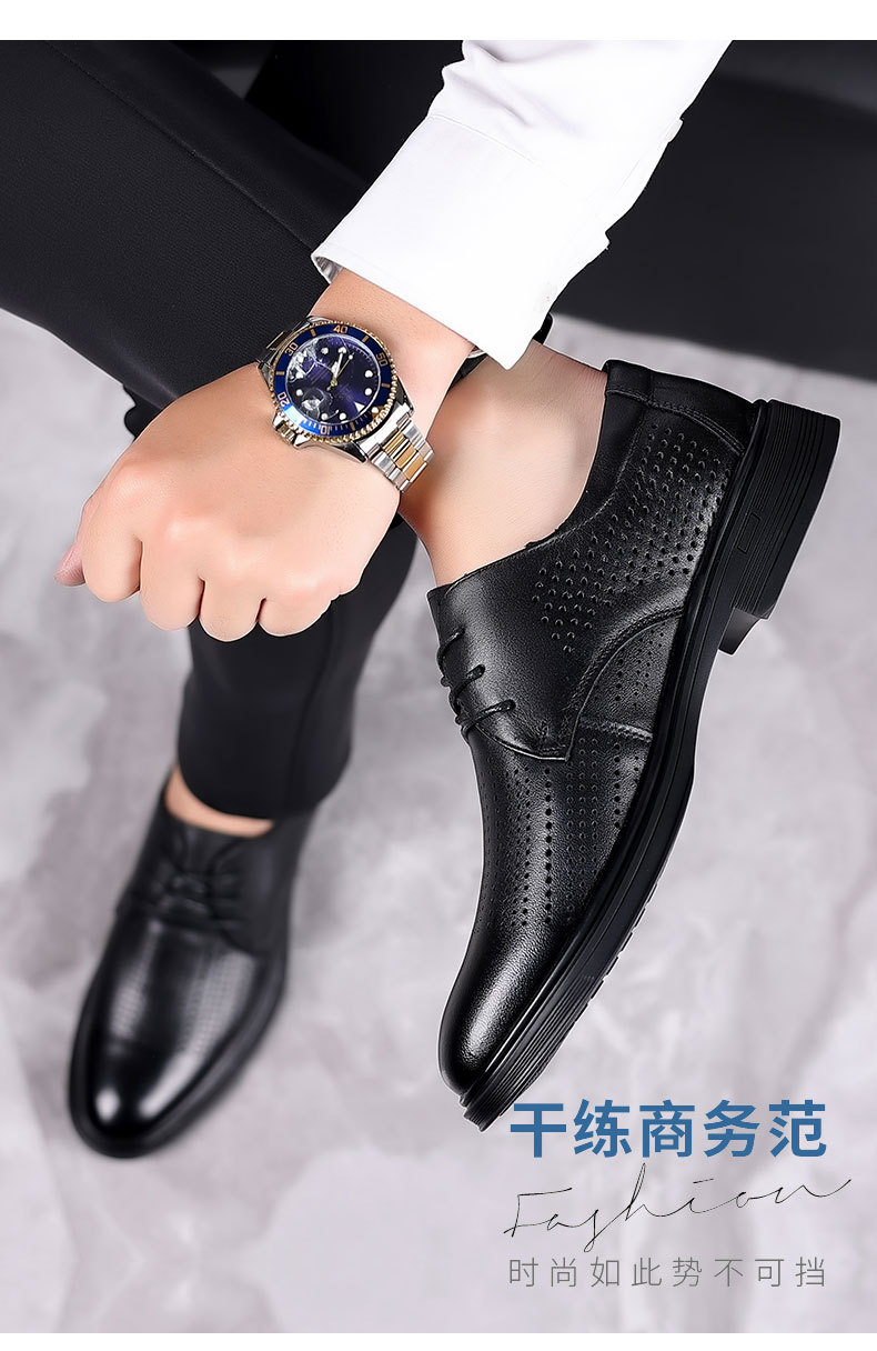 Giày da thật dành cho nam, thiết kế với những lỗ thông hơi tinh tế giúp đôi chân luôn khô thoáng trong những ngày hè oi bức. Kiểu dáng lịch sự phù hợp khi làm việc hay trong các dịp quan trọng. Sản phẩm được làm từ chất liệu da bò mềm mại, bền đẹp. Mang giày kết hợp cùng tất và trang phục phù hợp để tạo nên vẻ ngoài chỉn chu. | Tên sản phẩm: Giày Da Nam Chất Liệu Da Bò Thoáng Khí Hàng Mùa Hè Dùng Trong Lễ Cưới - Giày Dép Nam | Mã sản phẩm: B3395 - Giá: 980.000đ | Mã nhà sản xuất: WEDS-G03Hình ảnh sản phẩm