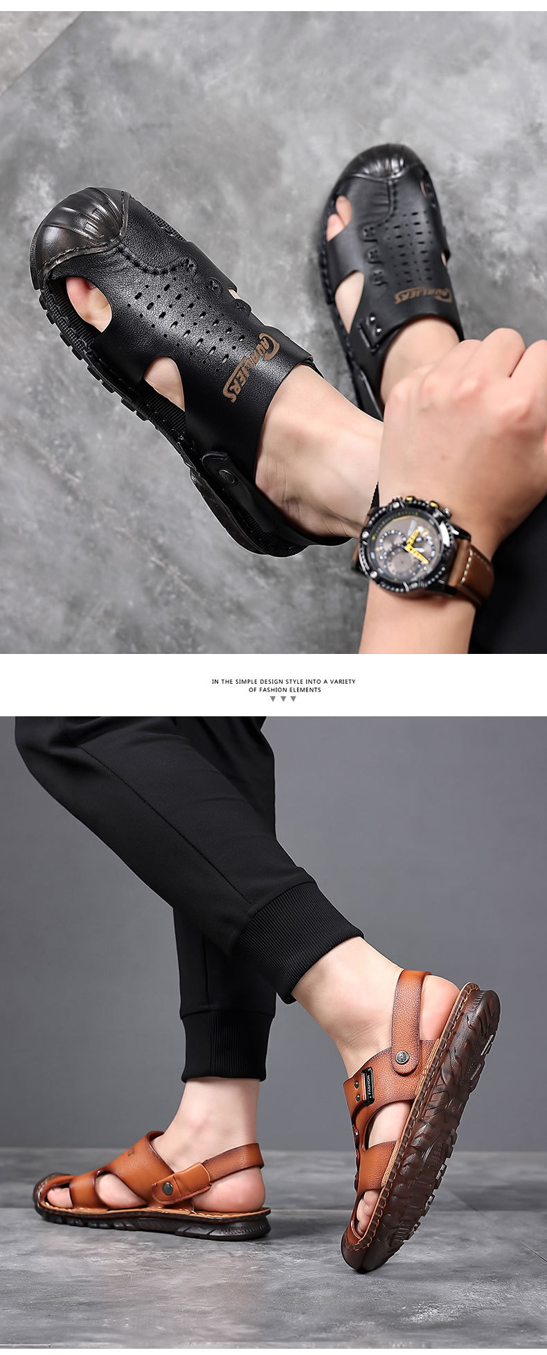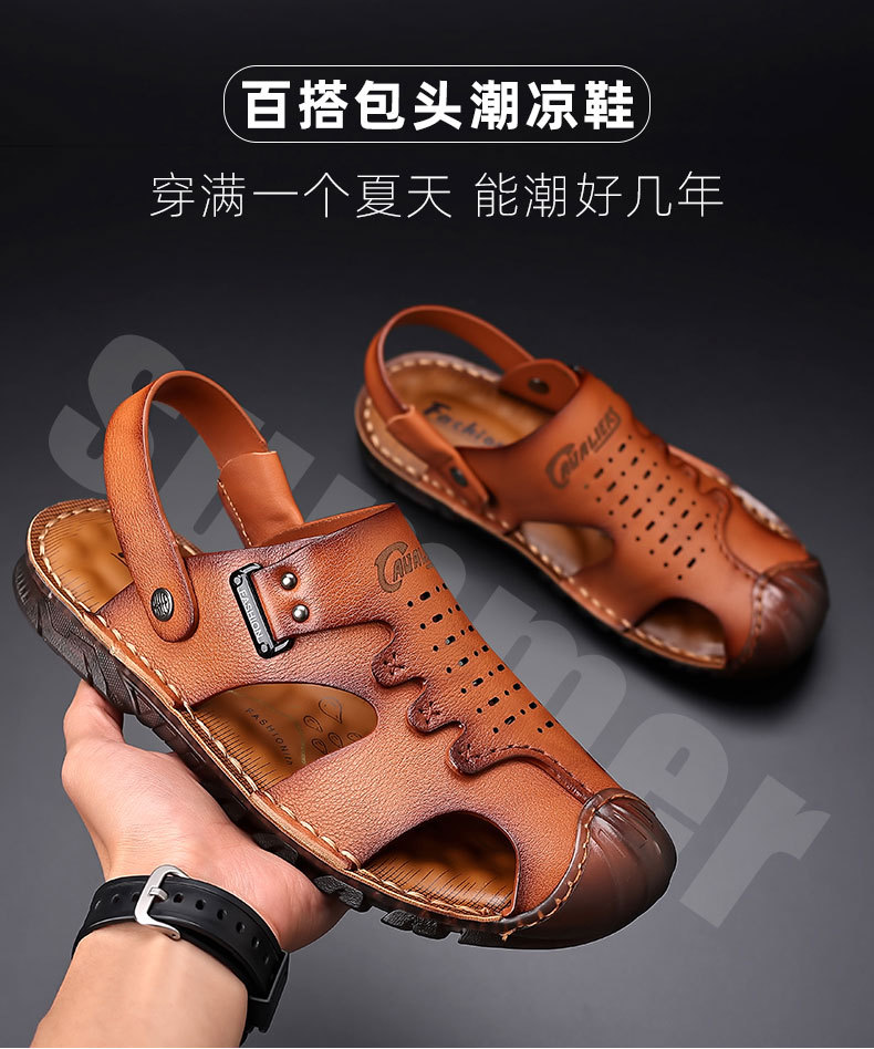Dép đi biển nam thiết kế kín mũi, được làm từ chất liệu da thật tự nhiên, mang lại cảm giác thoải mái và bền bỉ. Kiểu dáng dép qu hậu giúp cố định chắc chắn, phù hợp cho các hoạt động thường ngày hoặc dạo biển. Sản phẩm có các lỗ thông hơi nhỏ tăng độ thoáng mát. Chỉ cần xỏ chân vào và điều chỉnh qu dép cho vừa vặn là có thể sử dụng ngay. | Tên sản phẩm: Giày Dép Sandal Nam Chất Liệu Da Bò Hàng Mùa Hè - Giày Dép Nam | Mã sản phẩm: B3399 - Giá: 780.000đ | Mã nhà sản xuất: WEDS-G02Hình ảnh sản phẩm