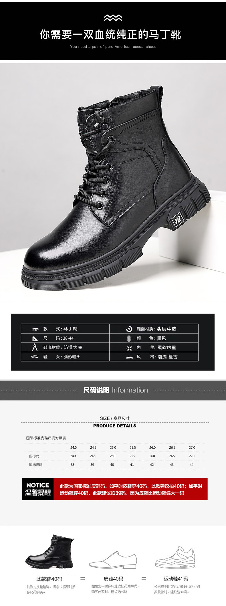 Đôi bốt cổ cao này được làm từ lớp da thật bên ngoài, mang đến vẻ ngoài cá tính và bền bỉ. Kiểu dáng phù hợp cho các hoạt động thường ngày, kết hợp cùng lớp lót ấm bên trong giúp giữ ấm đôi chân trong thời tiết lạnh. Sản phẩm có thiết kế cổ điển, dễ dàng phối với nhiều loại trang phục. Bạn chỉ cần xỏ giày và buộc dây thật chặt để có cảm giác thoải mái và vững chãi khi di chuyển. | Tên sản phẩm: Giày Boot Martin Nam Chất Liệu Da Bò Hàng Mùa Xuân Thu Đông - Giày Dép Nam | Mã sản phẩm: B3407 - Giá: 1.240.000đ | Mã nhà sản xuất: WEDS-G04Hình ảnh sản phẩm