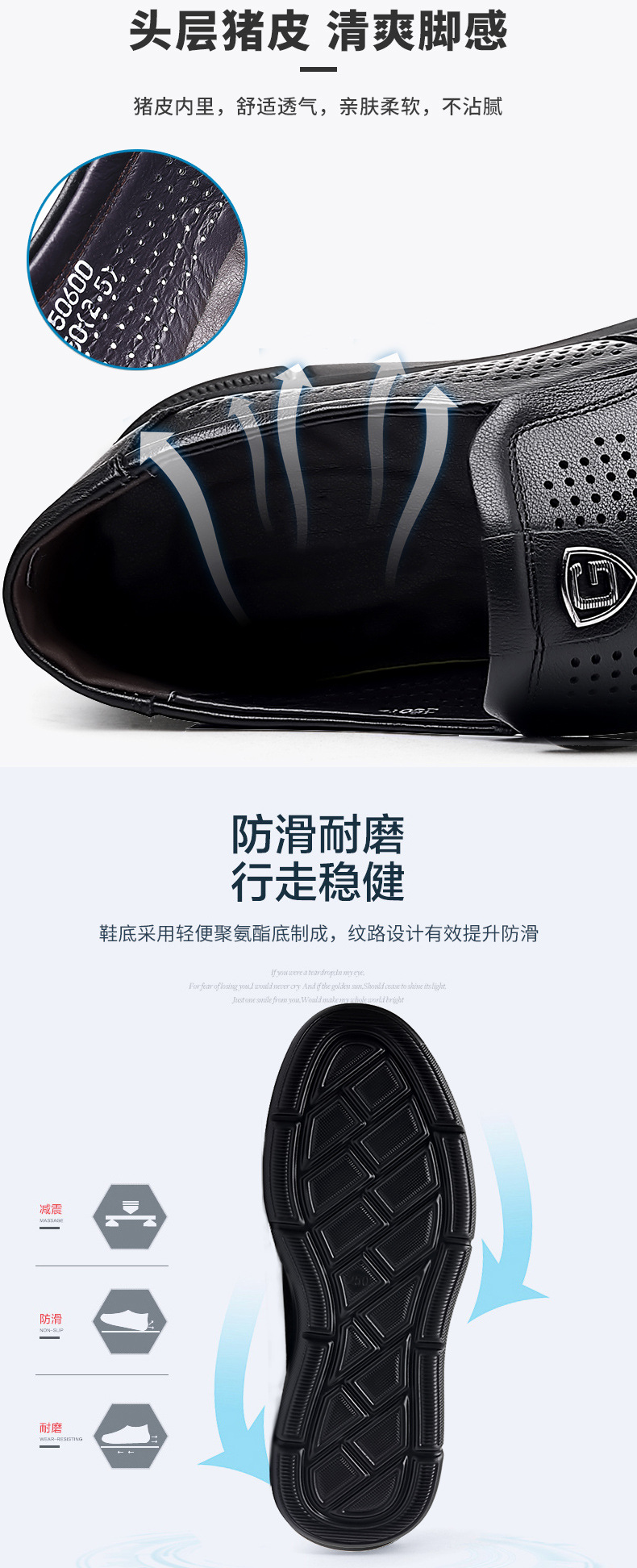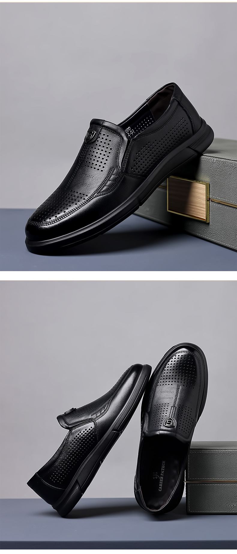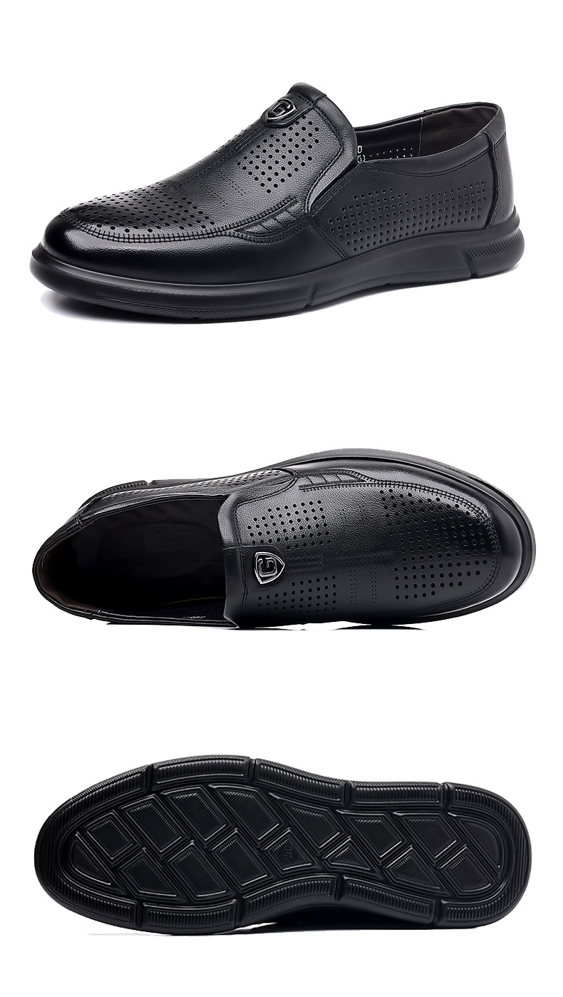Giày nam thiết kế dạng xỏ chân tiện lợi, phù hợp cho cả công sở và dạo phố. Sản phẩm được làm từ chất liệu da thật tự nhiên, bề mặt có các lỗ thông hơi nhỏ giúp mang thoáng mát suốt ngày dài. Kiểu dáng thanh lịch kết hợp với đế nhẹ tạo cảm giác dễ chịu khi di chuyển. Bạn chỉ cần xỏ chân vào là có thể sử dụng ngay, rất thuận tiện cho các hoạt động thường nhật. | Tên sản phẩm: Giày Dép Sandal Nam Chất Liệu Da Bò - Giày Dép Nam | Mã sản phẩm: B3416 - Giá: 980.000đ | Mã nhà sản xuất: WEDS-G03Hình ảnh sản phẩm