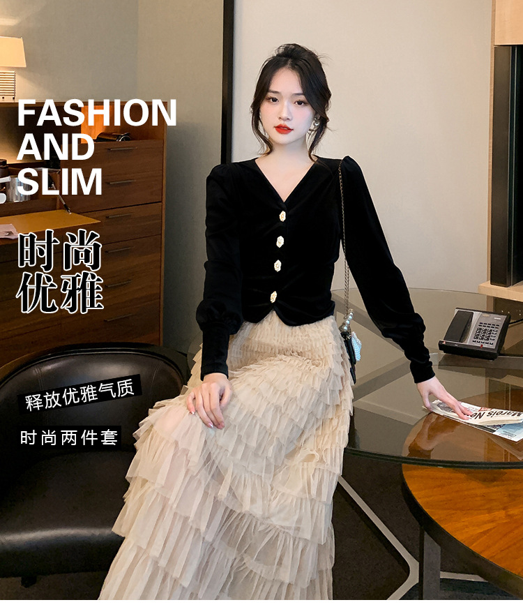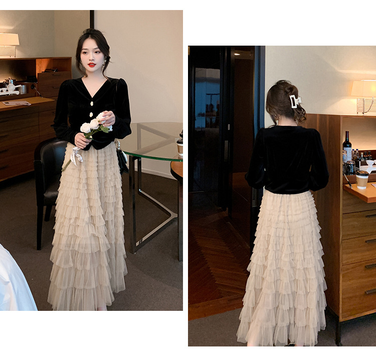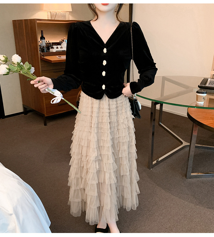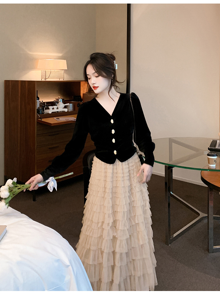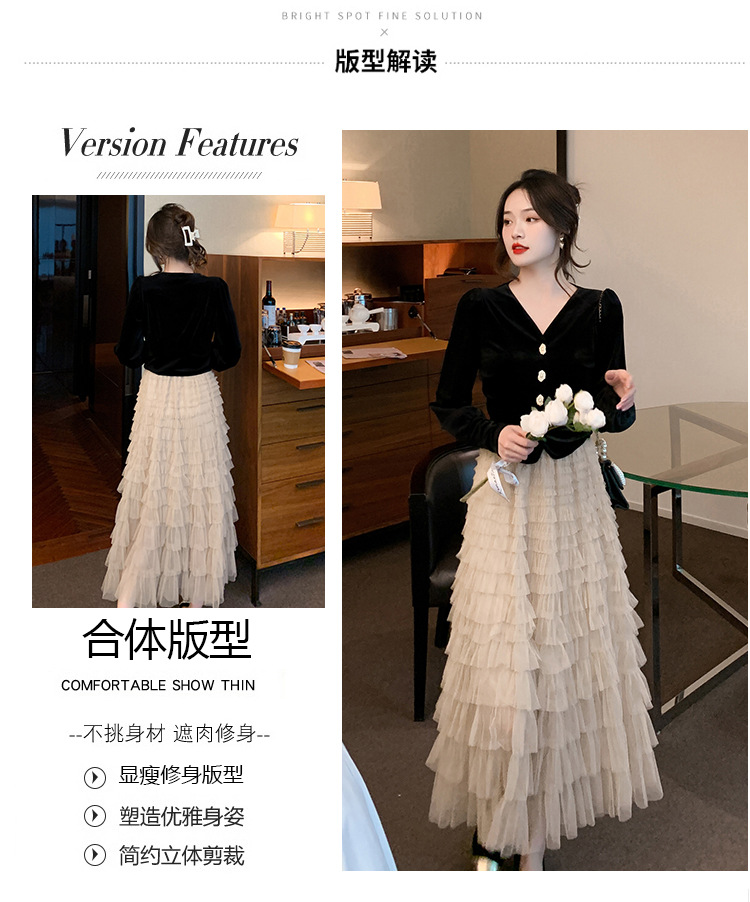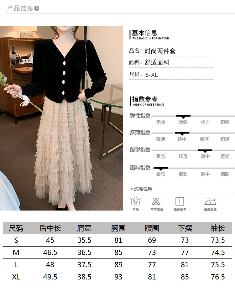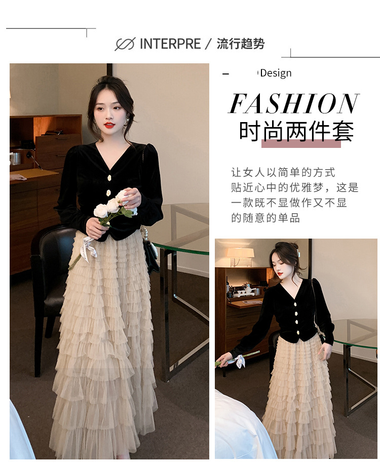 Bộ trang phục nữ tính này gồm áo và váy mặc cùng nhau rất tiện lợi. Áo kiểu cổ chữ V, tay dài, được may từ chất liệu vải mềm mại có ánh lụa. Váy xòe dài qua gối, thiết kế nhiều tầng xếp lớp như bánh ngọt, tạo dáng điệu đà. Bộ trang phục này phù hợp cho những dịp đi làm, gặp mặt bạn bè. Có thể mặc nguyên bộ hoặc phối cùng các loại áo, váy khác để đa dạng phong cách. | Tên sản phẩm: Đồ Bộ Nữ Cả Bộ 2 Món Cổ Chữ V Hàng Mùa Xuân Thu Đông - Thời Trang Nữ | Mã sản phẩm: B3418 - Giá: 510.000đ | Mã nhà sản xuất: ZHOUT-G01Hình ảnh sản phẩm
