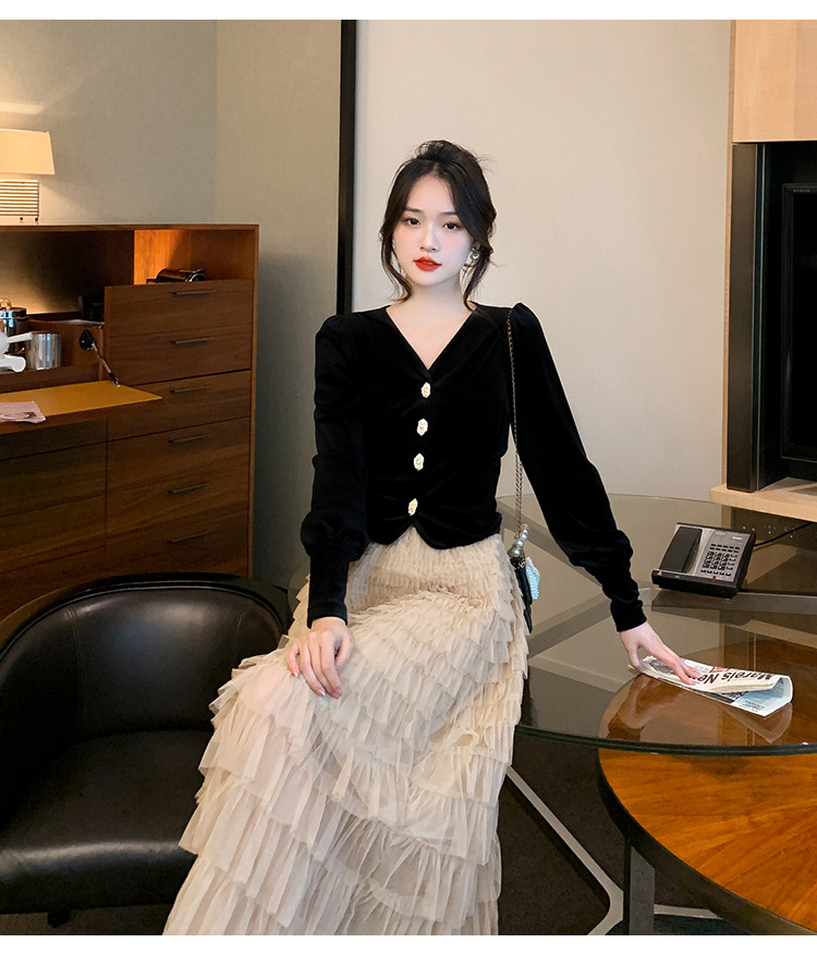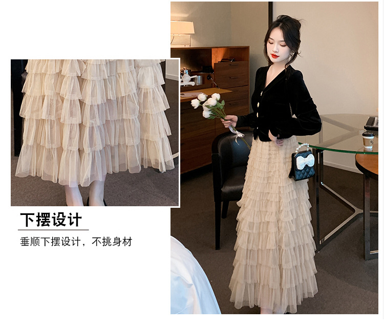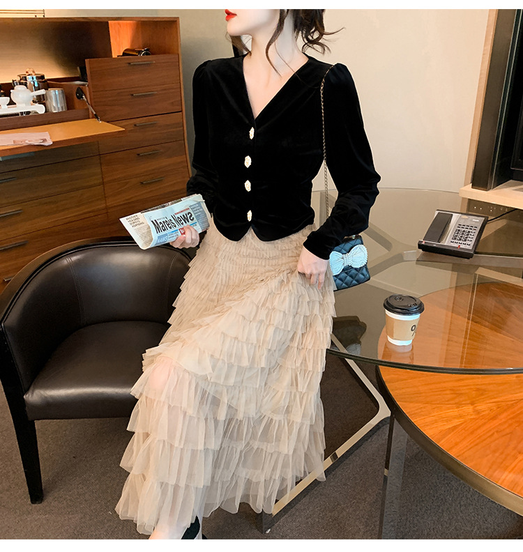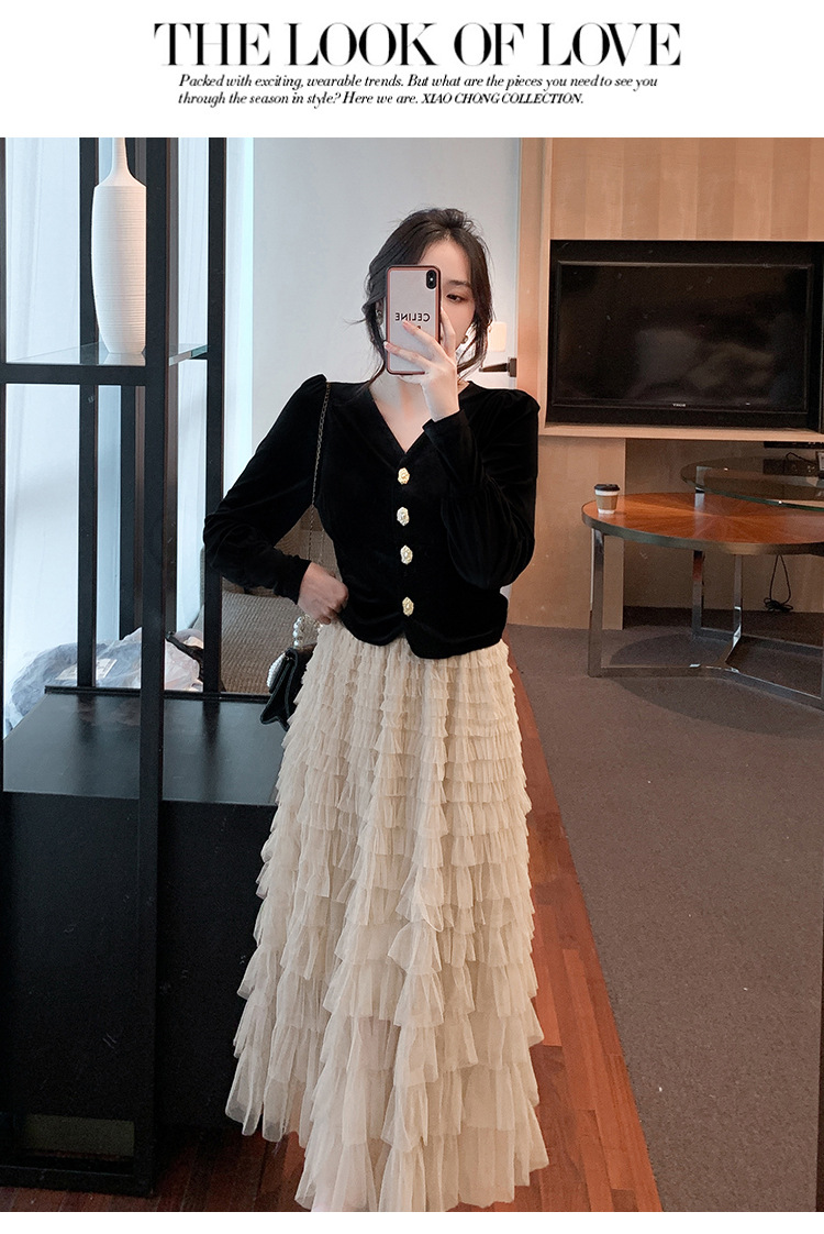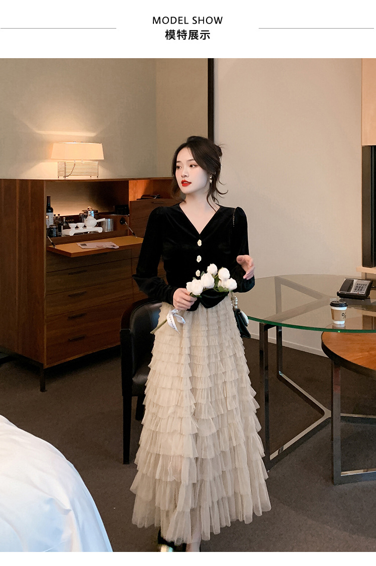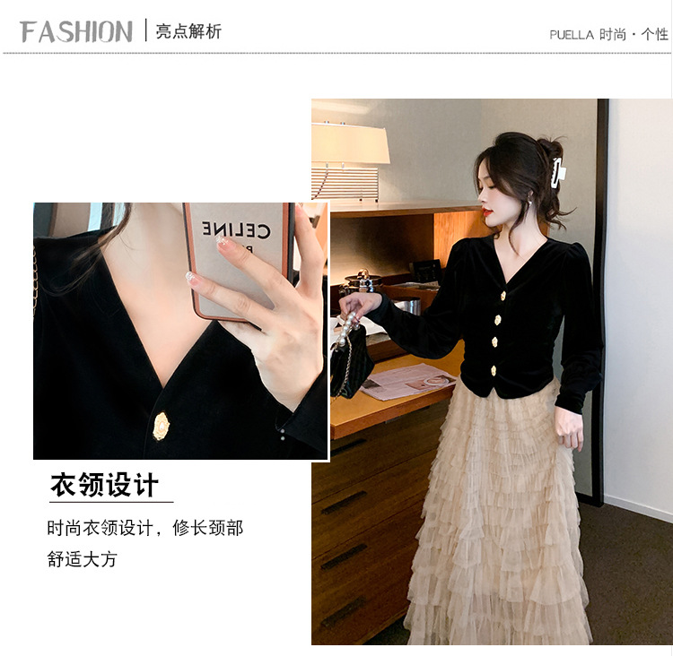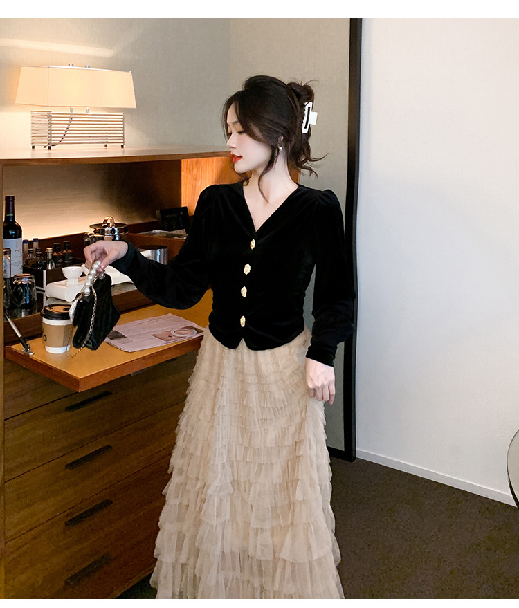 Bộ trang phục nữ tính này gồm áo và váy mặc cùng nhau rất tiện lợi. Áo kiểu cổ chữ V, tay dài, được may từ chất liệu vải mềm mại có ánh lụa. Váy xòe dài qua gối, thiết kế nhiều tầng xếp lớp như bánh ngọt, tạo dáng điệu đà. Bộ trang phục này phù hợp cho những dịp đi làm, gặp mặt bạn bè. Có thể mặc nguyên bộ hoặc phối cùng các loại áo, váy khác để đa dạng phong cách. | Tên sản phẩm: Đồ Bộ Nữ Cả Bộ 2 Món Cổ Chữ V Hàng Mùa Xuân Thu Đông - Thời Trang Nữ | Mã sản phẩm: B3418 - Giá: 510.000đ | Mã nhà sản xuất: ZHOUT-G01Hình ảnh sản phẩm