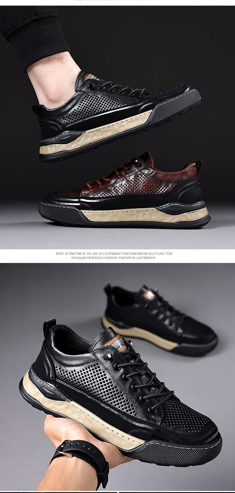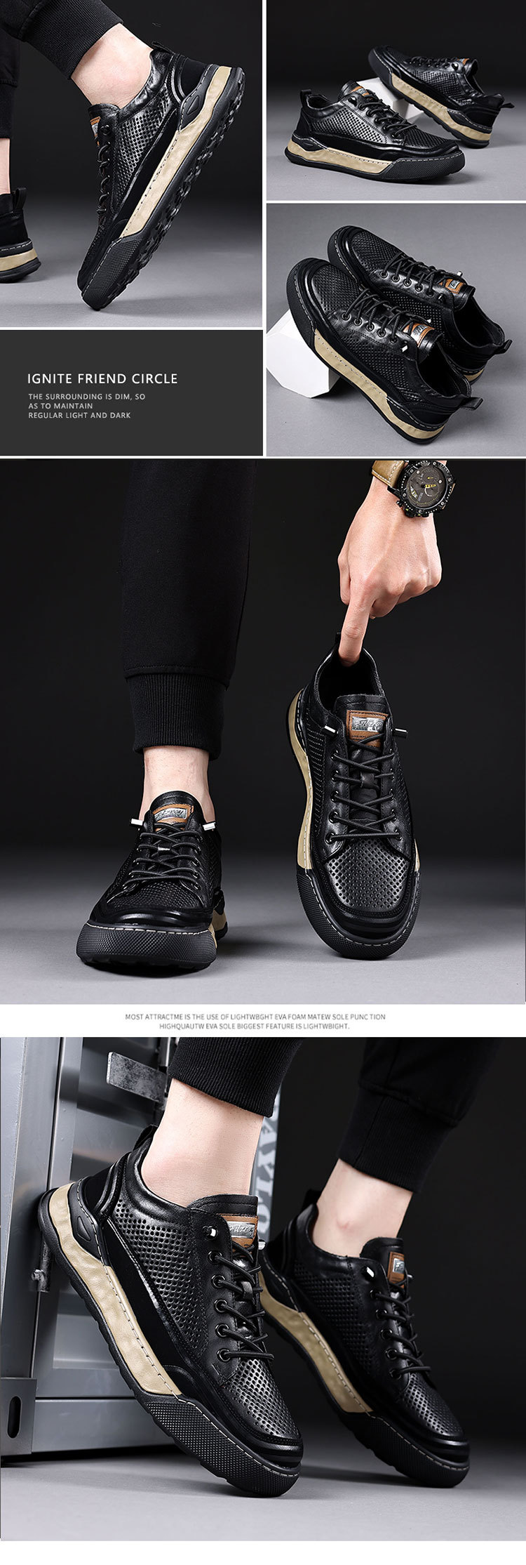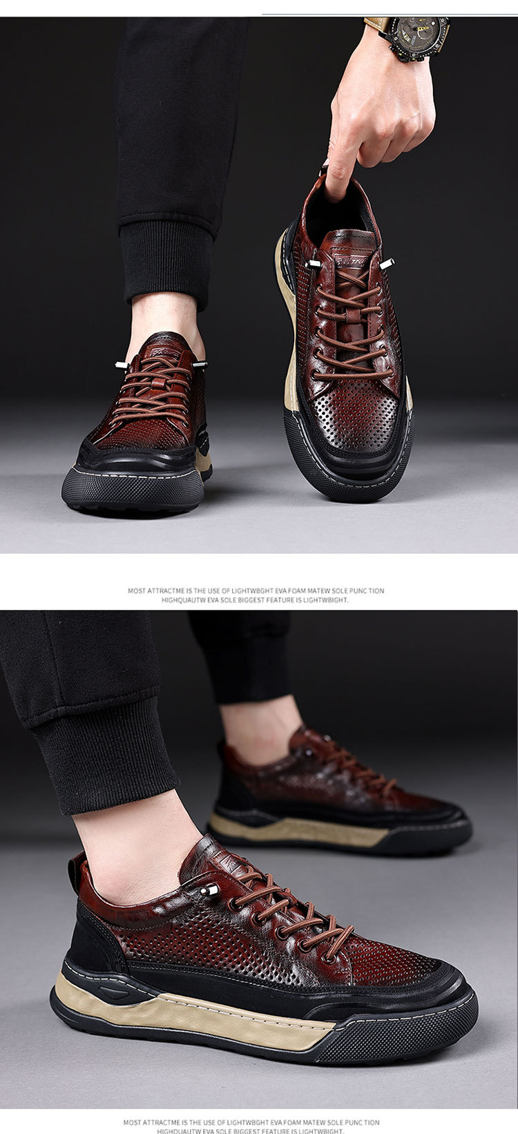 Đôi giày này được làm từ chất liệu da thật, mang đến cảm giác thoải mái và bền lâu. Kiểu dáng kết hợp giữa giày thể thao năng động và giày lười thoáng khí, đặc biệt phù hợp cho mùa hè. Thiết kế có các lỗ thông hơi giúp đôi chân luôn khô ráo, dễ chịu. Bạn có thể dùng nó cho các hoạt động hằng ngày, đi làm nhẹ nhàng hay dạo phố. Màu đen dễ dàng phối hợp với nhiều loại trang phục khác nhau. | Tên sản phẩm: Giày Da Nam Chất Liệu Da Bò Thoáng Khí Hàng Mùa Hè Phong Cách Trẻ Trung - Giày Dép Nam | Mã sản phẩm: B3431 - Giá: 1.050.000đ | Mã nhà sản xuất: WEDS-G03Hình ảnh sản phẩm