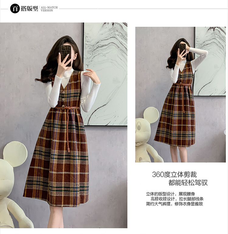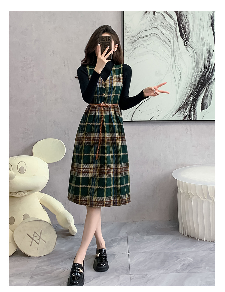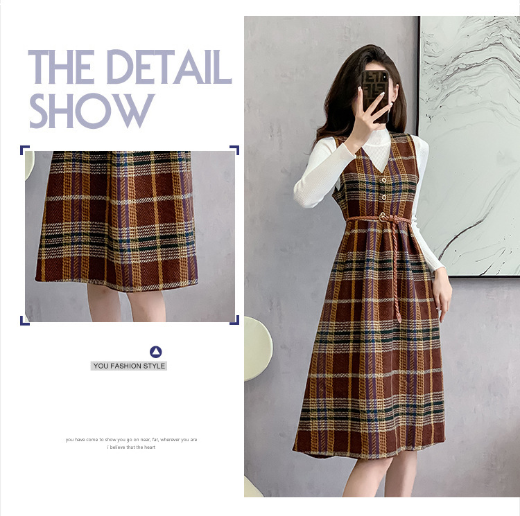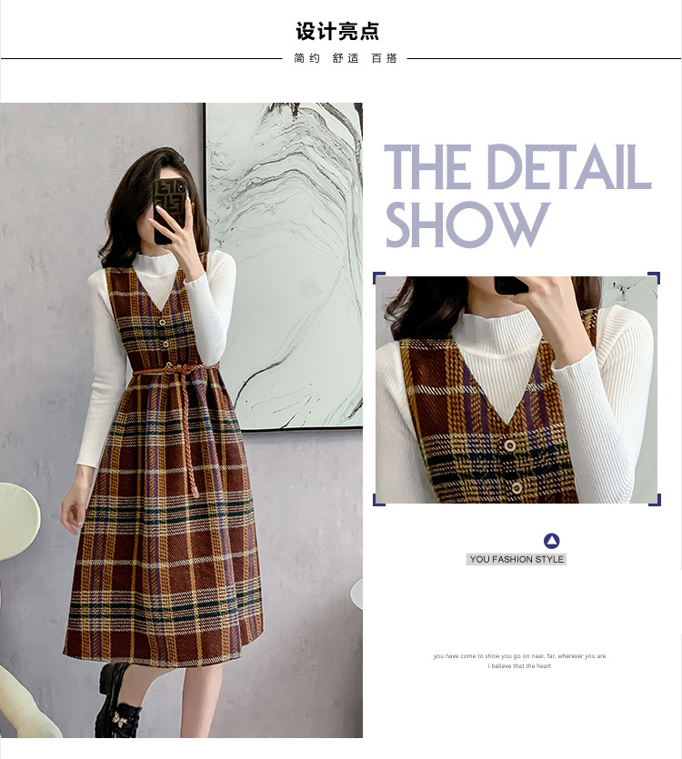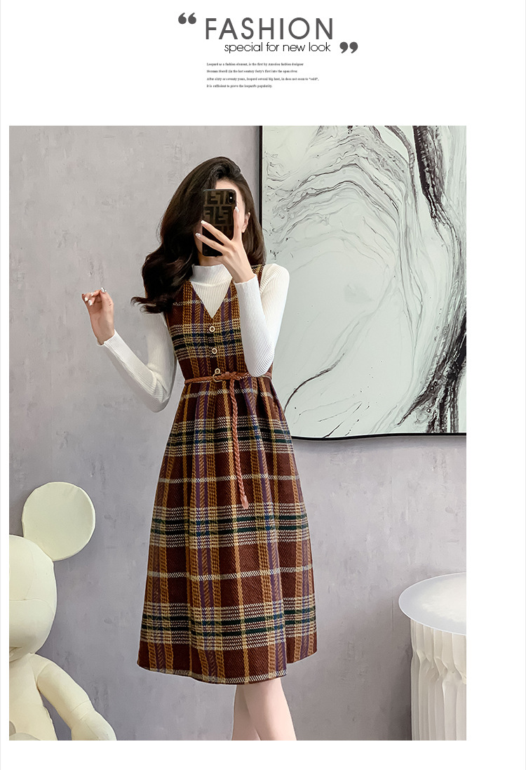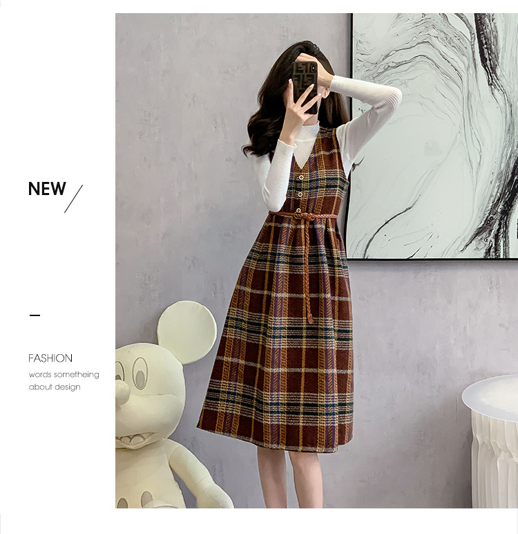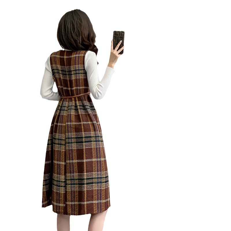Bộ trang phục hai mảnh này gồm áo len đan mềm mại và đầm yếm có họa tiết kẻ caro. Kiểu dáng mang nét đẹp thanh lịch, phù hợp cho những ngày thu đông. Bạn có thể mặc nguyên bộ để giữ ấm hoặc tách riêng từng món để phối đồ linh hoạt. Chất vải co giãn nhẹ tạo cảm giác dễ chịu khi mặc cả ngày dài. | Tên sản phẩm: Áo Len Nữ Áo Len Cả Bộ 2 Món Kẻ Caro Hàng Mùa Xuân Thu Đông - Thời Trang Nữ | Mã sản phẩm: B3437 - Giá: 880.000đ | Mã nhà sản xuất: ZHOUT-G03Hình ảnh sản phẩm