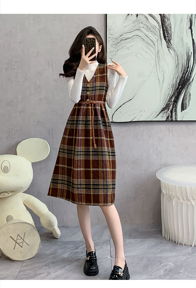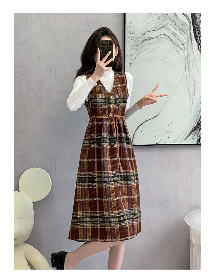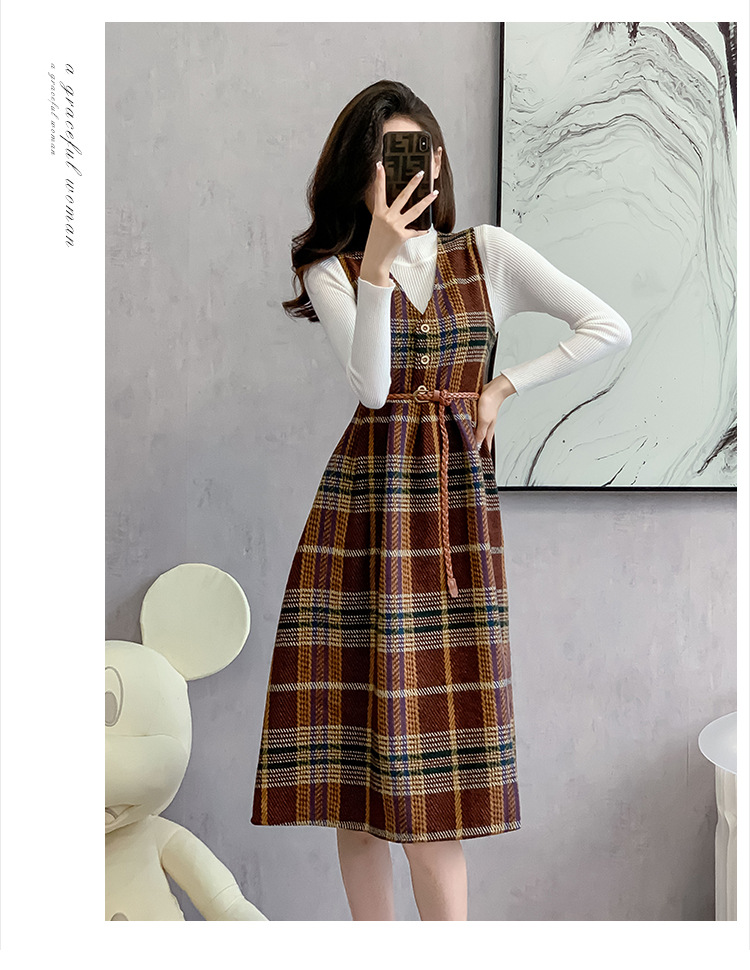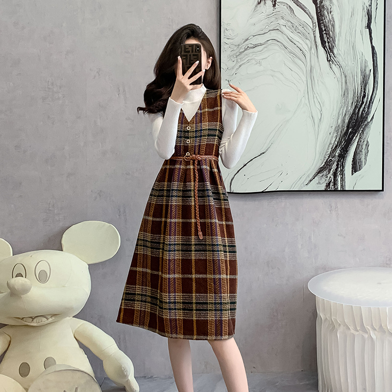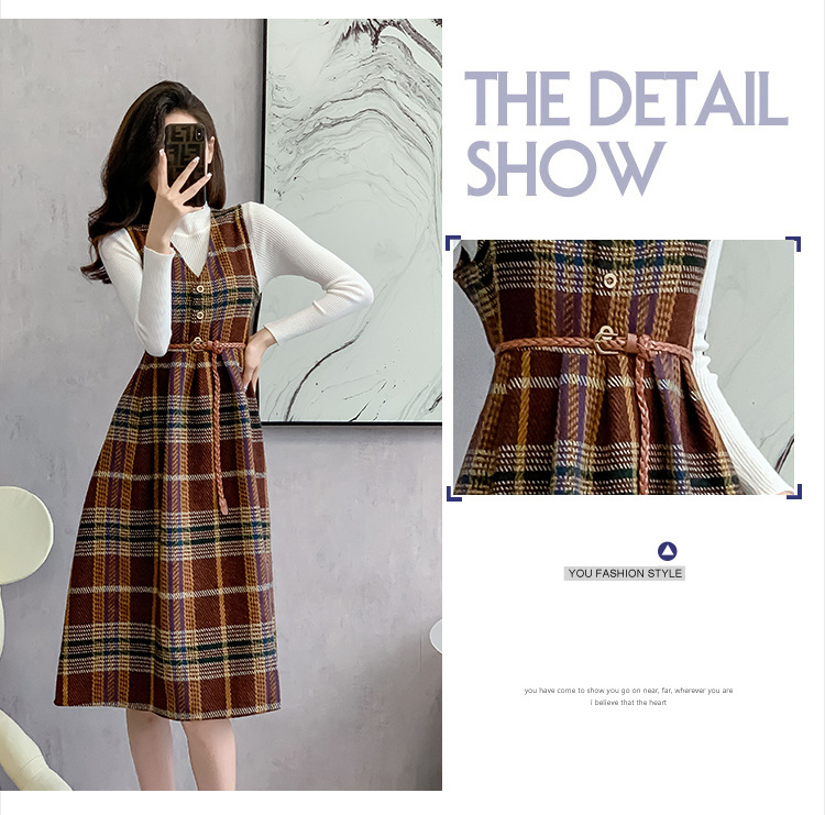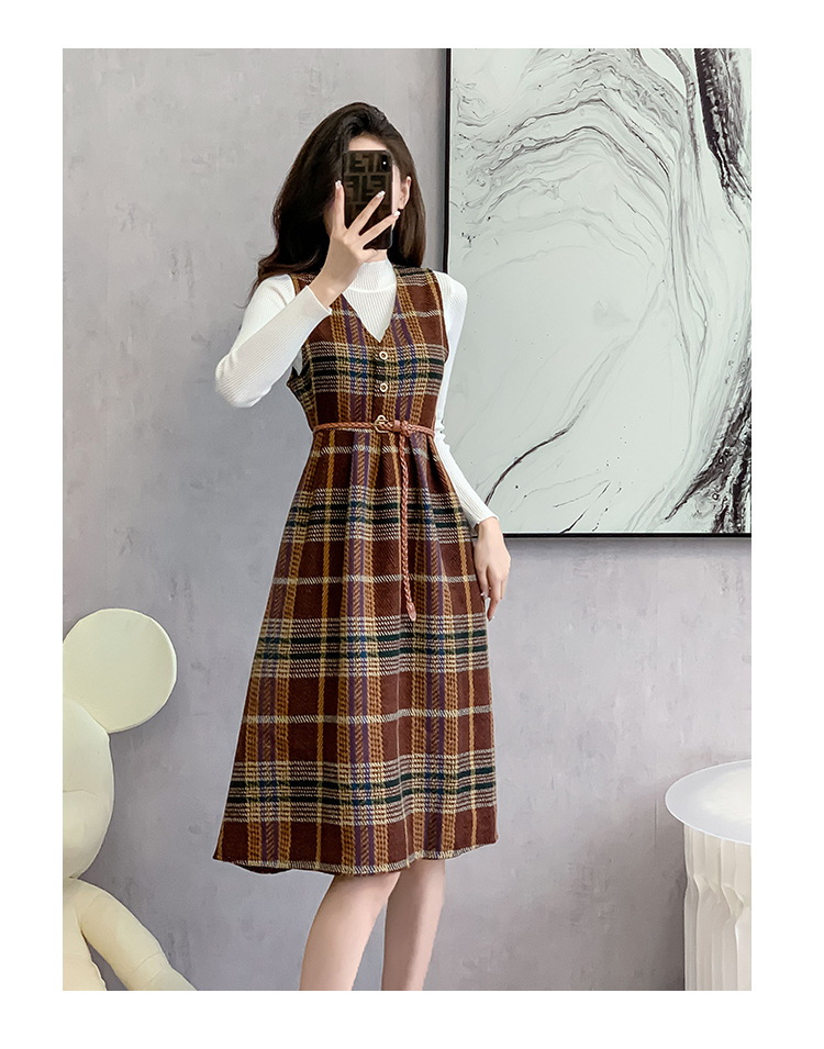 Bộ trang phục hai mảnh này gồm áo len đan mềm mại và đầm yếm có họa tiết kẻ caro. Kiểu dáng mang nét đẹp thanh lịch, phù hợp cho những ngày thu đông. Bạn có thể mặc nguyên bộ để giữ ấm hoặc tách riêng từng món để phối đồ linh hoạt. Chất vải co giãn nhẹ tạo cảm giác dễ chịu khi mặc cả ngày dài. | Tên sản phẩm: Áo Len Nữ Áo Len Cả Bộ 2 Món Kẻ Caro Hàng Mùa Xuân Thu Đông - Thời Trang Nữ | Mã sản phẩm: B3437 - Giá: 880.000đ | Mã nhà sản xuất: ZHOUT-G03Hình ảnh sản phẩm