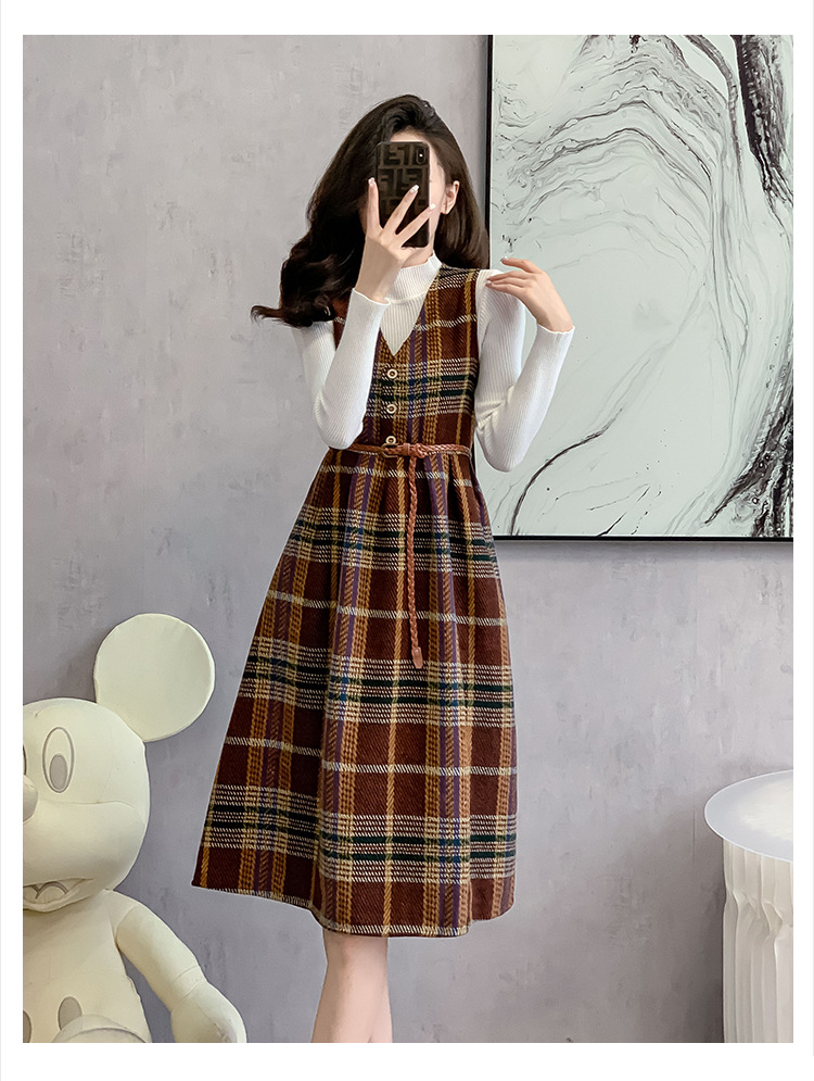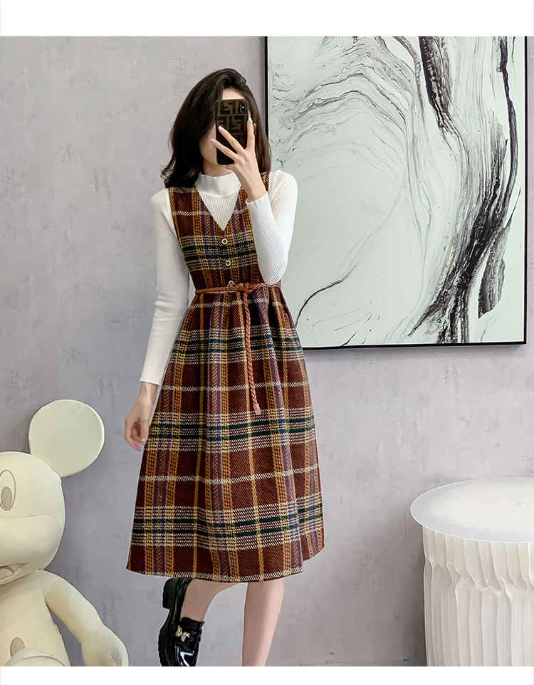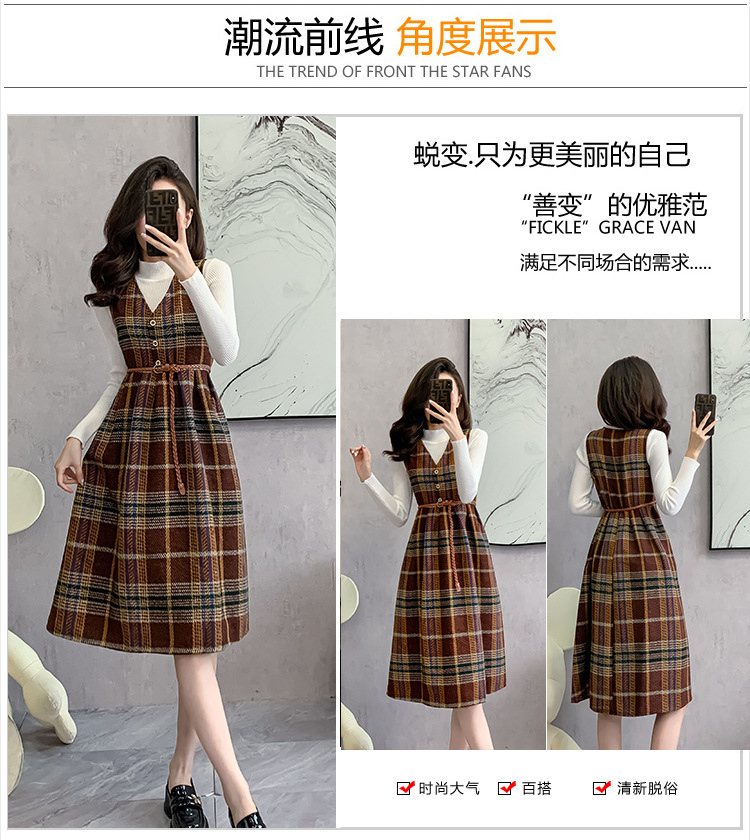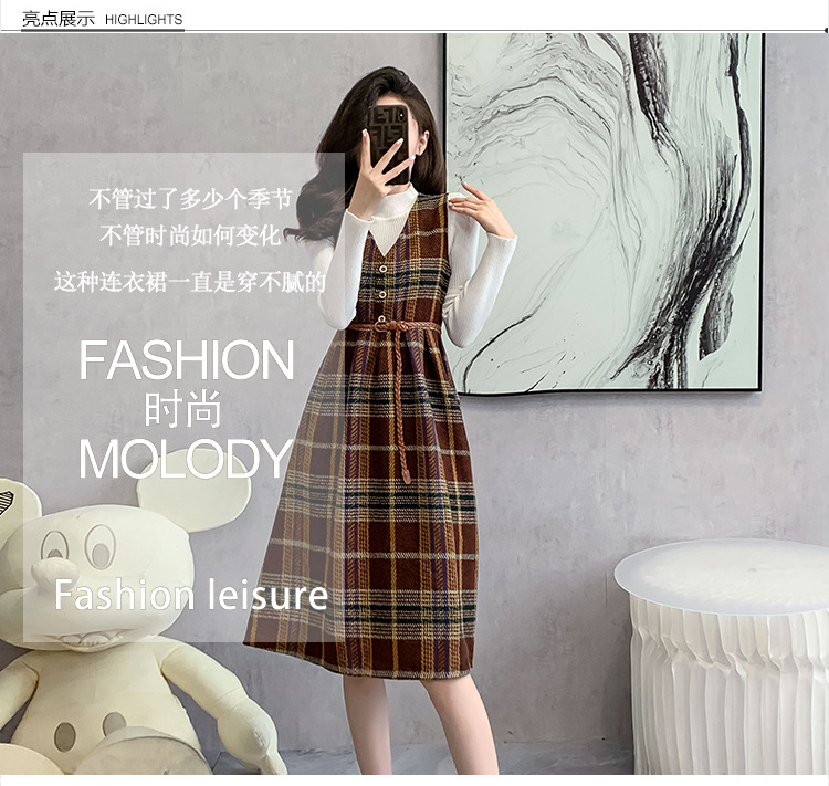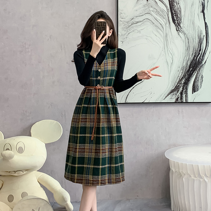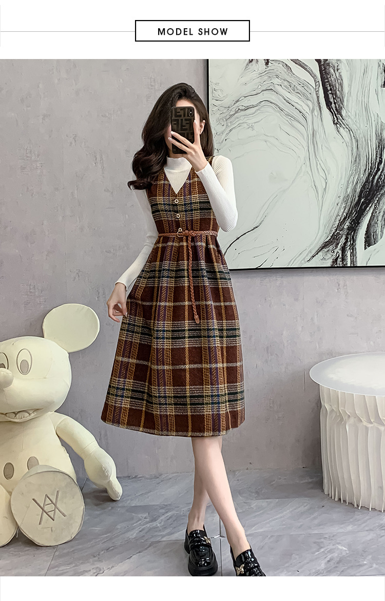 Bộ trang phục hai mảnh này gồm áo len đan mềm mại và đầm yếm có họa tiết kẻ caro. Kiểu dáng mang nét đẹp thanh lịch, phù hợp cho những ngày thu đông. Bạn có thể mặc nguyên bộ để giữ ấm hoặc tách riêng từng món để phối đồ linh hoạt. Chất vải co giãn nhẹ tạo cảm giác dễ chịu khi mặc cả ngày dài. | Tên sản phẩm: Áo Len Nữ Áo Len Cả Bộ 2 Món Kẻ Caro Hàng Mùa Xuân Thu Đông - Thời Trang Nữ | Mã sản phẩm: B3437 - Giá: 880.000đ | Mã nhà sản xuất: ZHOUT-G03Hình ảnh sản phẩm