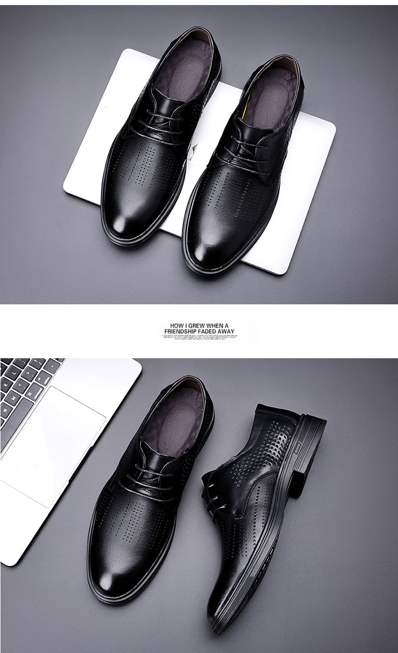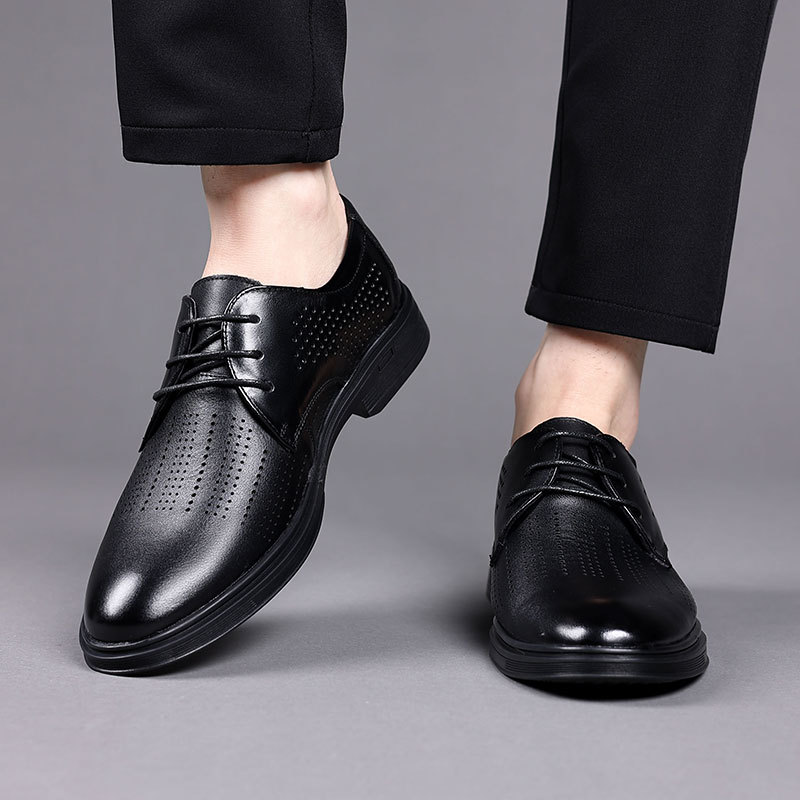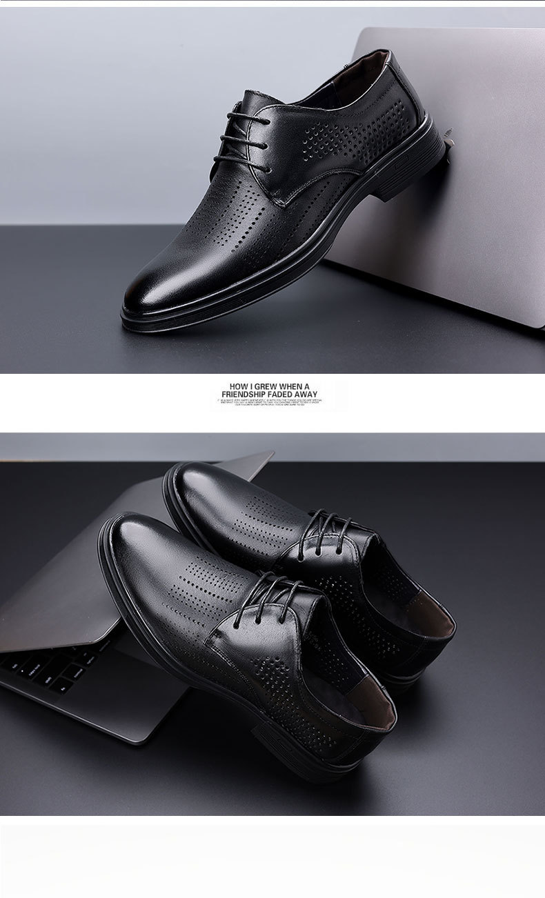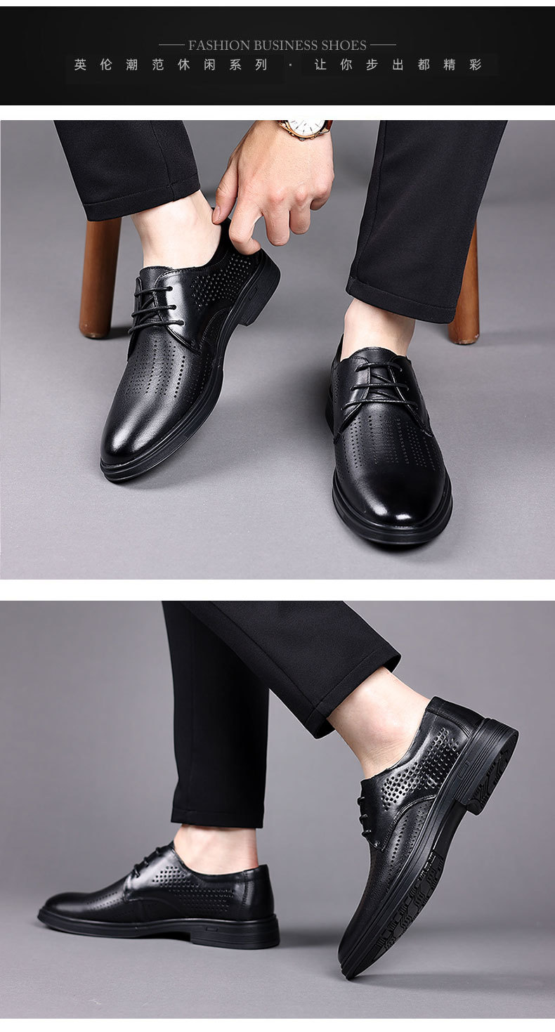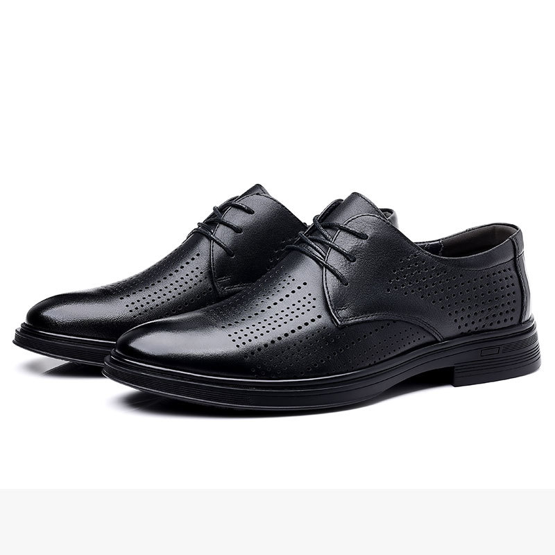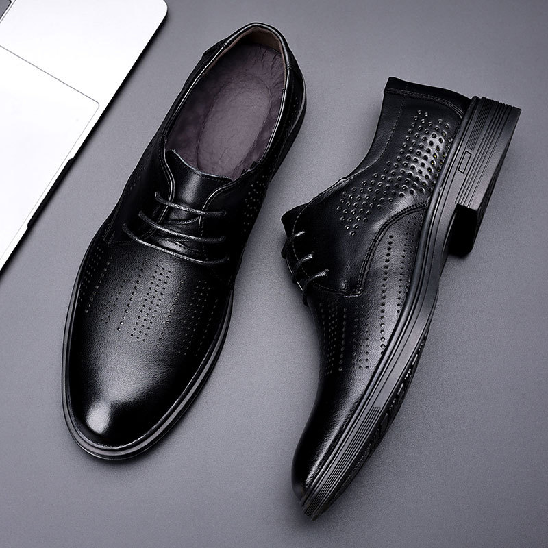Giày da nam thiết kế lịch sự, phù hợp cho công sở và những dịp thường ngày. Sản phẩm được làm từ chất liệu da thật, phần đế mềm và dày mang lại cảm giác thoải mái khi di chuyển. Kiểu dáng màu đen trang nhã, kết hợp các chi tiết thông hơi tinh tế giúp đôi chân luôn khô ráo, đặc biệt phù hợp dùng trong mùa hè. Bạn có thể dễ dàng phối cùng veston khi đi làm hoặc các bộ trang phục khác trong sự kiện quan trọng. | Tên sản phẩm: Giày Da Nam Chất Liệu Da Bò Đế Mềm Thoáng Khí Đế Cao Hàng Mùa Hè Dùng Trong Lễ Cưới Ngày Cưới - Giày Dép Nam | Mã sản phẩm: B3458 - Giá: 980.000đ | Mã nhà sản xuất: WEDS-G03Hình ảnh sản phẩm