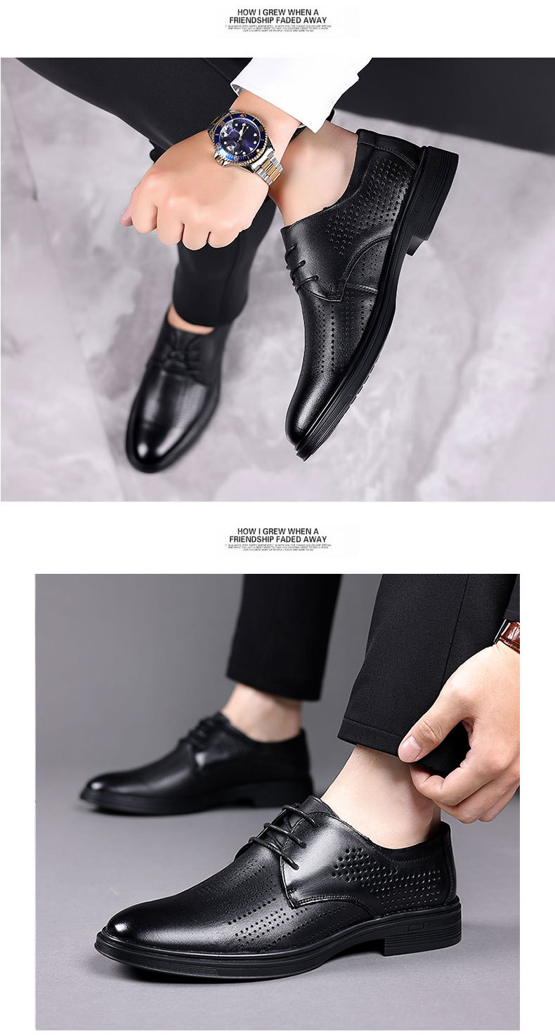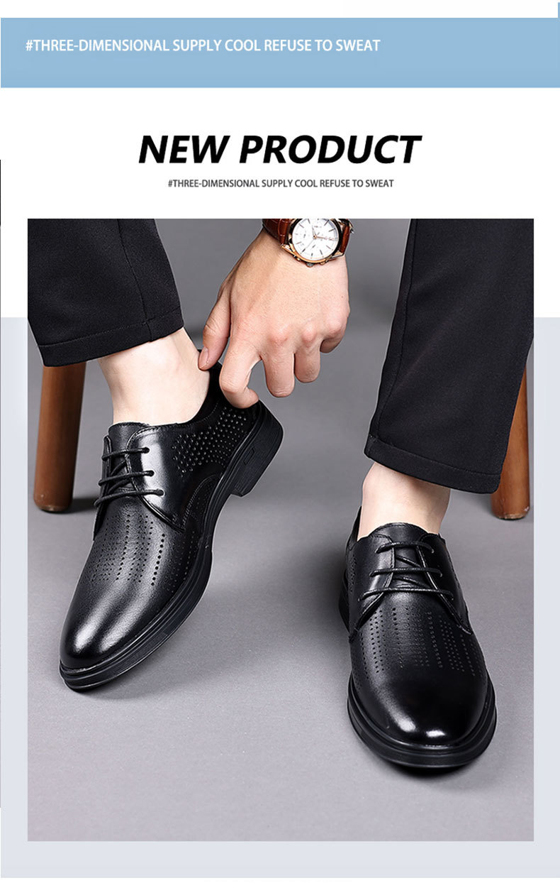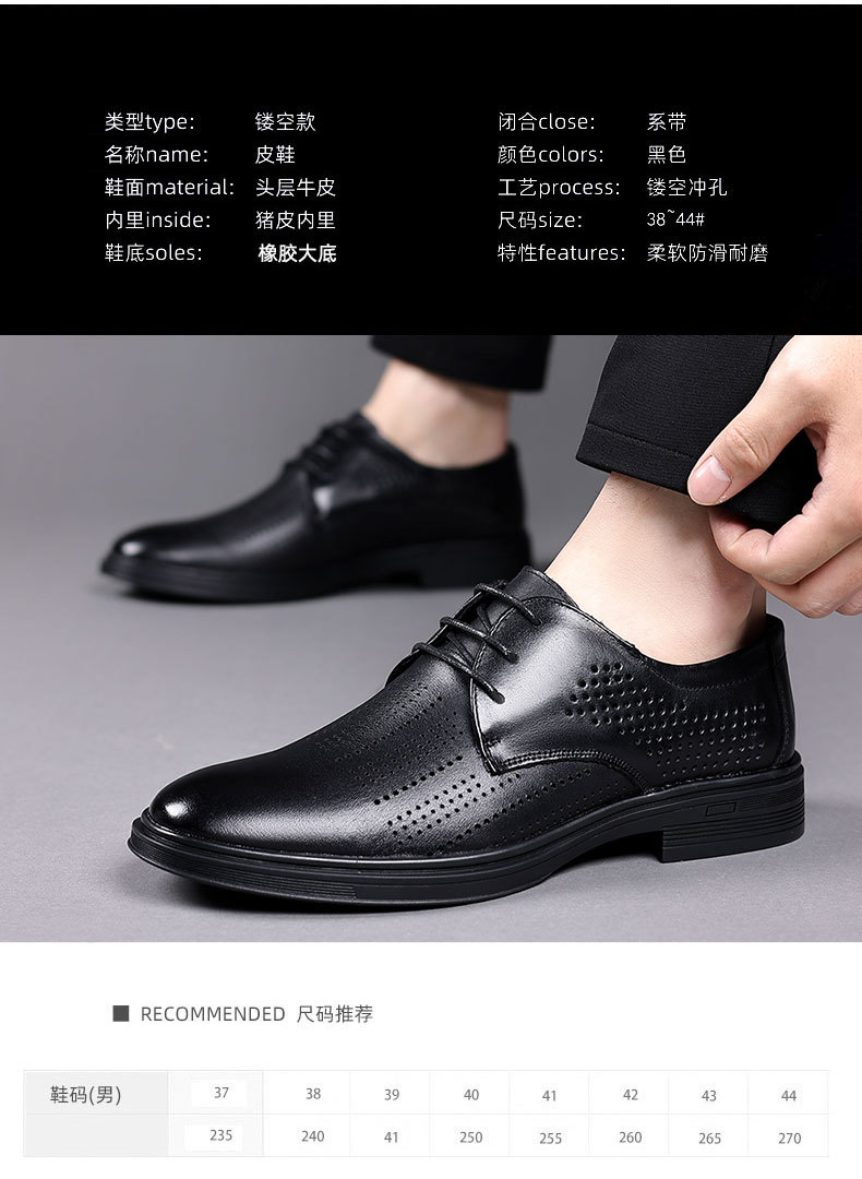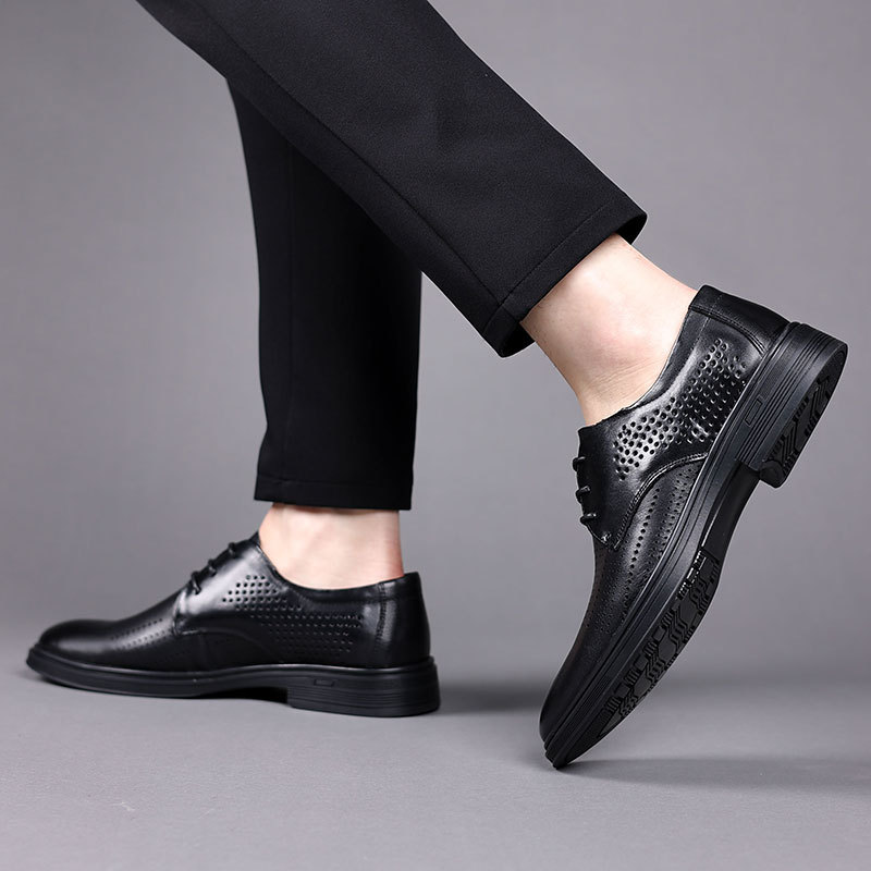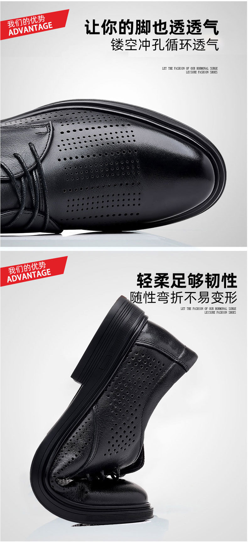Giày da nam thiết kế lịch sự, phù hợp cho công sở và những dịp thường ngày. Sản phẩm được làm từ chất liệu da thật, phần đế mềm và dày mang lại cảm giác thoải mái khi di chuyển. Kiểu dáng màu đen trang nhã, kết hợp các chi tiết thông hơi tinh tế giúp đôi chân luôn khô ráo, đặc biệt phù hợp dùng trong mùa hè. Bạn có thể dễ dàng phối cùng veston khi đi làm hoặc các bộ trang phục khác trong sự kiện quan trọng. | Tên sản phẩm: Giày Da Nam Chất Liệu Da Bò Đế Mềm Thoáng Khí Đế Cao Hàng Mùa Hè Dùng Trong Lễ Cưới Ngày Cưới - Giày Dép Nam | Mã sản phẩm: B3458 - Giá: 980.000đ | Mã nhà sản xuất: WEDS-G03Hình ảnh sản phẩm