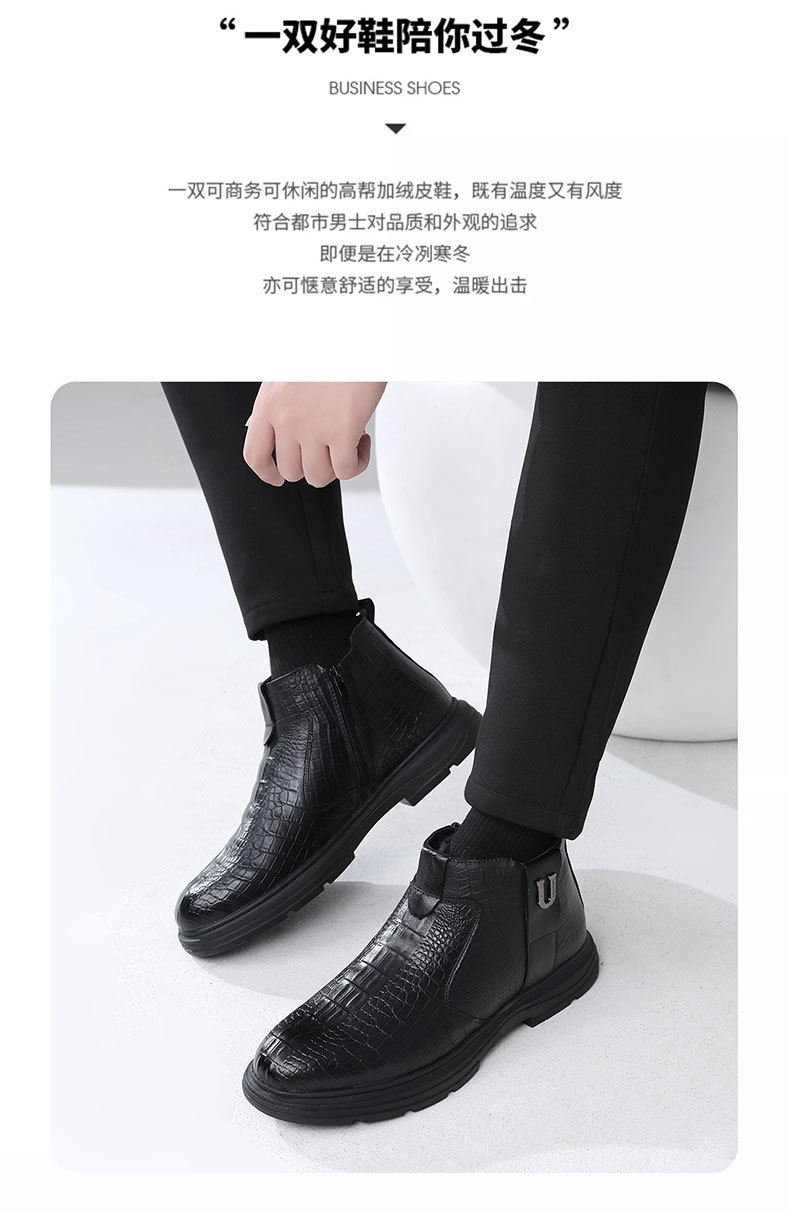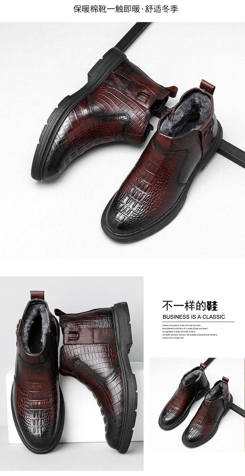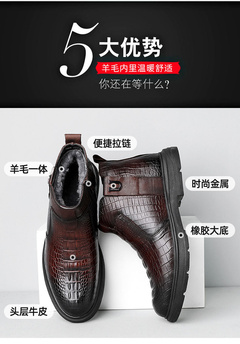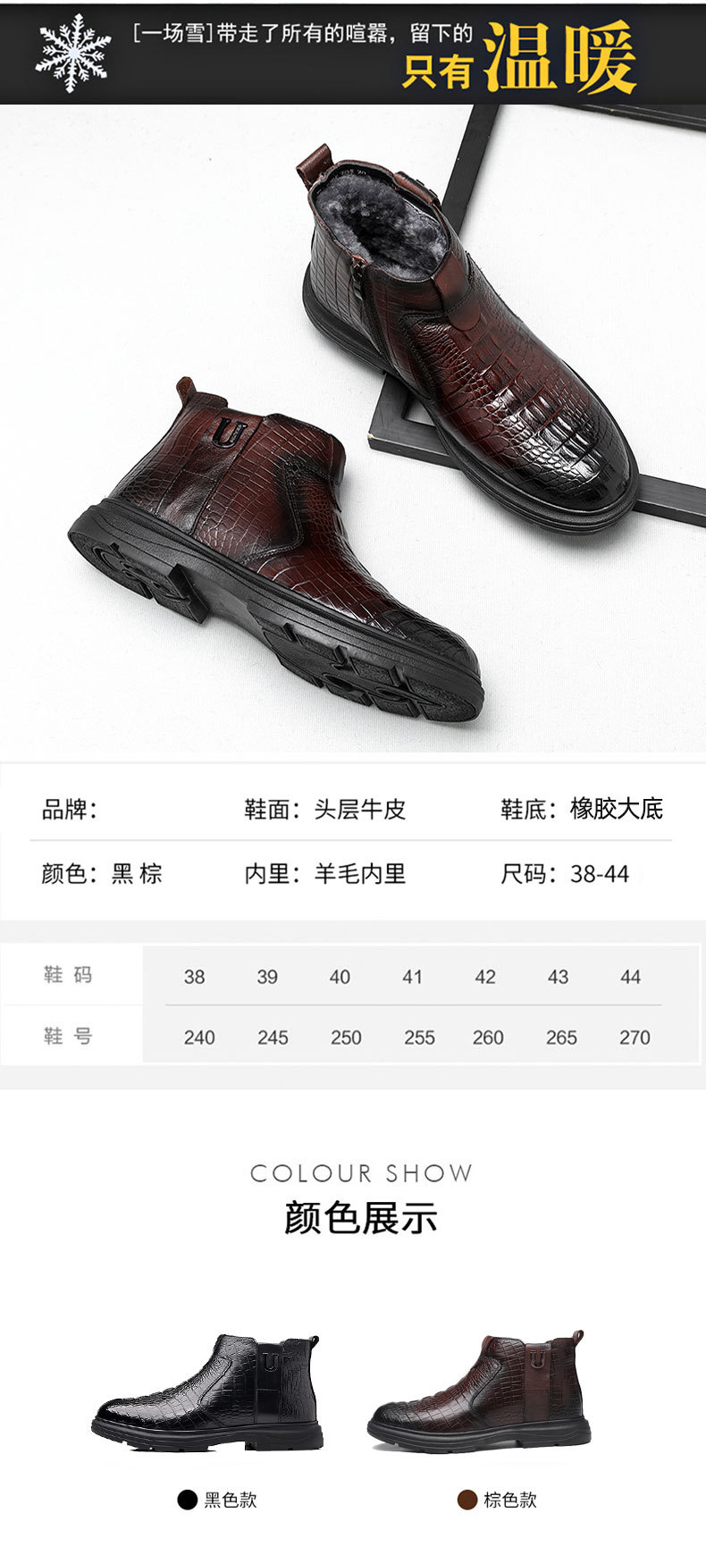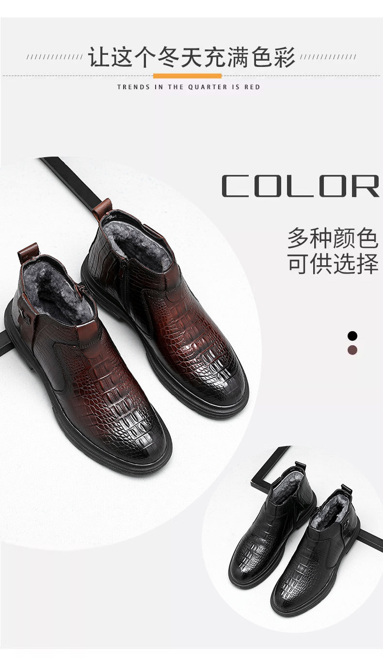 Đôi giày nam thiết kế cổ cao, phù hợp cho các hoạt động ngoài trời vào mùa lạnh. Sản phẩm được làm từ chất liệu da thật kết hợp với lớp lót bên trong bằng lông cừu ấm áp, giúp giữ nhiệt tốt. Kiểu dáng mang phong cách thoải mái, dễ dàng phối hợp với nhiều loại trang phục. Bạn chỉ cần xỏ chân vào và cột dây giày là có thể sử dụng ngay, rất tiện lợi cho những ngày đông giá rét. | Tên sản phẩm: Giày Thể Thao Tăng Chiều Cao Nam Chất Liệu Vải Bông Hàng Mùa Xuân Thu Đông - Giày Dép Nam | Mã sản phẩm: B3459 - Giá: 1.000.000đ | Mã nhà sản xuất: WEDS-G03Hình ảnh sản phẩm