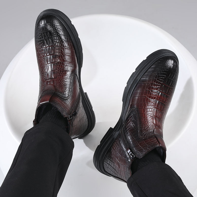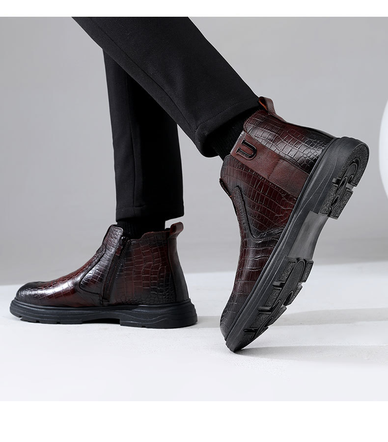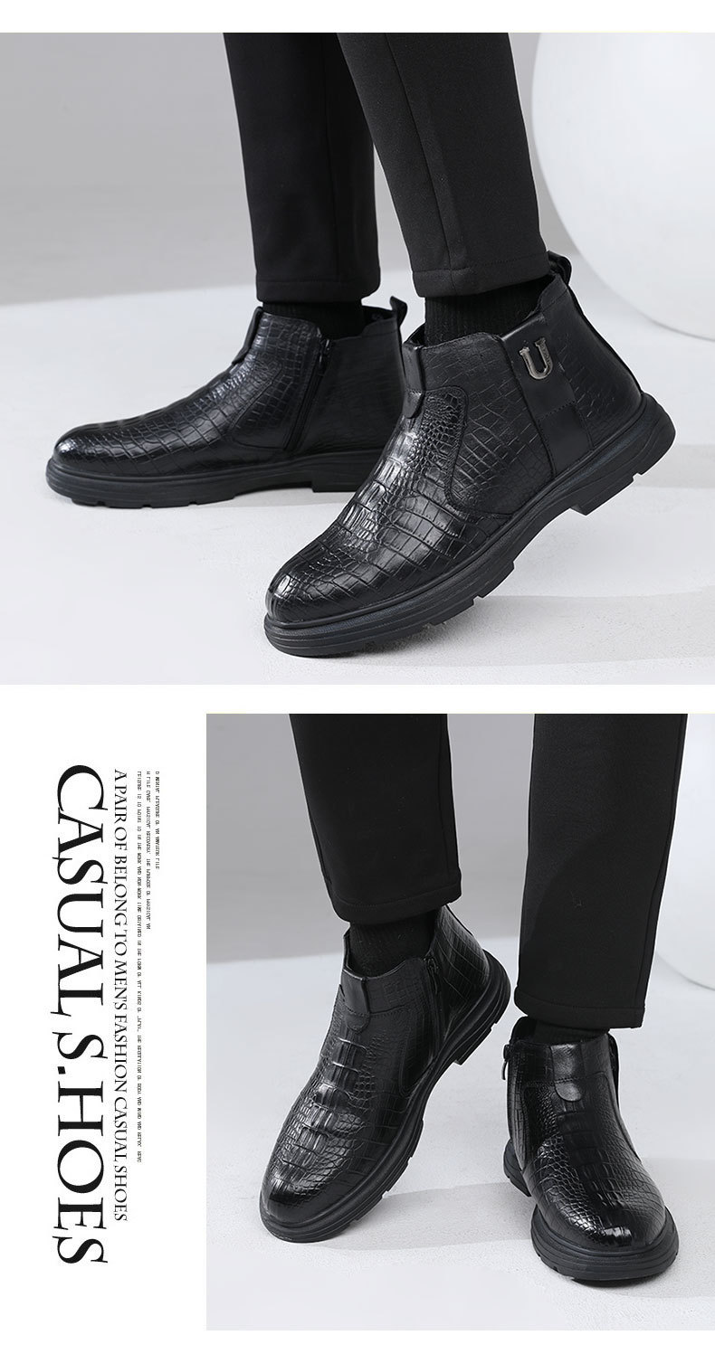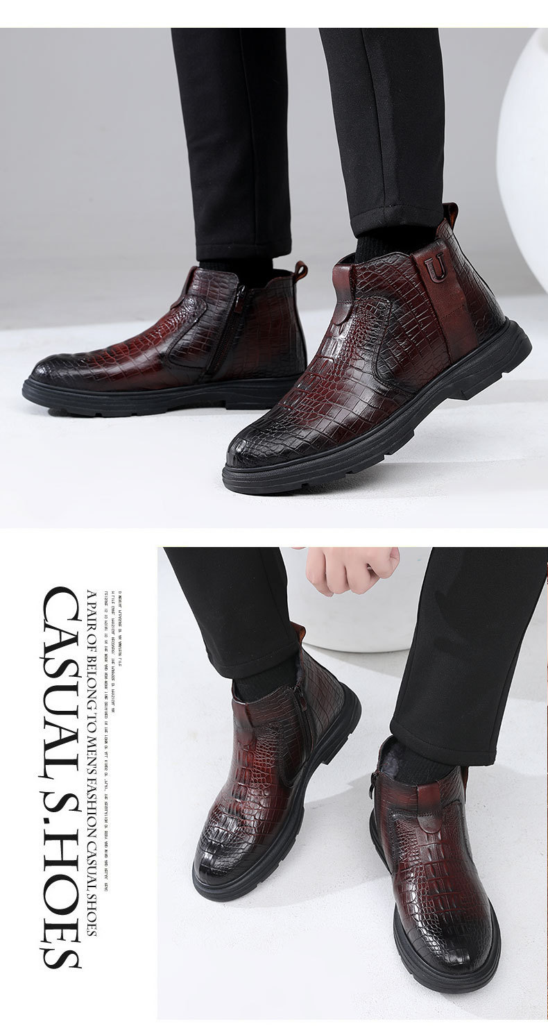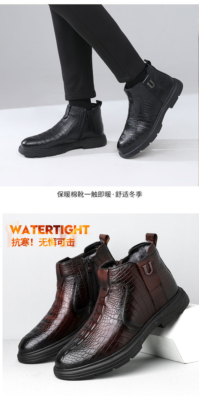 Đôi giày nam thiết kế cổ cao, phù hợp cho các hoạt động ngoài trời vào mùa lạnh. Sản phẩm được làm từ chất liệu da thật kết hợp với lớp lót bên trong bằng lông cừu ấm áp, giúp giữ nhiệt tốt. Kiểu dáng mang phong cách thoải mái, dễ dàng phối hợp với nhiều loại trang phục. Bạn chỉ cần xỏ chân vào và cột dây giày là có thể sử dụng ngay, rất tiện lợi cho những ngày đông giá rét. | Tên sản phẩm: Giày Thể Thao Tăng Chiều Cao Nam Chất Liệu Vải Bông Hàng Mùa Xuân Thu Đông - Giày Dép Nam | Mã sản phẩm: B3459 - Giá: 1.000.000đ | Mã nhà sản xuất: WEDS-G03Hình ảnh sản phẩm