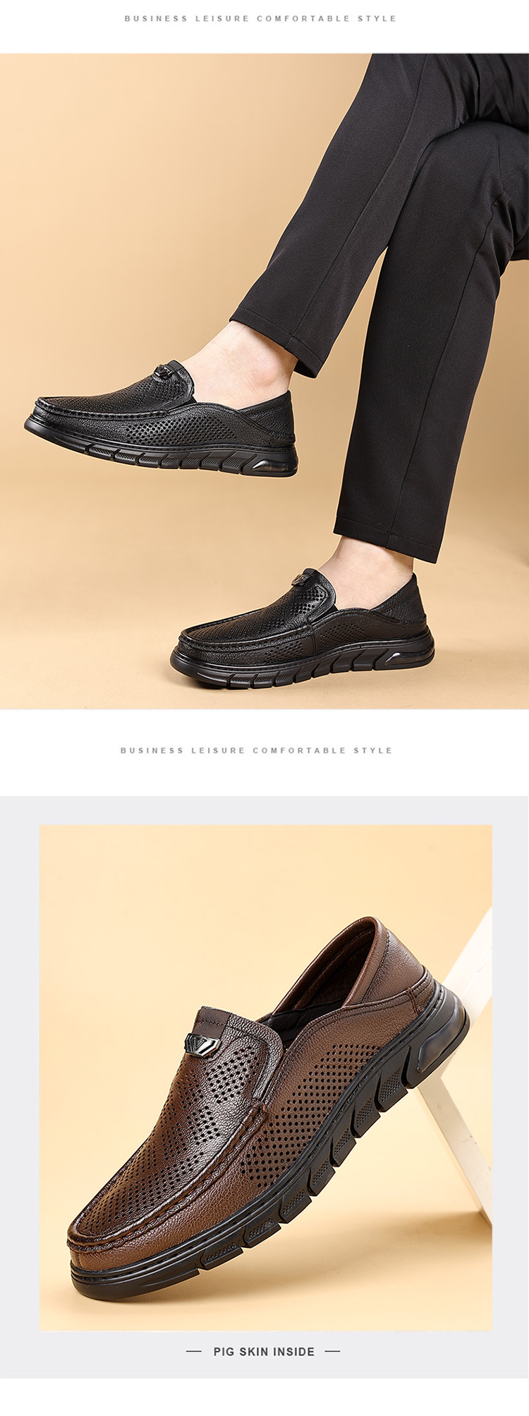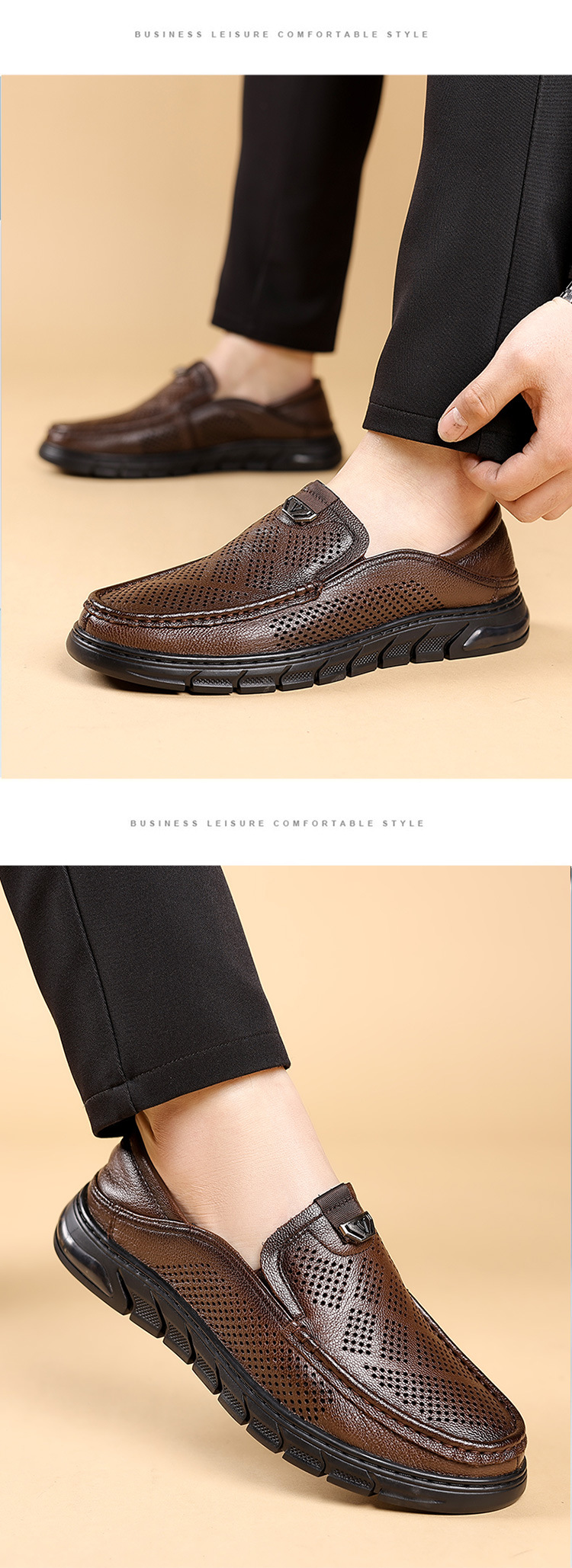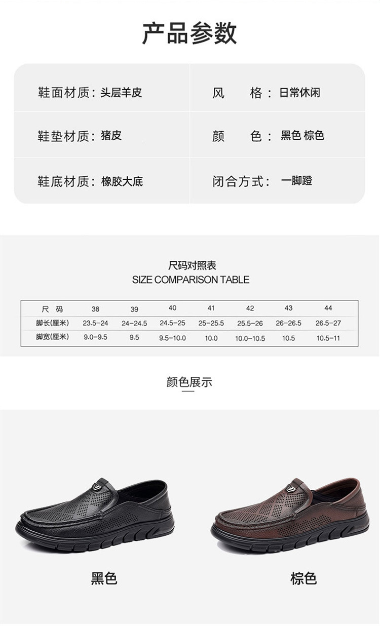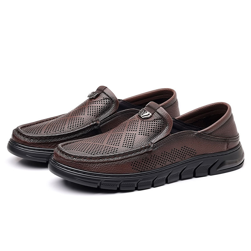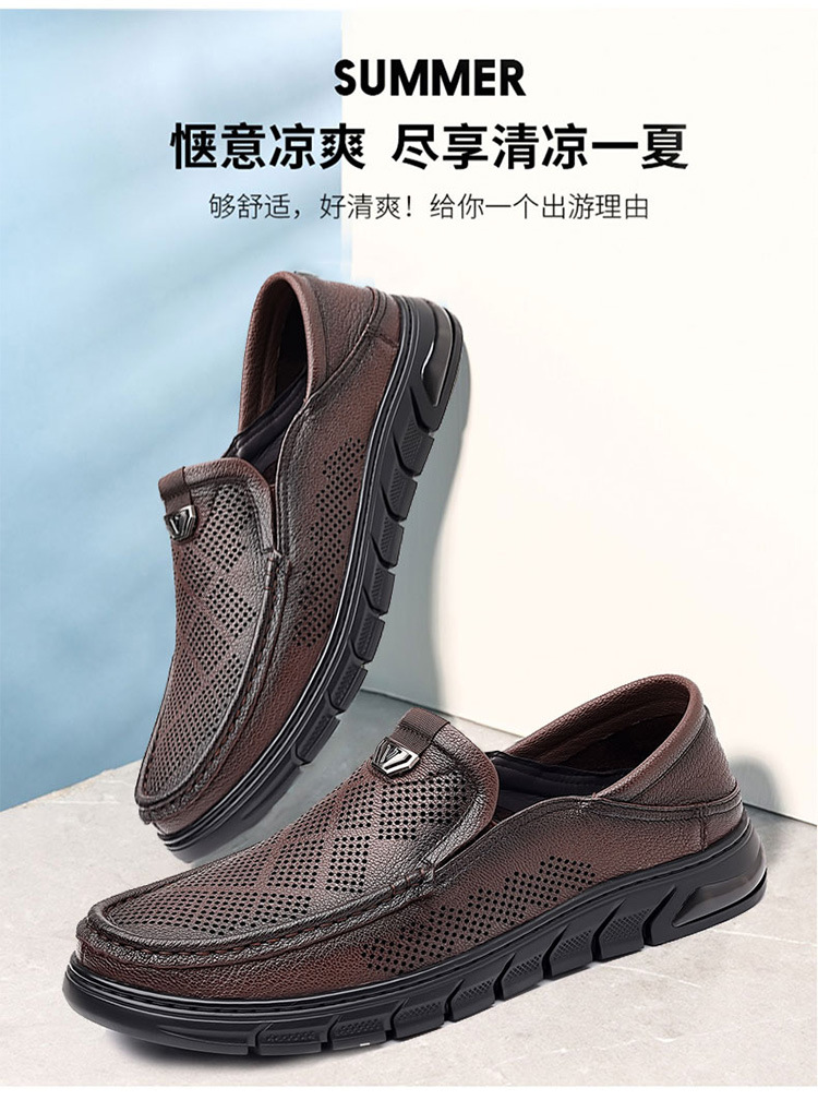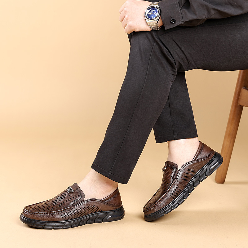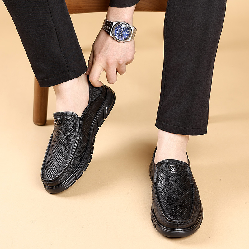 Giày nam thiết kế mới dành cho mùa hè, với kiểu dáng xỏ chân tiện lợi, phù hợp cho nhiều độ tuổi. Sản phẩm được làm từ chất liệu da thật, bên trong có các lỗ thông hơi giúp đôi chân luôn khô ráo và mát mẻ. Đế giày mềm mại, ôm sát bàn chân, tạo cảm giác dễ chịu khi di chuyển cả ngày. Kiểu dáng lưới thoáng khí mang lại phong cách nhẹ nhàng, năng động. Bạn chỉ cần xỏ chân vào là có thể sử dụng ngay, rất phù hợp cho các hoạt động hằng ngày hoặc lúc thư giãn. | Tên sản phẩm: Giày Da Nam Chất Liệu Da Bò Đế Mềm Thoáng Khí Hàng Mùa Hè - Giày Dép Nam | Mã sản phẩm: B3469 - Giá: 1.020.000đ | Mã nhà sản xuất: WEDS-G03Hình ảnh sản phẩm