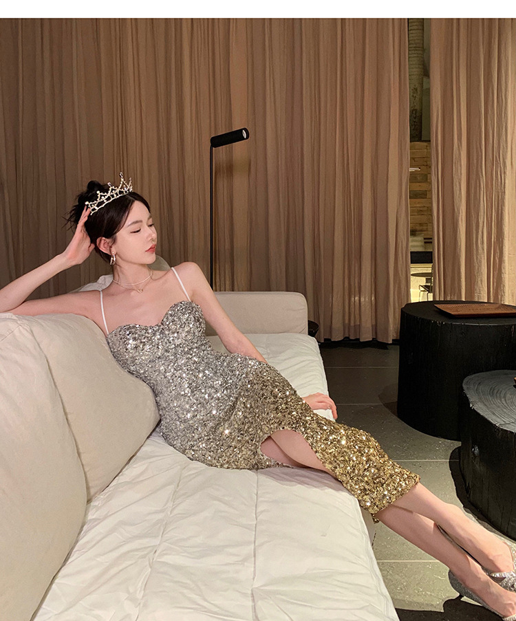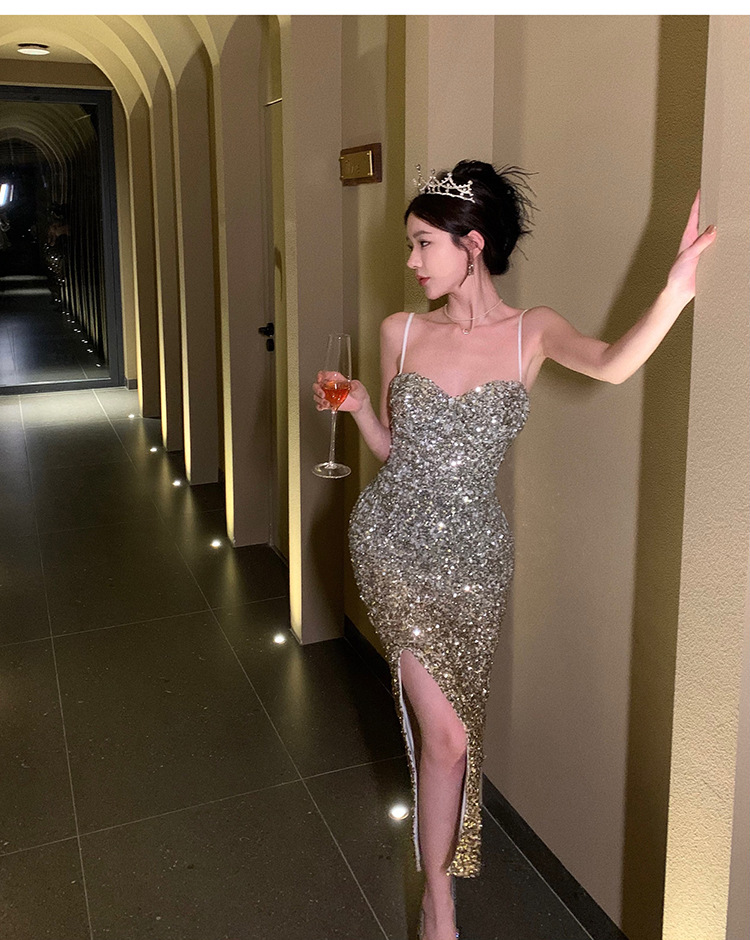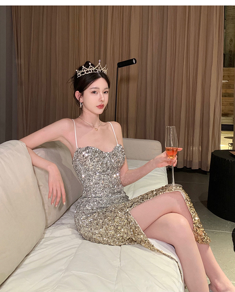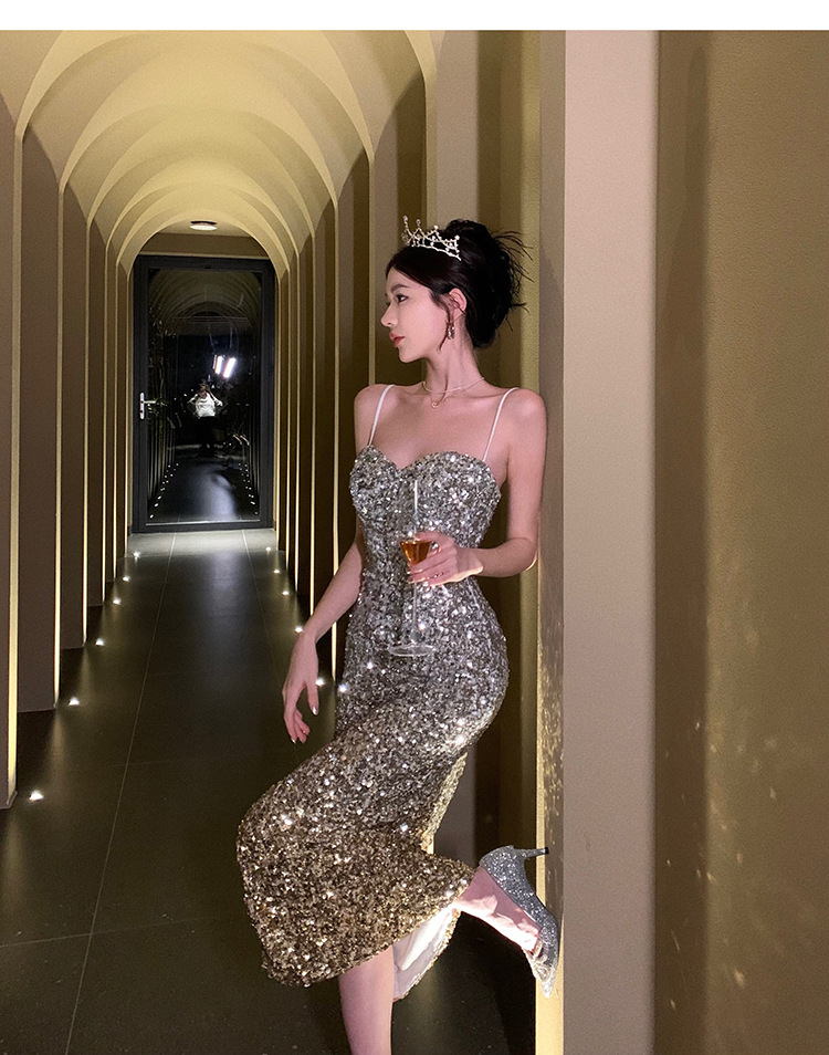Đầm dự tiệc dáng ôm với thiết kế hai dây mảnh m, tôn lên những đường nét cơ thể. Điểm nhấn đặc biệt là hiệu ứng chuyển màu tinh tế trên chất liệu, kết hợp cùng đường cắt xẻ nhẹ ở phần tà tạo sự uyển chuyển. Các chi tiết phụ kiện lấp lánh được gia công tỉ mỉ khắp thân đầm. Sản phẩm phù hợp cho những buổi tiệc tối, dễ dàng phối cùng phụ kiện và giày cao gót để hoàn thiện phong cách. | Tên sản phẩm: Áo Hai Dây Nữ Dáng Ôm Hai Dây Hở Vai - Thời Trang Nữ | Mã sản phẩm: B3522 - Giá: 1.000.000đ | Mã nhà sản xuất: ZHOUT-G03Hình ảnh sản phẩm