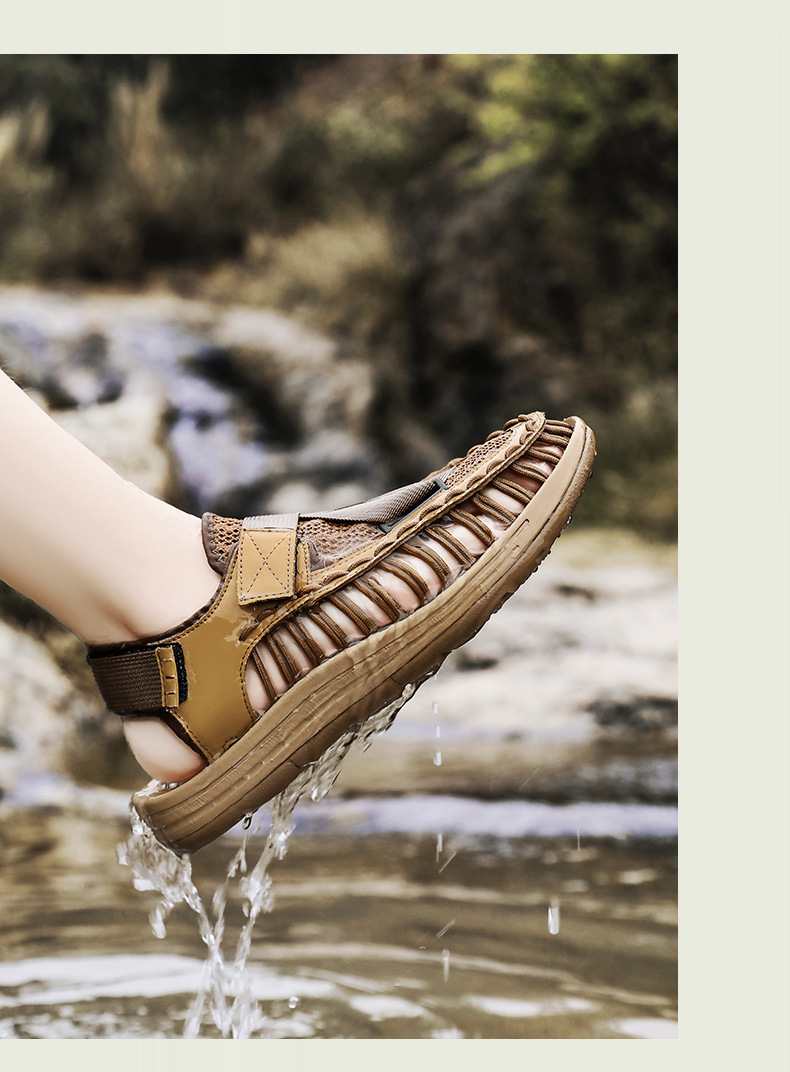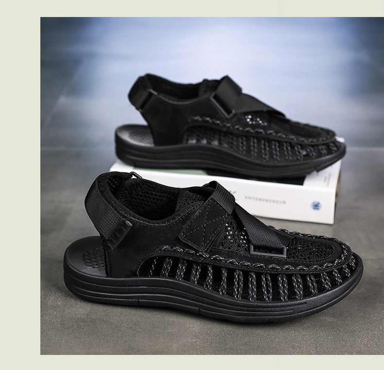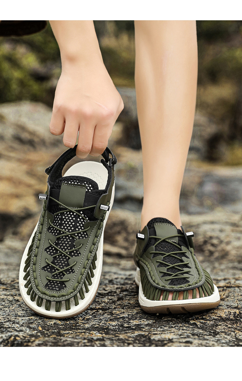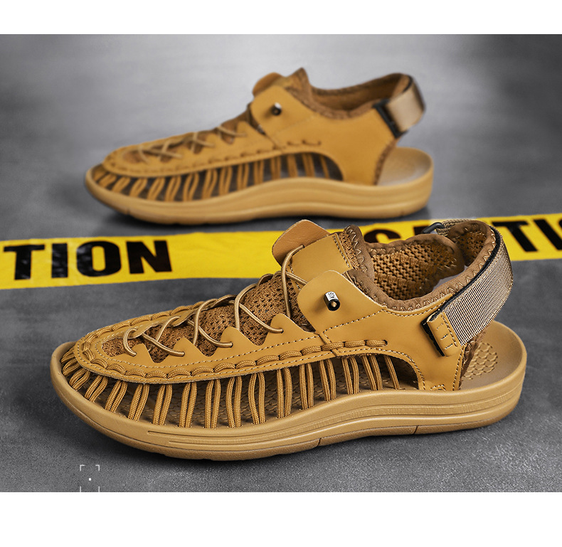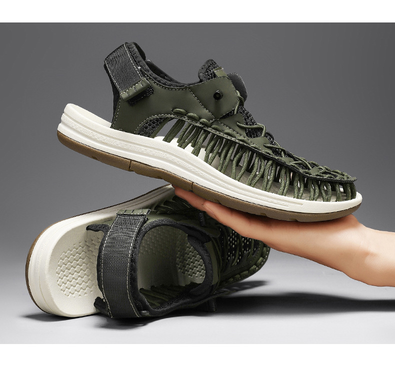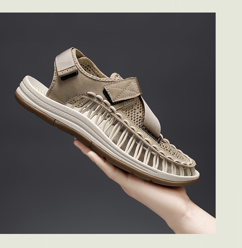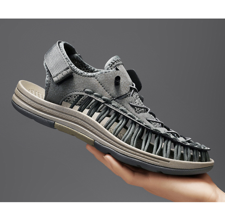 Giày dành cho nam, kiểu dáng thể thao năng động với phần mũi hở thoáng mát. Sản phẩm được đan từ các sợi vải mềm mại, tạo cảm giác nhẹ nhàng và dễ chịu khi mang. Đế bằng phẳng ôm sát chân, phù hợp cho nhiều hoạt động như dạo biển, đi chơi hay thư giãn hằng ngày. Chỉ cần xỏ chân vào, điều chỉnh qu đeo cho vừa vặn là bạn đã có thể sử dụng ngay. | Tên sản phẩm: Giày Dép Sandal Nam Big Size Ngoại Cỡ Thoáng Khí Hàng Mùa Hè - Giày Dép Nam | Mã sản phẩm: B3528 - Giá: 690.000đ | Mã nhà sản xuất: TADRA-G02Hình ảnh sản phẩm