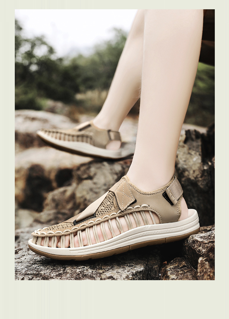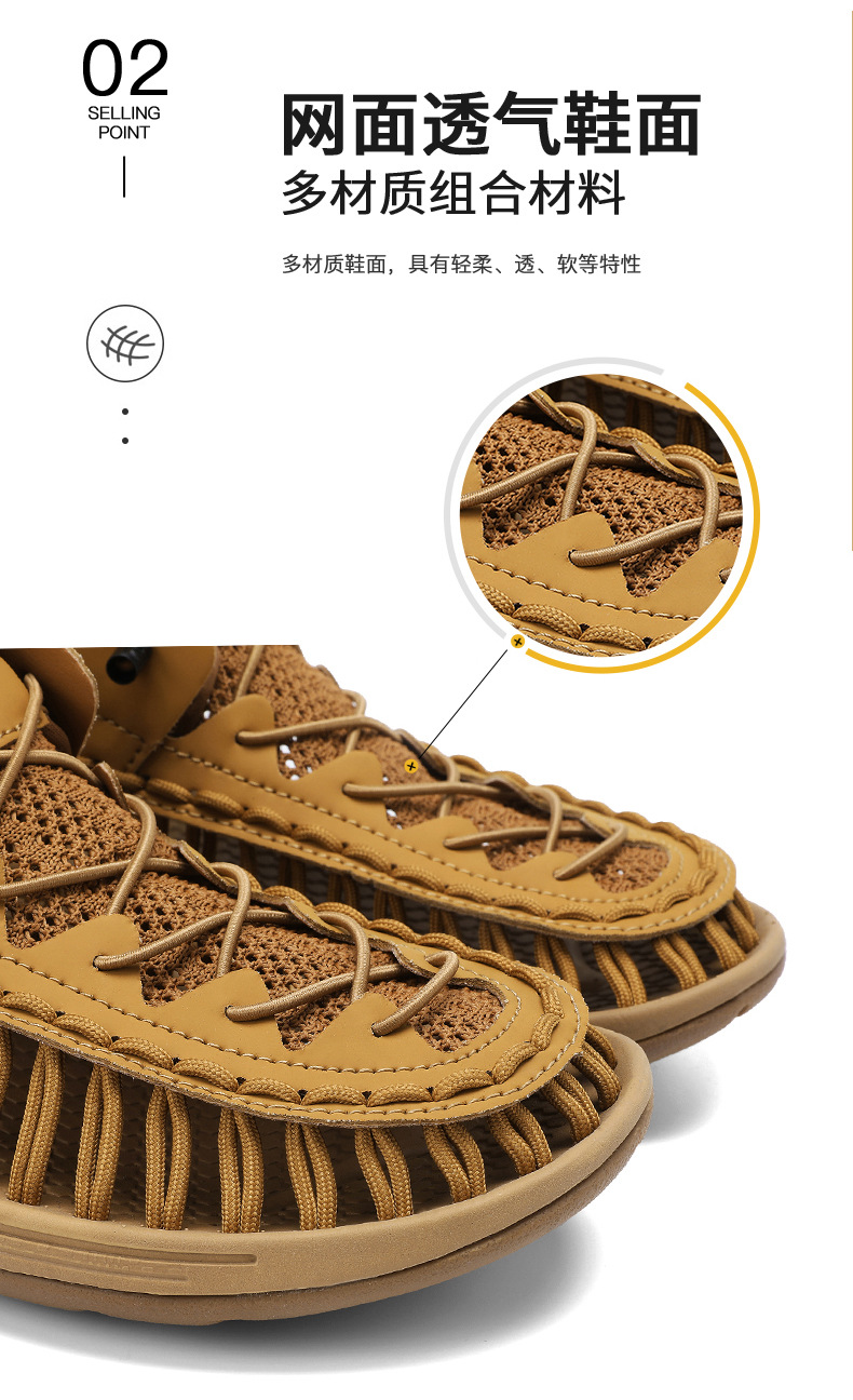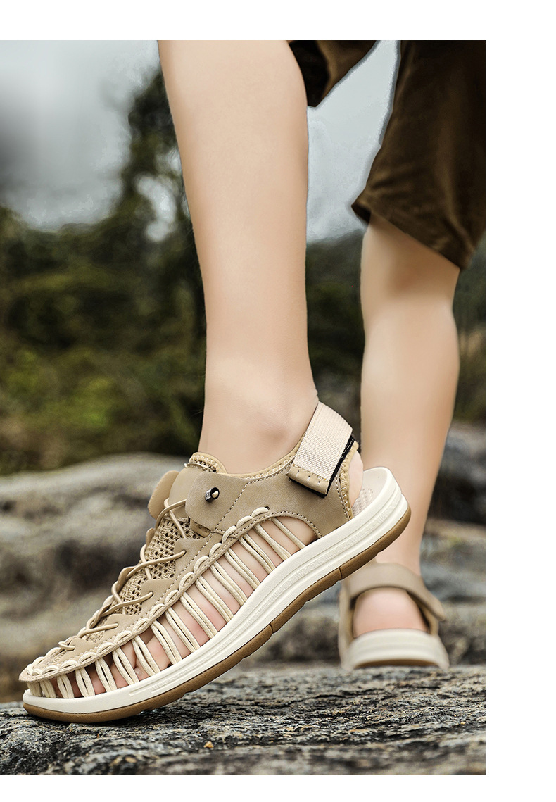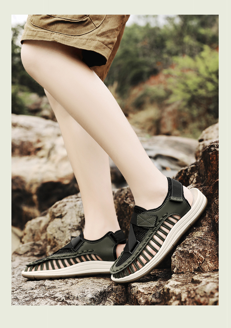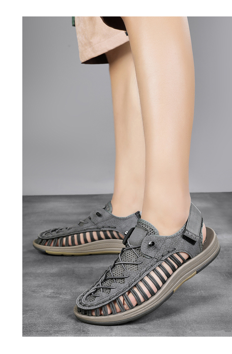 Giày dành cho nam, kiểu dáng thể thao năng động với phần mũi hở thoáng mát. Sản phẩm được đan từ các sợi vải mềm mại, tạo cảm giác nhẹ nhàng và dễ chịu khi mang. Đế bằng phẳng ôm sát chân, phù hợp cho nhiều hoạt động như dạo biển, đi chơi hay thư giãn hằng ngày. Chỉ cần xỏ chân vào, điều chỉnh qu đeo cho vừa vặn là bạn đã có thể sử dụng ngay. | Tên sản phẩm: Giày Dép Sandal Nam Big Size Ngoại Cỡ Thoáng Khí Hàng Mùa Hè - Giày Dép Nam | Mã sản phẩm: B3528 - Giá: 690.000đ | Mã nhà sản xuất: TADRA-G02Hình ảnh sản phẩm