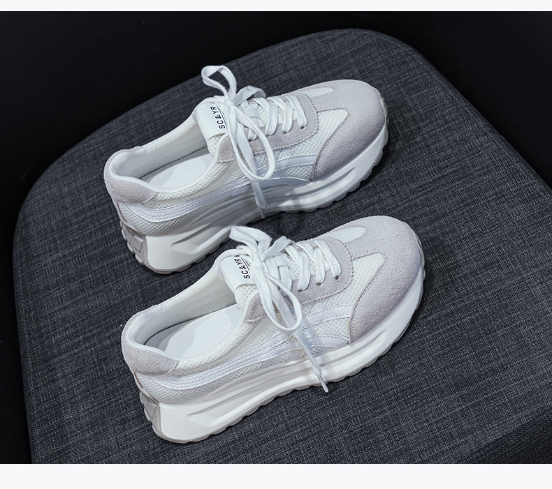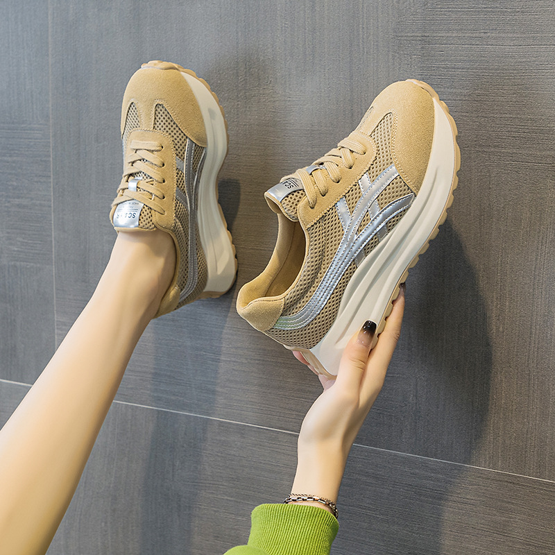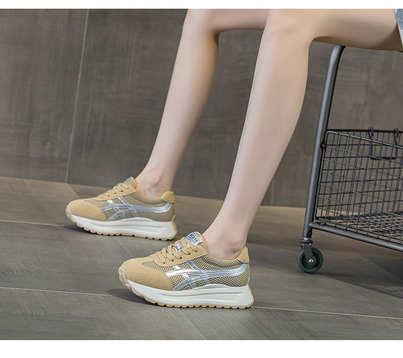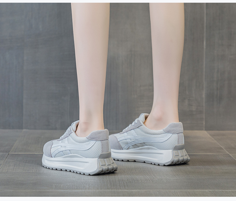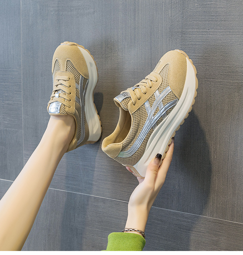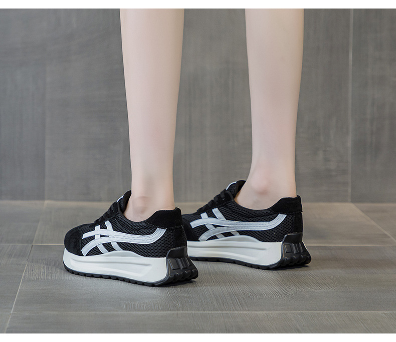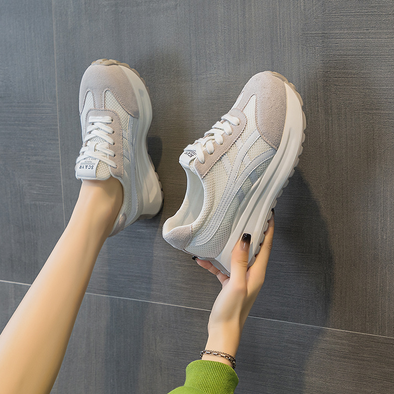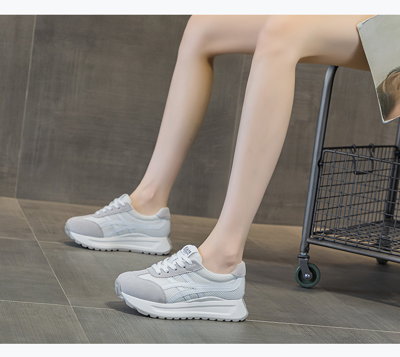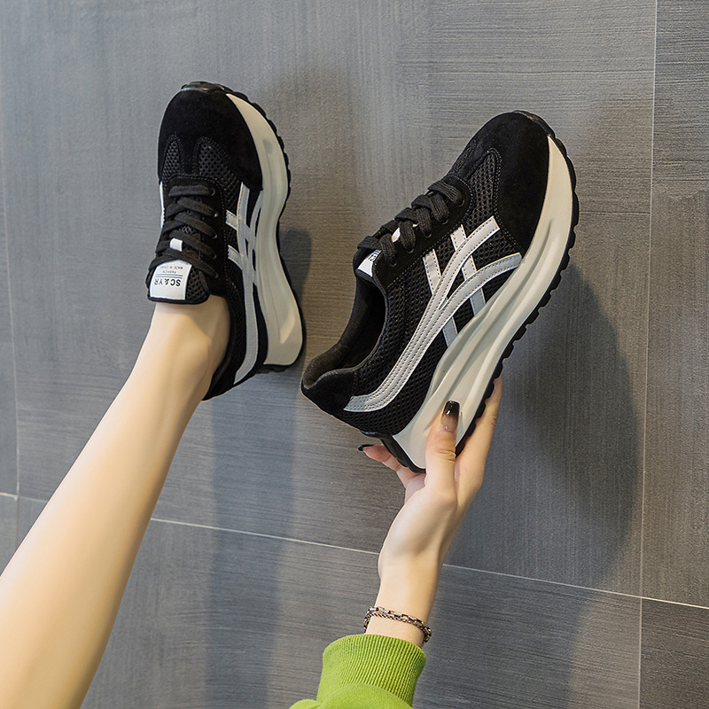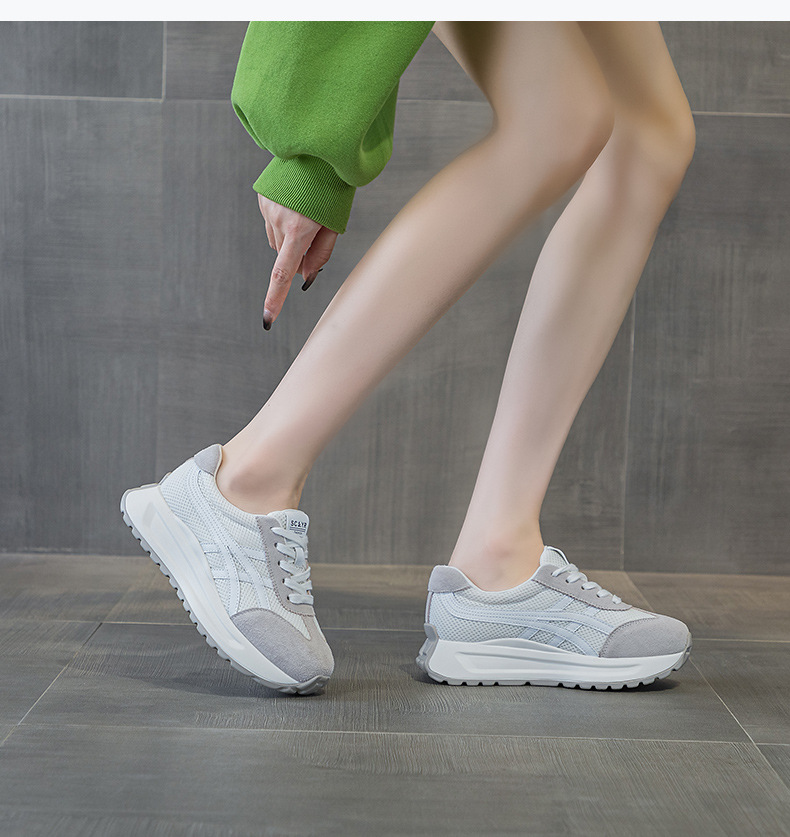 Giày thể thao nữ thiết kế dáng mũi hở kết hợp mặt lưới, tạo cảm giác thoáng mát cho đôi chân khi vận động. Đế giày dày năm phân giúp tăng chiều cao một cách tự nhiên. Kiểu dáng cổ điển phù hợp cho các hoạt động thường ngày như đi dạo, tập chạy nhẹ nhàng. Sản phẩm dễ dàng phối cùng nhiều loại trang phục khác nhau. Chỉ cần xỏ chân vào và điều chỉnh dây giày cho vừa vặn là có thể sử dụng ngay. | Tên sản phẩm: Giày Thể Thao Nữ Đế Cao Hàng Mùa Xuân Thu Đông Phong Cách Hàn Quốc - Giày Dép Nữ | Mã sản phẩm: B3591 - Giá: 980.000đ | Mã nhà sản xuất: WEDG-G03Hình ảnh sản phẩm