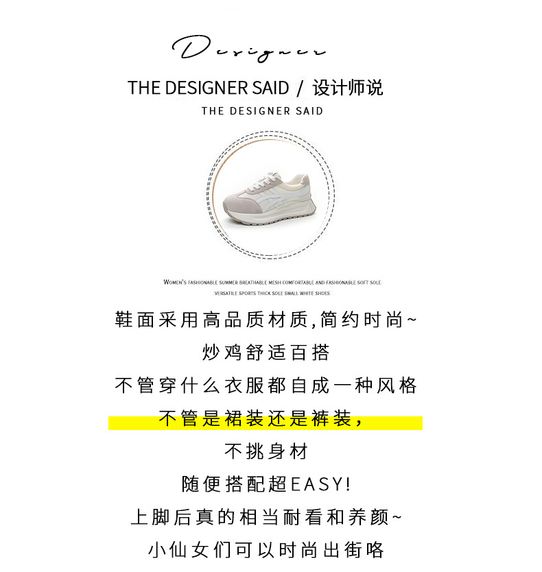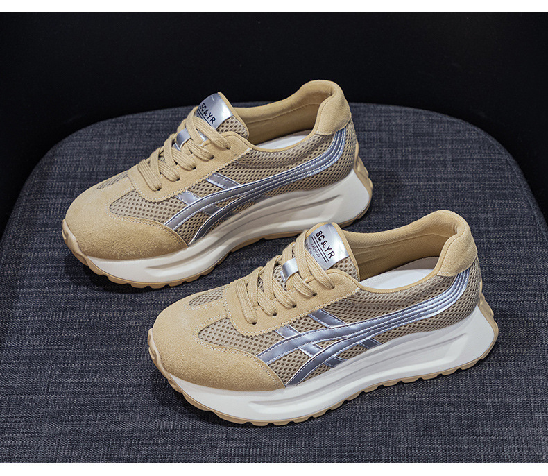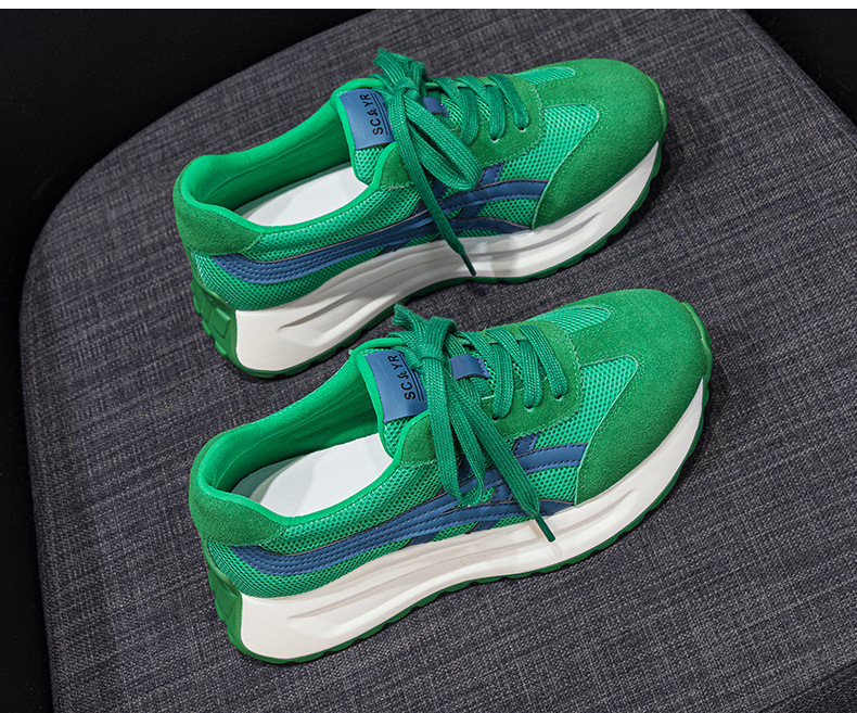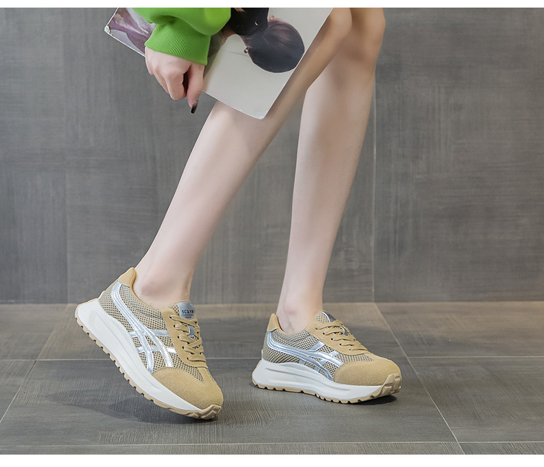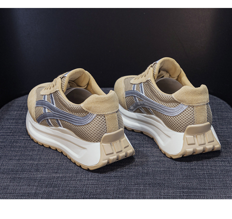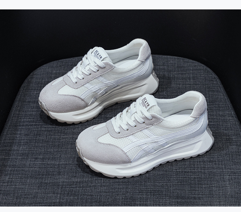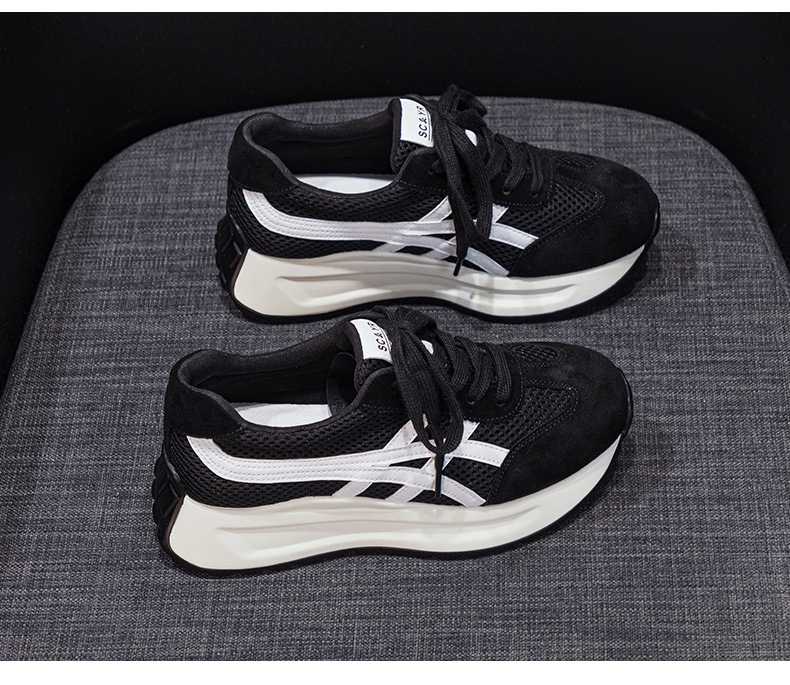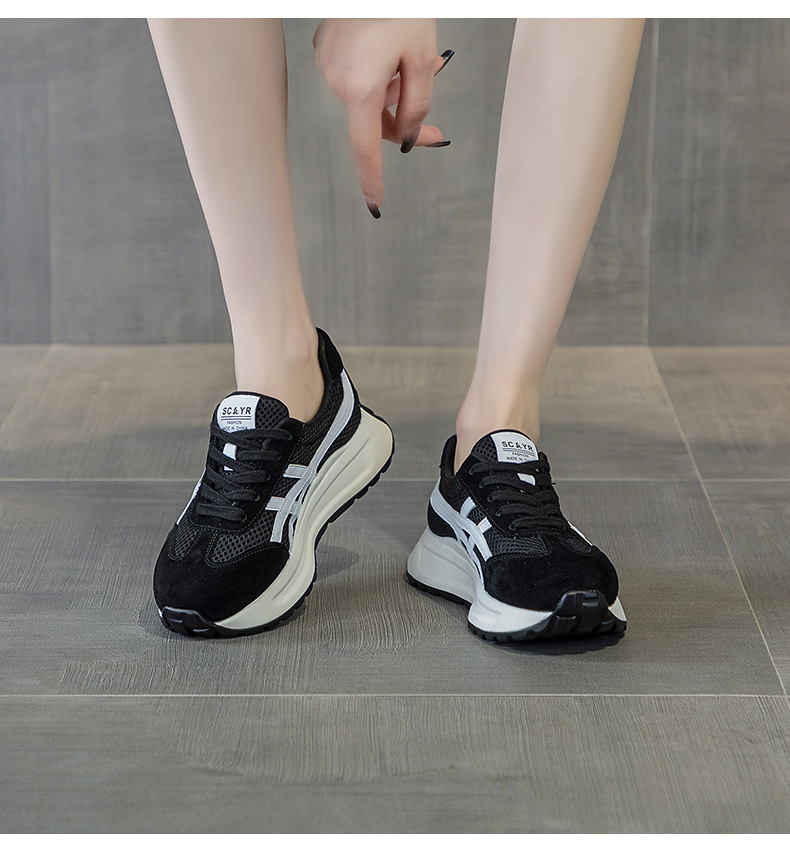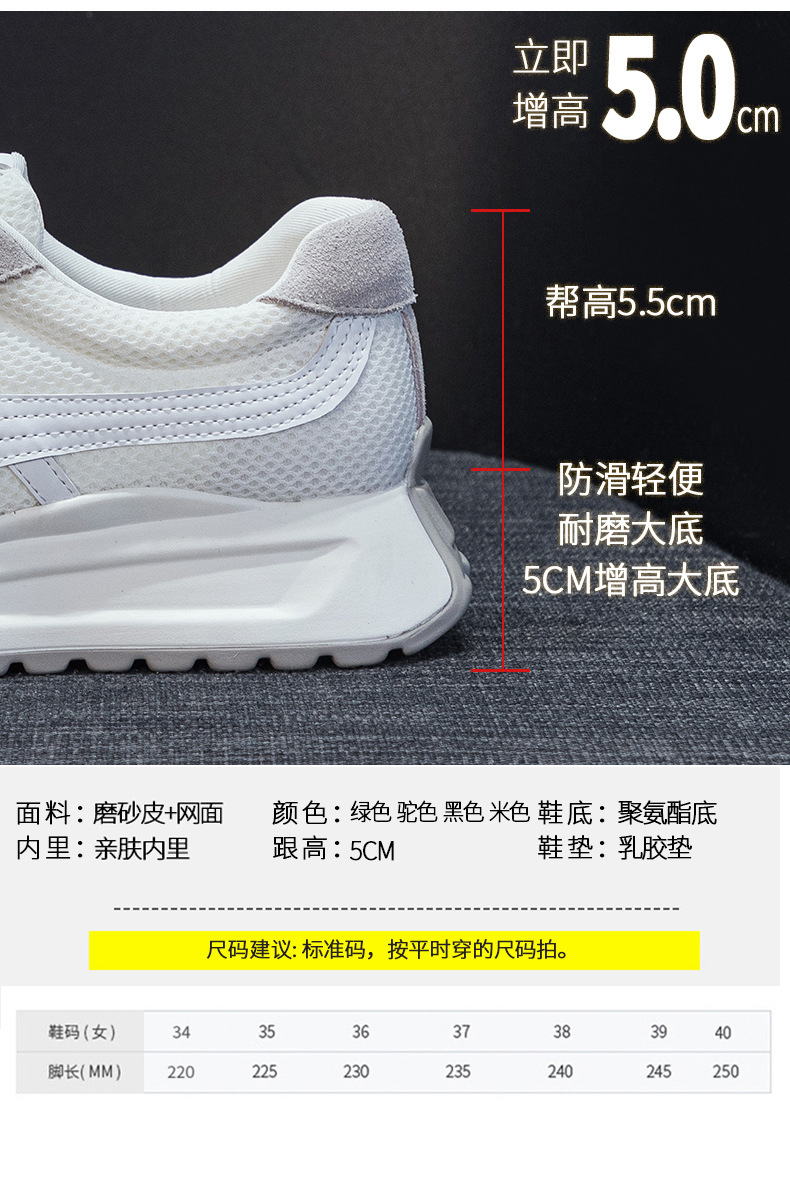 Giày thể thao nữ thiết kế dáng mũi hở kết hợp mặt lưới, tạo cảm giác thoáng mát cho đôi chân khi vận động. Đế giày dày năm phân giúp tăng chiều cao một cách tự nhiên. Kiểu dáng cổ điển phù hợp cho các hoạt động thường ngày như đi dạo, tập chạy nhẹ nhàng. Sản phẩm dễ dàng phối cùng nhiều loại trang phục khác nhau. Chỉ cần xỏ chân vào và điều chỉnh dây giày cho vừa vặn là có thể sử dụng ngay. | Tên sản phẩm: Giày Thể Thao Nữ Đế Cao Hàng Mùa Xuân Thu Đông Phong Cách Hàn Quốc - Giày Dép Nữ | Mã sản phẩm: B3591 - Giá: 980.000đ | Mã nhà sản xuất: WEDG-G03Hình ảnh sản phẩm
